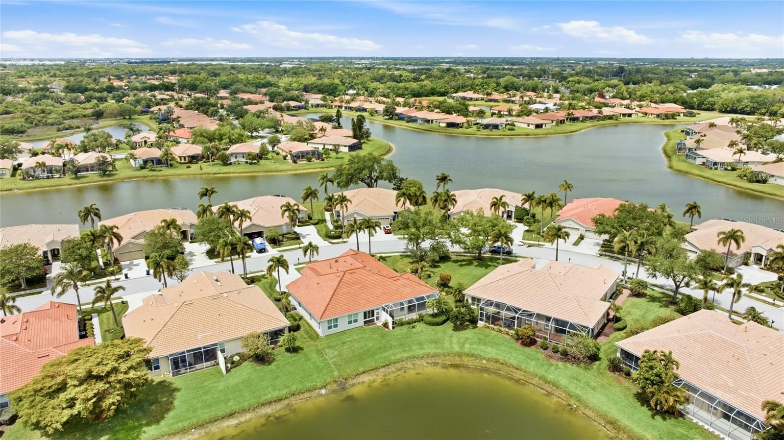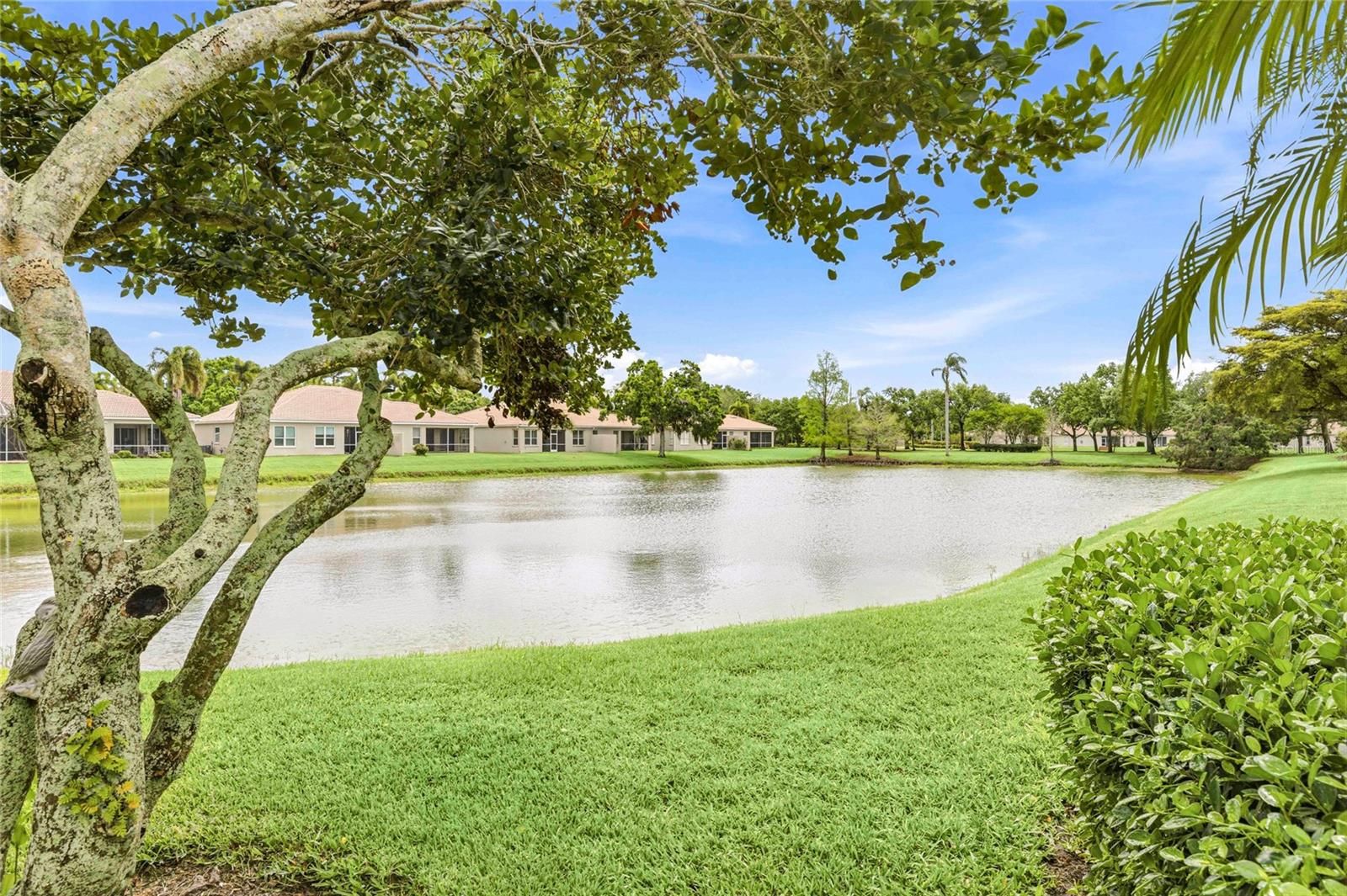 NEW ROOF (2026) on this END-UNIT villa with LAKE VIEWS view featuring 2 bedrooms plus a DEN, 2 bathrooms, and a 2-car garage, with 1,554 sq ft of living space. The kitchen offers granite countertops, and the home opens to a large EXTENDED SCREENED LANAI with beautiful LAKE VIEWS. Natural gas supplied to the home. TURNKEY FURNISHED, or seller will remove if buyer so chooses. MAINTENANCE-FREE (with a few exceptions). Lakeridge Falls is a 55+ gated community (24-hour guard) with a community HEATED pool, spa/hot tub, updated clubhouse with full fitness center, card room, bocce courts, a beachy area, lots of walking trails, and a full calendar of planned activities. Great location: Close to UTC Mall, restaurants, grocery stores, SRQ airport, downtown Sarasota, and the most beautiful beaches around.