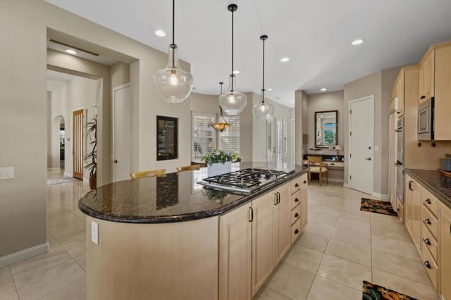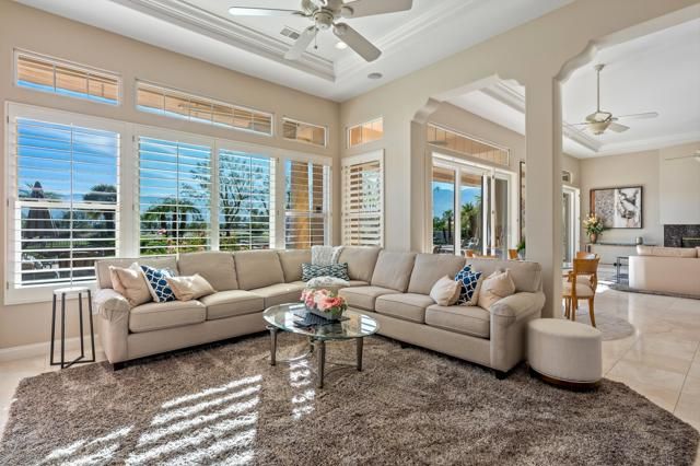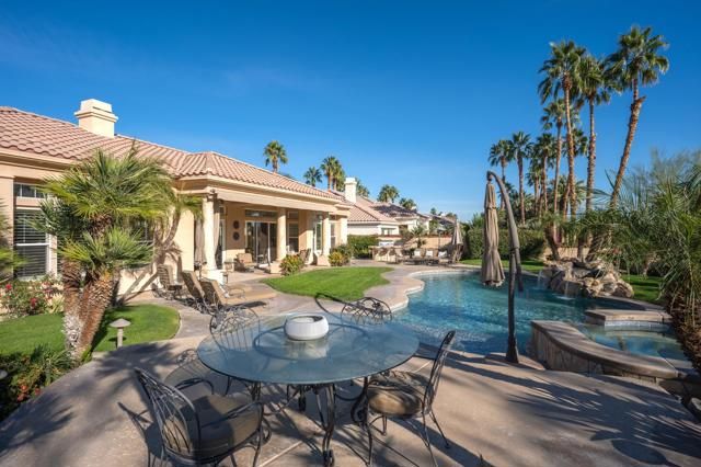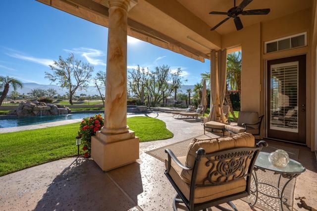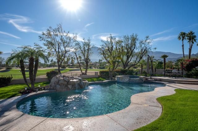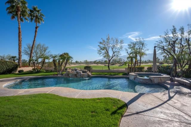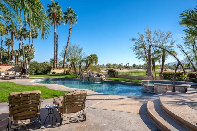 Mountain views on the Norman course at PGA West. Perched on an elevated almost 1/3-acre lot, this exquisite residence offers breathtaking southern mountain and fairway views from nearly every angle. With over 3,740 square feet of thoughtfully designed living space, this 3+ bedroom, 3.5-bathroom home blends luxury, comfort, and functionality. Step inside to find elegant travertine floors, an expansive family room, a dedicated media room, and a separate formal dining area--ideal for entertaining or an easy convert to the fourth bedroom or home office. The chef's kitchen is a true centerpiece, featuring high-end appliances, ample counter space, and seamless flow into the living areas. A stylish wet bar adds a perfect touch for hosting guests. The spacious primary suite is a private retreat, offering stunning views, a spa-inspired en-suite bath, and generous closet space. Two additional bedrooms each feature their own bathrooms, providing comfort and privacy for family or guests. Additional highlights include 2 new A/C systems, a versatile floor plan, built in BBQ, new retractable awning, and refined finishes throughout. Outside, enjoy the southern view of serene desert landscapes from your private patios and garden. This is luxury desert living at its finest--schedule your private showing today.