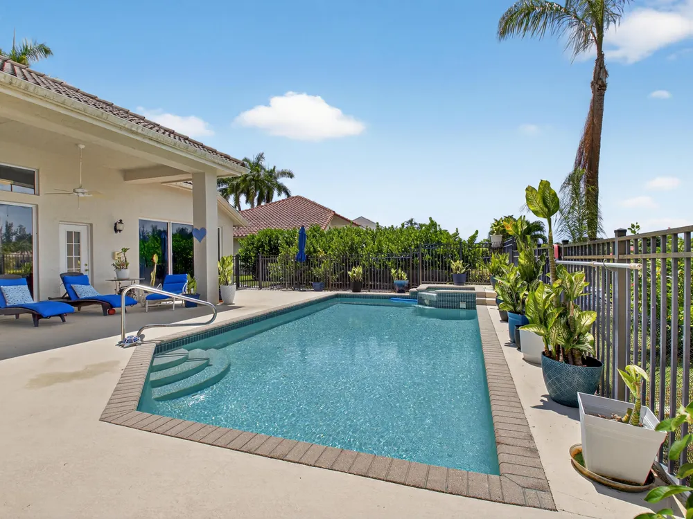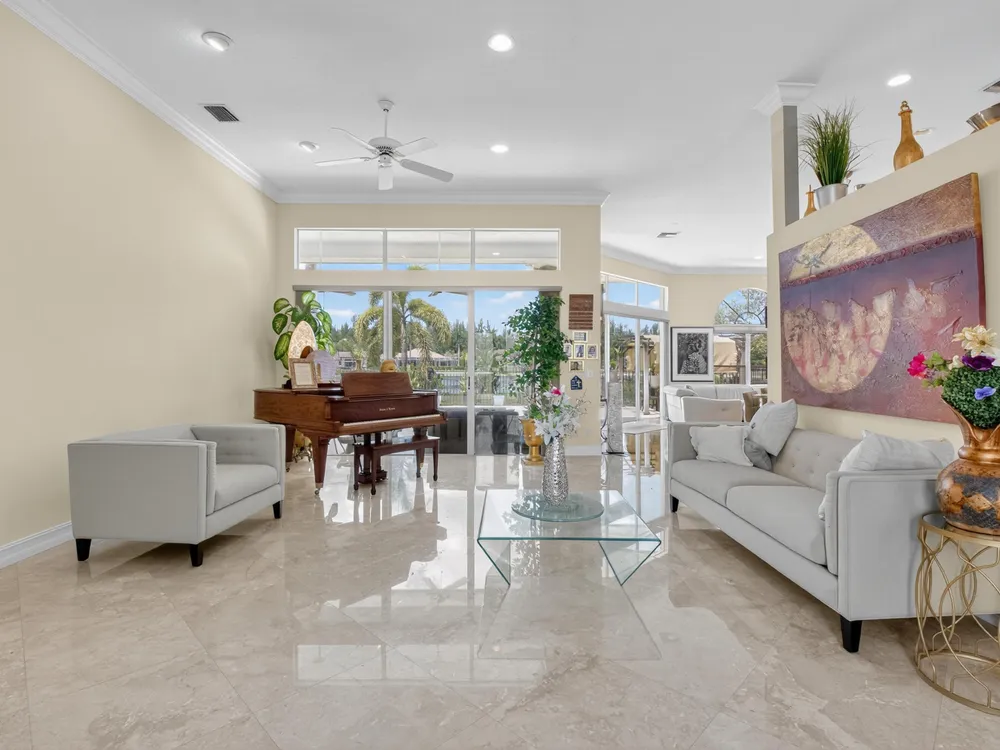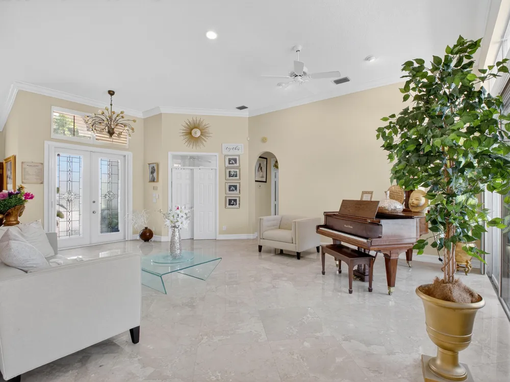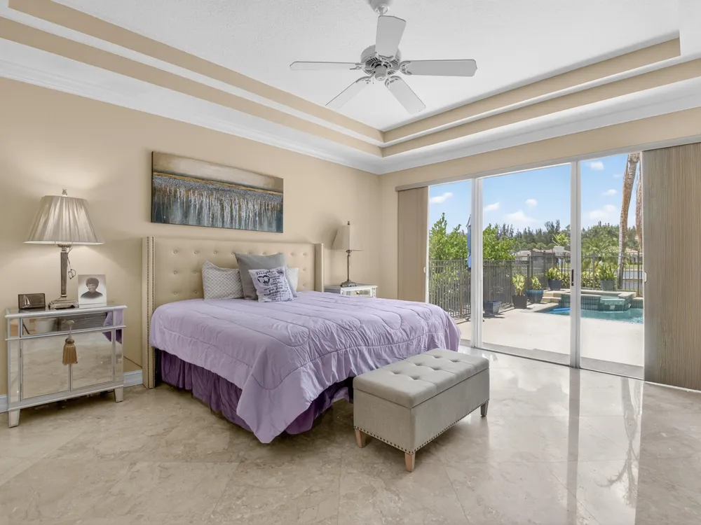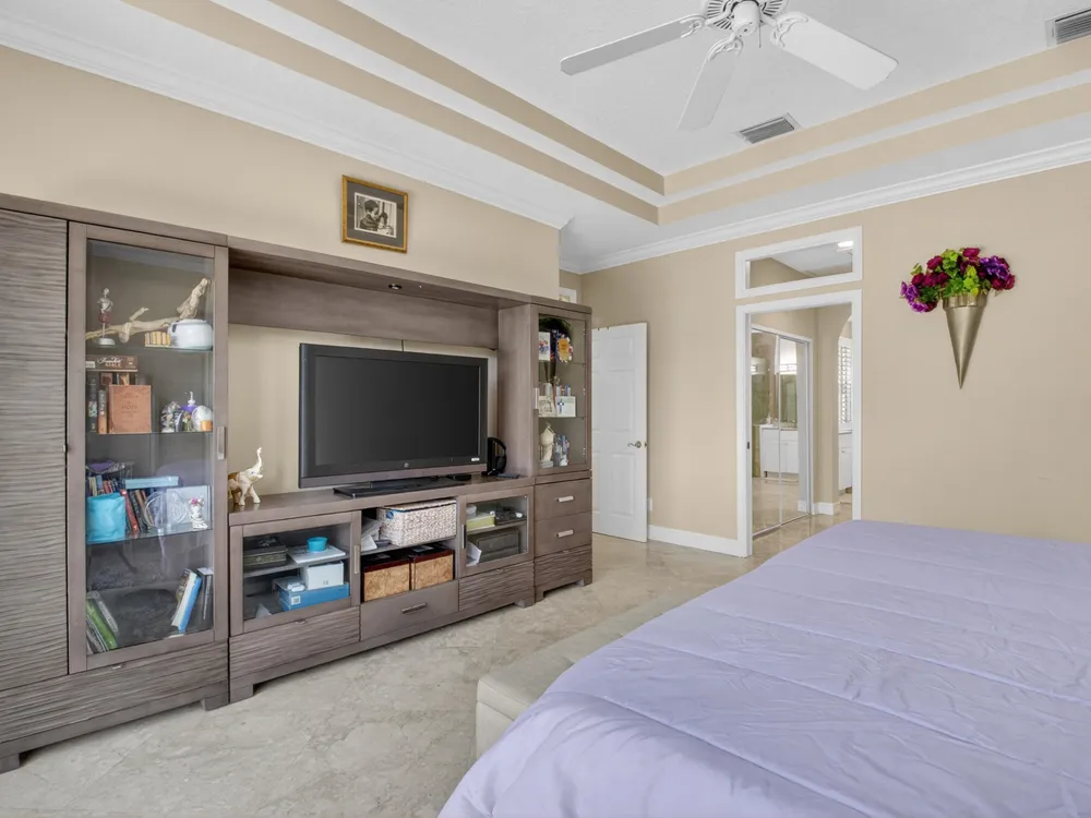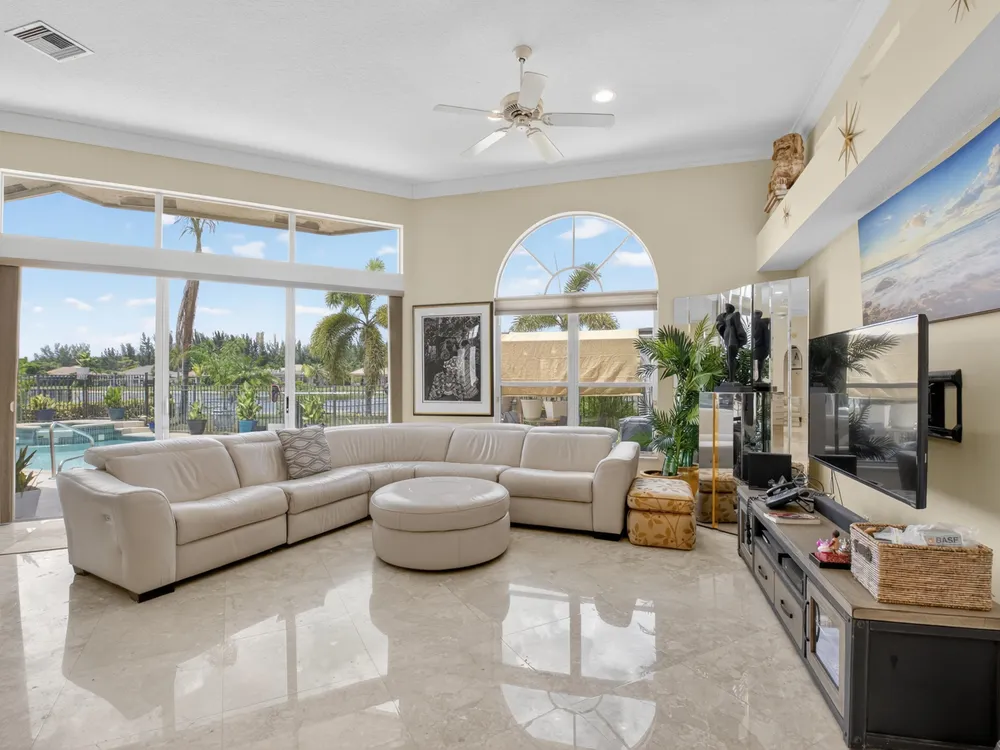 This beautifully upgraded home features a bright, open floor plan with marble flooring and abundant natural light. The stunning kitchen serves as the centerpiece of the home with bar seating, ample storage, and an easy flow for entertaining. Two spacious living areas enjoy sliding doors that fill the rooms with light and invite you outdoors. The primary suite offers serene views of the pool and lake, with sliding doors that create a seamless indoor-outdoor living experience. Its spa-like bath includes a soaking tub and upgraded finishes. Step outside to your private retreat, where a spacious covered patio, pool, and spa overlook the tranquil lake -- the perfect setting for year-round outdoor living.