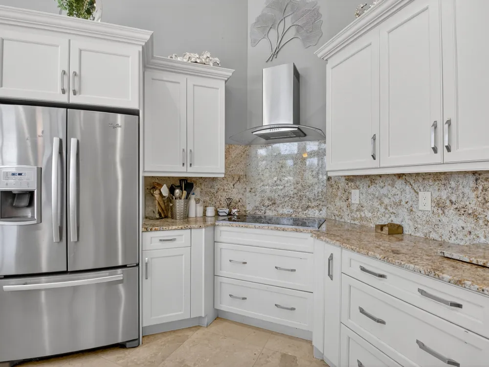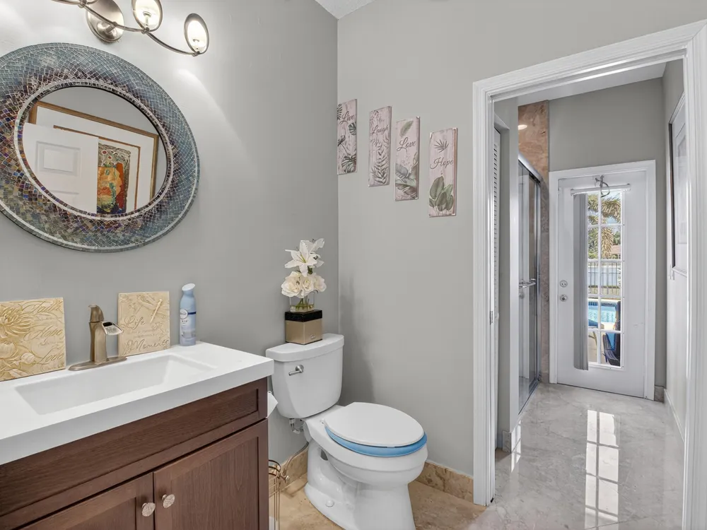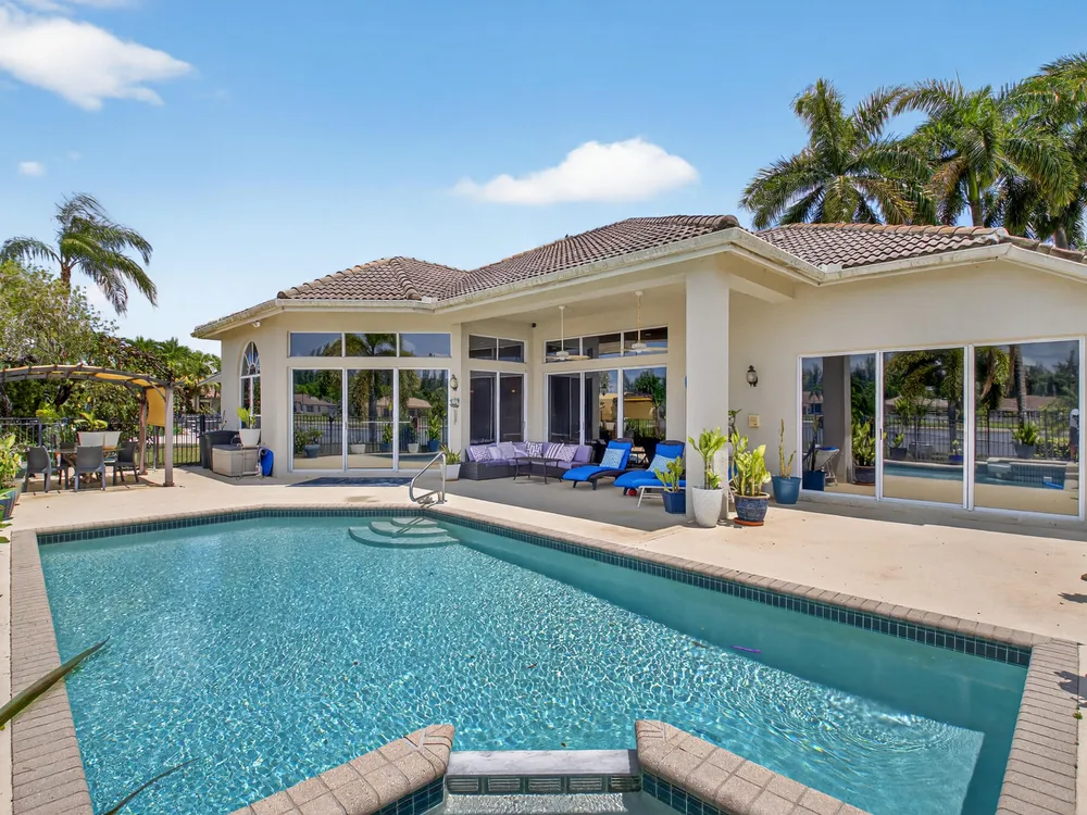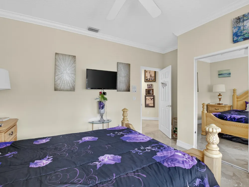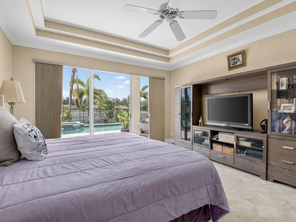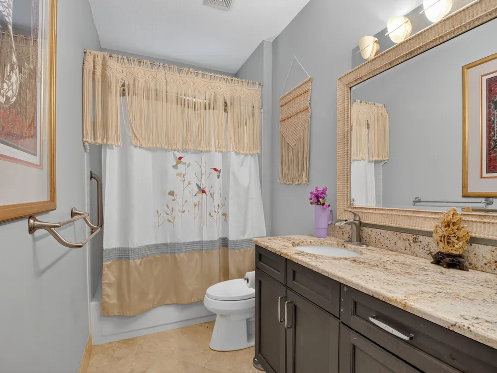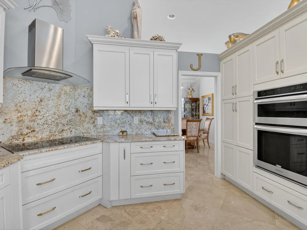 This beautifully upgraded home features a bright, open floor plan with marble flooring and abundant natural light. The stunning kitchen serves as the centerpiece of the home with bar seating, ample storage, and an easy flow for entertaining. Two spacious living areas enjoy sliding doors that fill the rooms with light and invite you outdoors. The primary suite offers serene views of the pool and lake, with sliding doors that create a seamless indoor-outdoor living experience. Its spa-like bath includes a soaking tub and upgraded finishes. Step outside to your private retreat, where a spacious covered patio, pool, and spa overlook the tranquil lake -- the perfect setting for year-round outdoor living.