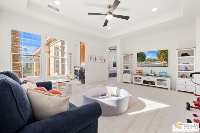 - Ceiling Fan(s), Bar, Cathedral Ceiling(s), Furnished, High Ceilings, Recessed Lighting, Open Floorplan, Wet Bar, Center Hall, Living Room, Utility Room, Walk-In Closet(s), Guest Suite, Formal Entry