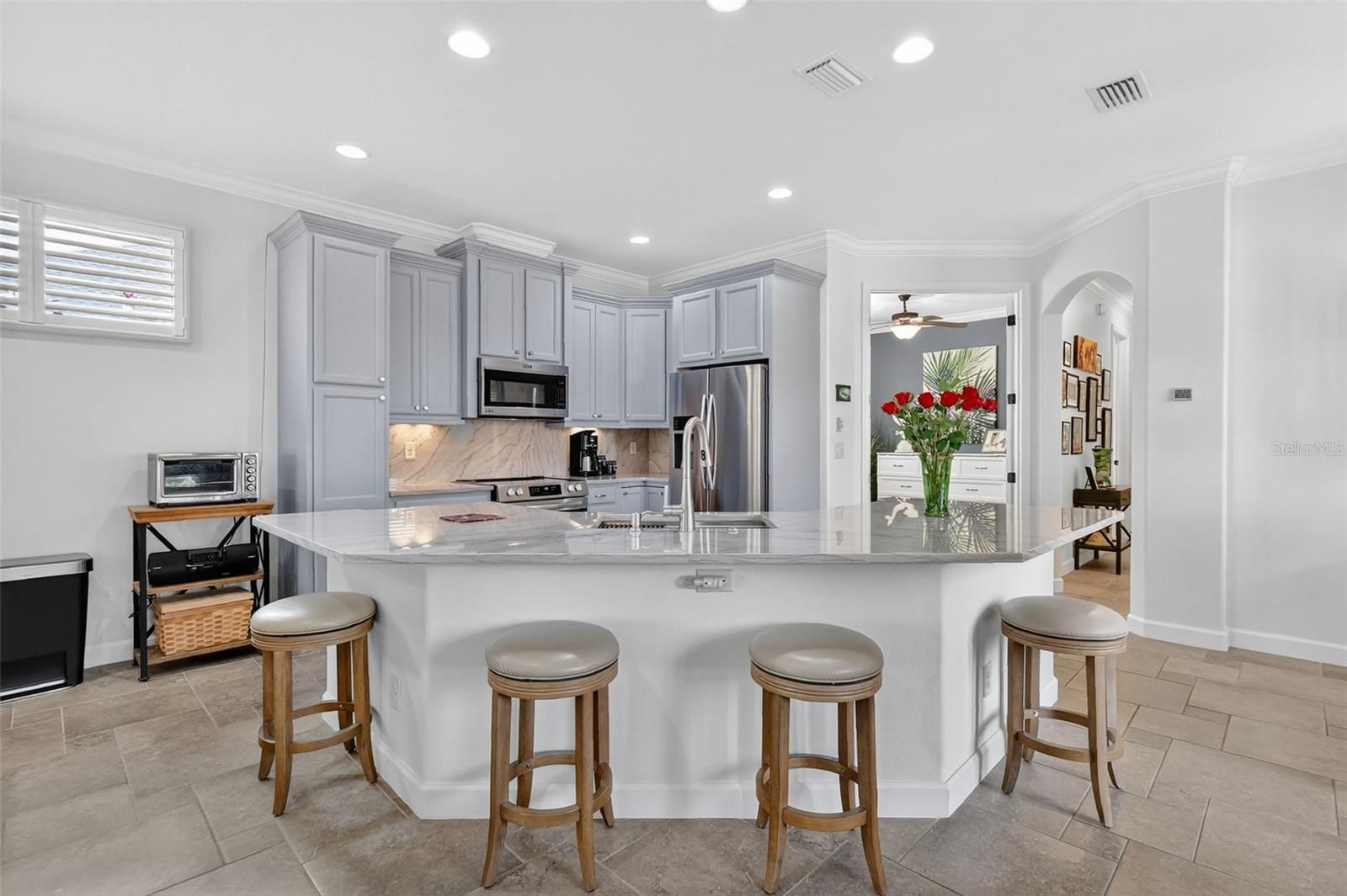 - Cathedral Ceiling(s), Ceiling Fan(s), Crown Molding, High Ceilings, Kitchen/Family Room Combo, Open Floorplan, Main Level Primary, Solid-Wood Cabinets, Stone Counters, Tray Ceiling(s), Walk-In Closet(s), Window Treatments