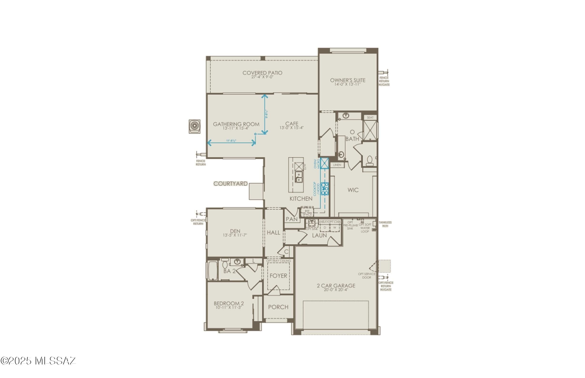Quick Move-In Home - Available Now.The Haven floor plan features 2 bedrooms + den, 1 full bath and a 3/4 owner's bath, with two outdoor spaces--a courtyard off the kitchen and an L-shaped backyard patio. Highlights include 9' ceilings, 8' interior doors, walk-in pantry, tankless water heater, and gas to the kitchen, laundry, and backyard. The chef's kitchen offers upgraded natural cabinets, Oceana quartz counters, SS cooktop, hood, and wall oven/microwave combo. Owner's suite has a walk-in shower. Pre-wired for ceiling fans and pendants. Clubhouse/Rec Center coming 2025.