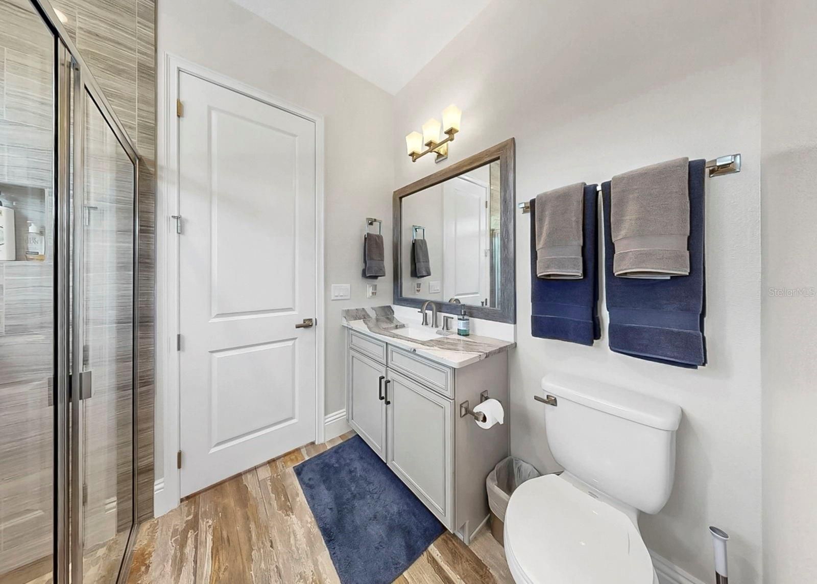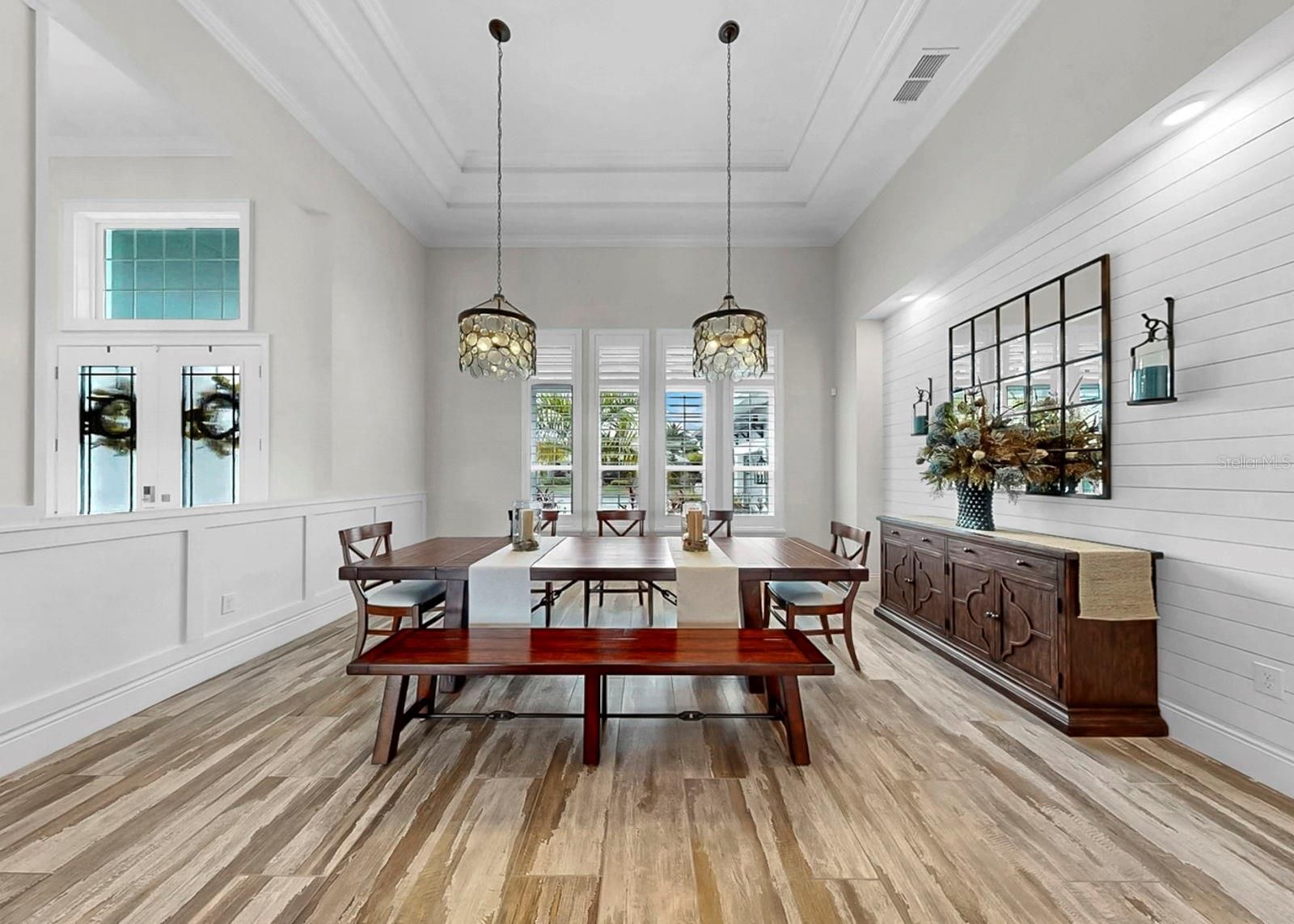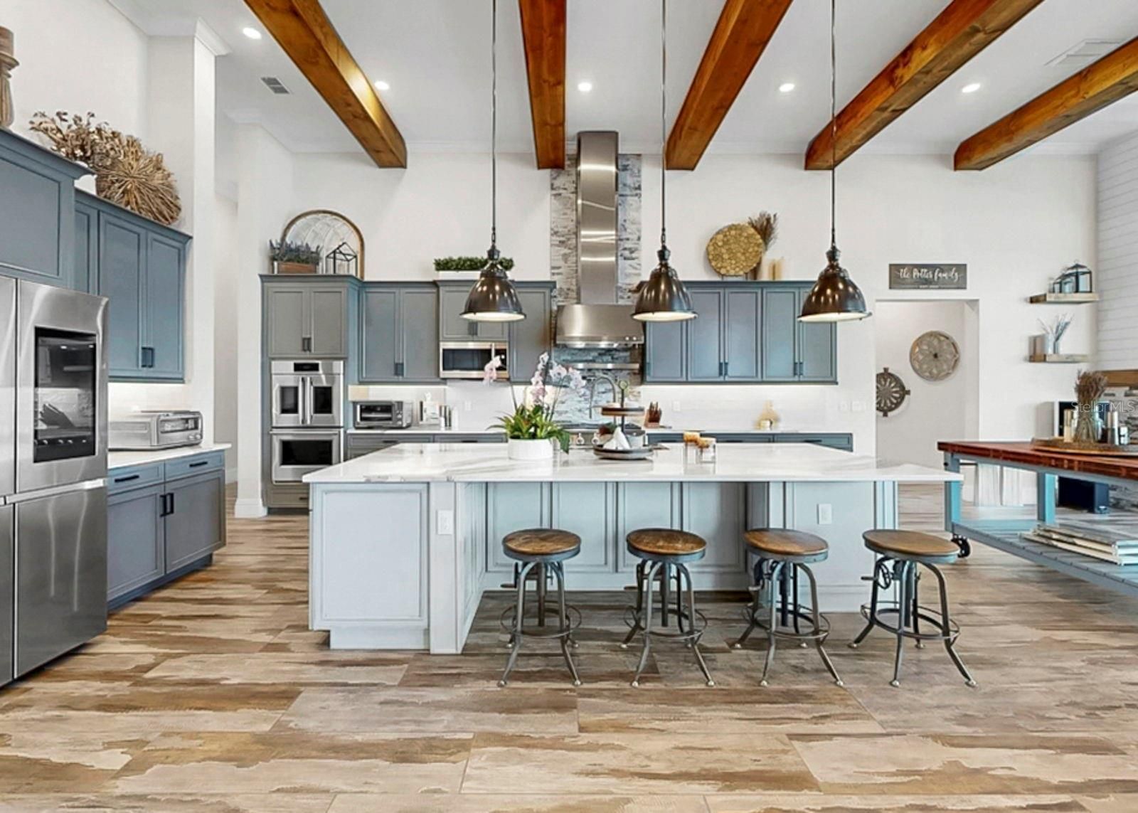 Exquisite waterfront home in Bay Estates Preserve at MiraBay offers resort-inspired coastal living at its finest. Set along a tranquil lagoon with direct access to Tampa Bay and the Gulf, this customized waterfront residence blends architectural precision and coastal design. Completed in 2022 and positioned on a .41-acre homesite with 100 feet of waterfront views, the home was designed to capture panoramic water vistas while offering the comfort of a single-story layout spanning 4,640 sq ft. A paver driveway, landscape lighting, cedar accents, and hurricane-impact glass entry doors introduce a residence where craftsmanship is immediately evident. Inside, fifteen-foot ceilings, crown molding, custom millwork, and oversized porcelain tile create open, elegant interior. WHOLE-HOUSE HURRICANE-IMPACT WINDOWS and expansive pocketing sliders blur the line between indoor and outdoor living, filling the home with natural light and water views. The main gathering areas flow seamlessly between the living room, dining space, and family room, where architectural details, designer lighting, and fireplaces create both sophisticated and welcoming spaces. A built-in bar with illuminated glass cabinetry enhances the home’s entertaining appeal. At the center of the home, the chef’s kitchen features an impressive eleven-foot quartz island beneath handcrafted wood ceiling beams. Monogram professional appliances include a six-burner gas rangetop, double ovens, Advantium speed oven, and integrated refrigeration. Bespoke cabinetry with integrated lighting and designer backsplashes complete the space. The owner’s suite offers a private waterfront retreat with lagoon views and automated window treatments. Entered through custom wood-and-glass barn doors, the spa-inspired bath includes a freestanding soaking tub, rain and aromatherapy shower, floor-to-ceiling tile, quartz vanities, and backlit mirrors. A customized boutique-style wardrobe room with handcrafted cabinetry and a quartz-topped center island adds exceptional luxury. Outdoor living defines the home. Beneath a 1,250-square-foot covered lanai with wood ceilings, coastal breezes flow across a spectacular infinity-edge pool and champagne spa finished in glass tile and surrounded by leathered marble decking. Waterfalls cascade along a privacy wall while a natural gas fire feature reflects across the water, creating an atmosphere perfect for both quiet evenings and gatherings. A sun shelf, swim-up seating, color-changing lighting, and pool automation enhance the experience. Entertaining continues in the outdoor culinary pavilion featuring a natural gas grill, stainless Kamado grill, and custom Gaucho grill, complemented by stone countertops, refrigeration, an ice maker, and illuminated storage overlooking the canal. For boating enthusiasts, a maintenance-free Trex dock extends over protected waters with a remote-controlled 16,000-pound lift, shore power, and water service, accommodating vessels up to thirty-five feet with direct access to Tampa Bay and the Gulf. Modern systems include dual Trane HVAC with UV purification, a tankless gas water heater, R-49 insulation, smart irrigation, whole-home water softening, structured wiring, Wi-Fi expansion, advanced security, and a three-car garage with EV charging. Residents of MiraBay enjoy resort-style amenities including waterfront clubhouse dining, heated pools, fitness facilities, tennis and pickleball courts, and kayaking. Schedule your private tour today.