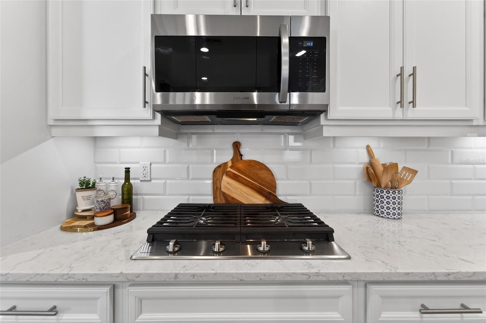 - Built-In Oven, Cooktop, Dishwasher, Disposal, Microwave, Tankless Water Heater