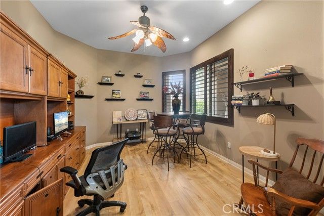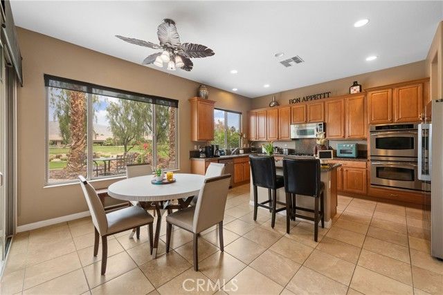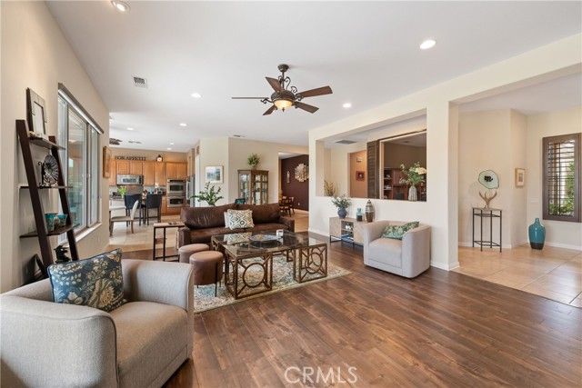 Resort-Style Living on a Premium Corner Lot in Sun City Shadow Hills Located within the prestigious 55+ active adult community of Sun City Shadow Hills, this beautifully appointed home offers 2 bedrooms, a versatile den/office, 2.5 bathrooms, and 2,610 square feet of thoughtfully designed living space. A water-wise, desert-landscaped front yard and a welcoming entry set the tone for the comfort and quality found throughout the home. Inside, the bright, open layout is enhanced by tile flooring in the main living areas and stylish laminate in both bedrooms and the den, creating a perfect balance of elegance and comfort. The well-designed kitchen is ideal for everyday living and entertaining, featuring granite countertops, stainless steel appliances, a gas cooktop, double ovens, and generous cabinetry. The spacious primary suite serves as a private retreat, complete with a spa-inspired bathroom offering dual vanities, a step-in shower, and a relaxing soaking tub. The guest bedroom includes a convenient walk-in closet, ensuring ample storage for visitors. A dedicated indoor laundry room adds everyday convenience, while the attached three-car garage provides abundant space for vehicles and a golf cart. Step outside to the covered patio and enjoy the low-maintenance desert-landscaped backyard with serene golf course views—perfect for morning coffee, evening gatherings, or simply unwinding in the desert breeze. As a resident of Sun City Shadow Hills, you will enjoy a vibrant resort-style lifestyle with access to championship golf courses, elegant clubhouses, state-of-the-art fitness centers, sparkling pools and spas, tennis and pickleball courts, and a wide array of clubs and social activities designed to inspire connection and enjoyment.