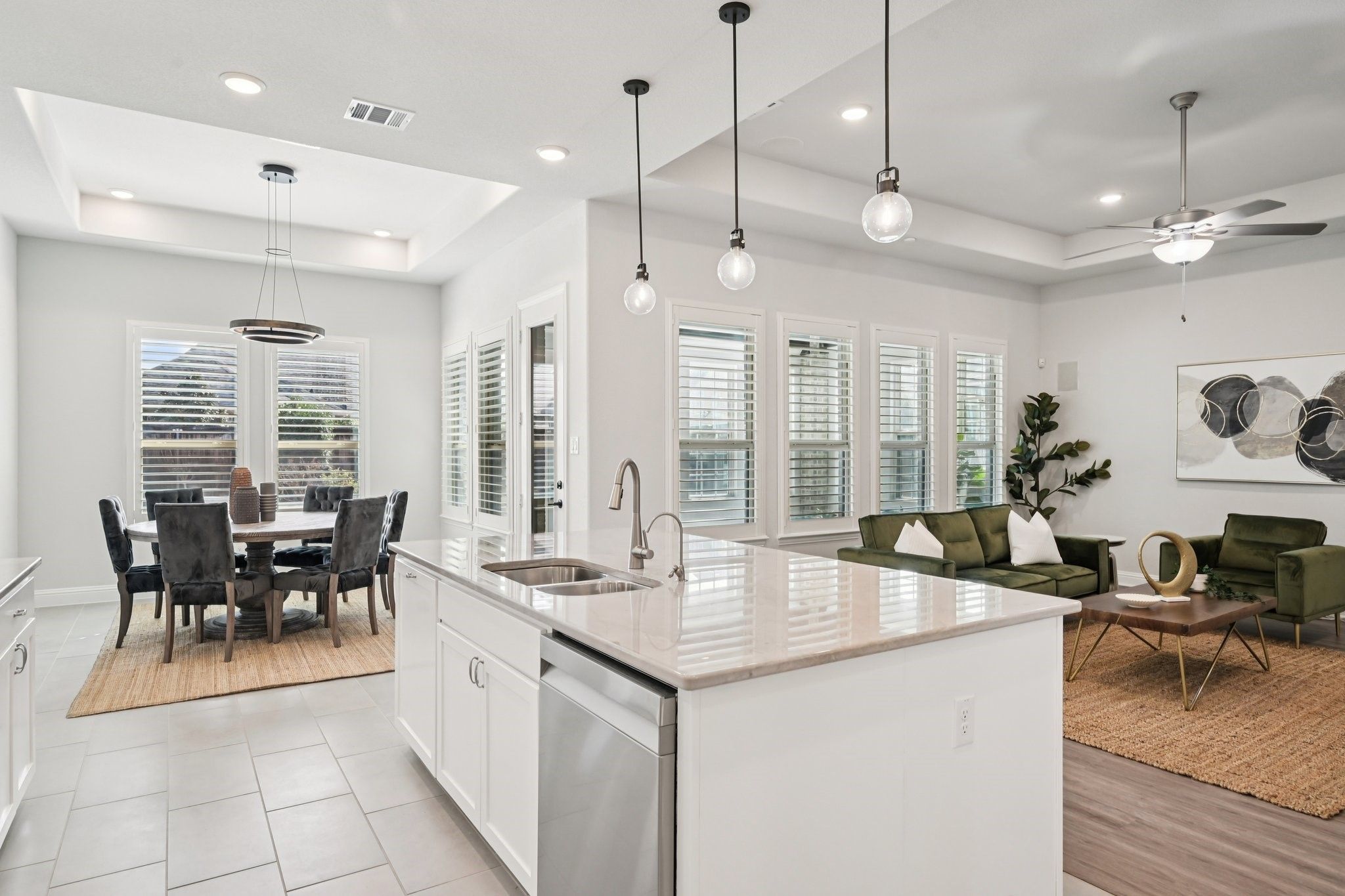 Stunning single-story home in Waterford Point, built in 2021, offering true resort-style living in one of The Tribute’s most desirable lakeside communities. Just moments from the community center, residents enjoy exceptional amenities including a private marina, beach access, and a resort-style pool. This light-filled 3-bedroom, 2.5-bath home features an open and inviting layout with a bonus sunroom perfect for relaxing or entertaining. The modern kitchen is a showstopper with stainless steel appliances, a gas cooktop, and a spacious island ideal for casual breakfasts or hosting guests. The private primary suite feels like a retreat, complete with dual sinks, a built-in vanity, a freestanding soaking tub, and a separate shower. The oversized walk-in closet includes custom built-ins and connects directly to the laundry room for added convenience. A split-bedroom floor plan provides ultimate privacy, with secondary bedrooms located on the opposite side of the home. The third bedroom has been thoughtfully converted into a home office, offering flexible space to fit your lifestyle. Freshly painted and truly move-in ready, this gorgeous home is an incredible opportunity to enjoy lakeside living at its finest. Don’t miss it! Discounted rate options and no lender fee future refinancing may be available for qualified buyers of this home.