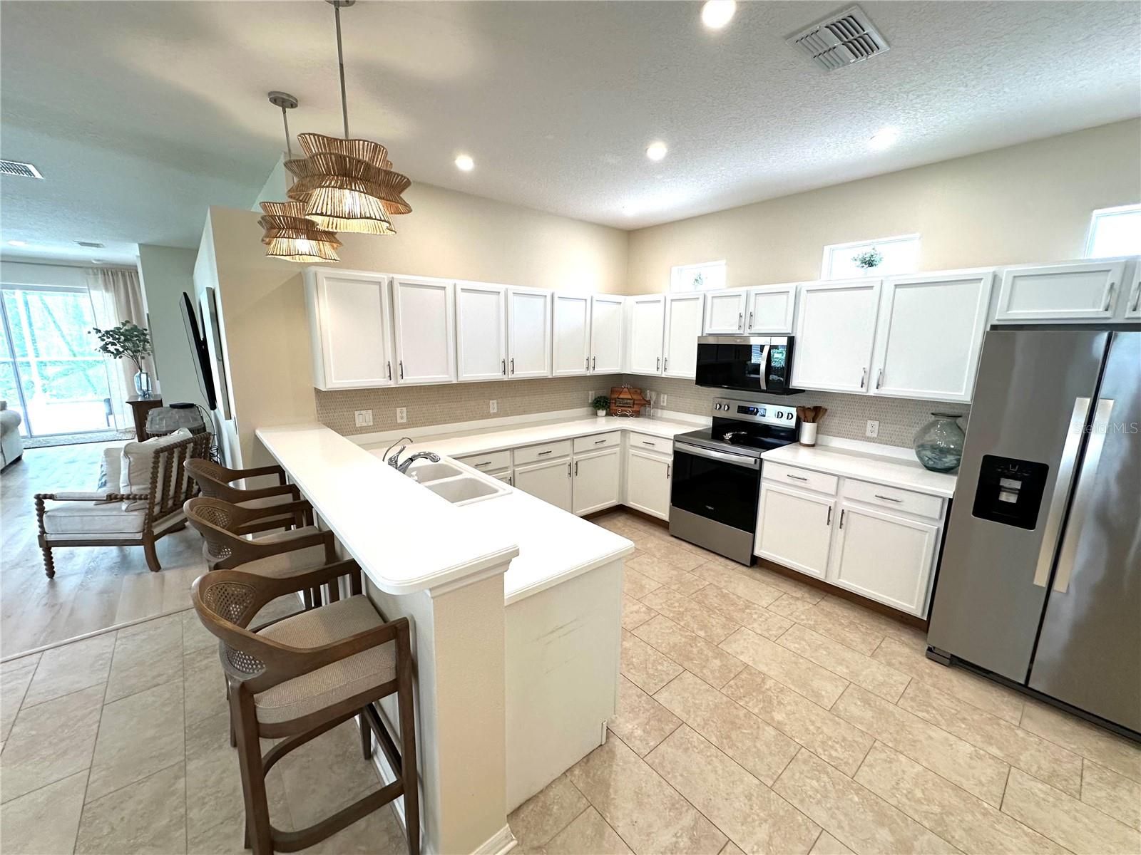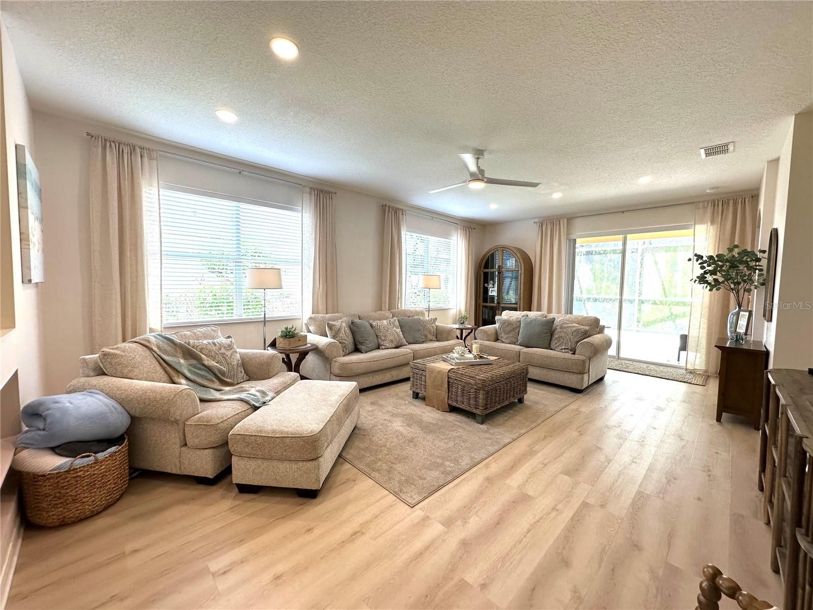 AMAZING TURNKEY OPPORTUNITY!!! NOTHING NEEDS TO BE DONE-JUST MOVE IN!! "Wake up, grab your golf cart, meet your friends for breakfast at the clubhouse, play shuffleboard or bocce and end the day watching the sunset from your lanai..." can be your reality!! Amazing opportunity to make this 55+ community, newly updated picture perfect 2 BR 2 BA home with an office and an oversized screened in lanai with cathedral ceiling that backs up to breathtaking views of the trees and sunset. OVERSIZED LOT with no rear neighbors for a private, peace and quiet oasis! The Groves Golf & Country Club, has an 18 hole golf course with a driving range, with so much to do! Pickleball, Bocce, shuffle board, Bingo, Fitness center, library, Pro shop, clubhouse, restaurants, tennis, resort style pool, plus daily activities! **The HOA conveniently covers the roof replacement, exterior paint, lawncare, Wifi and cable tv! Just minutes to Publix(drive your golf cart), restaurants, shops, salons-everything that you need! OWNER UPDATED FEATURES include-NEW Closet by Design, NEW recessed ceiling lighting throughout, NEW ceiling fans, NEW life proof vinyl plank flooring, NEW fire alarms, NEW interior paint, NEW exterior paint 3/25, NEW dishwasher, NEW stove, NEW microwave, NEW washer/dryer, NEW kitchen backsplash, and more! **SAVE 1% if you use sellers preferred lender!!