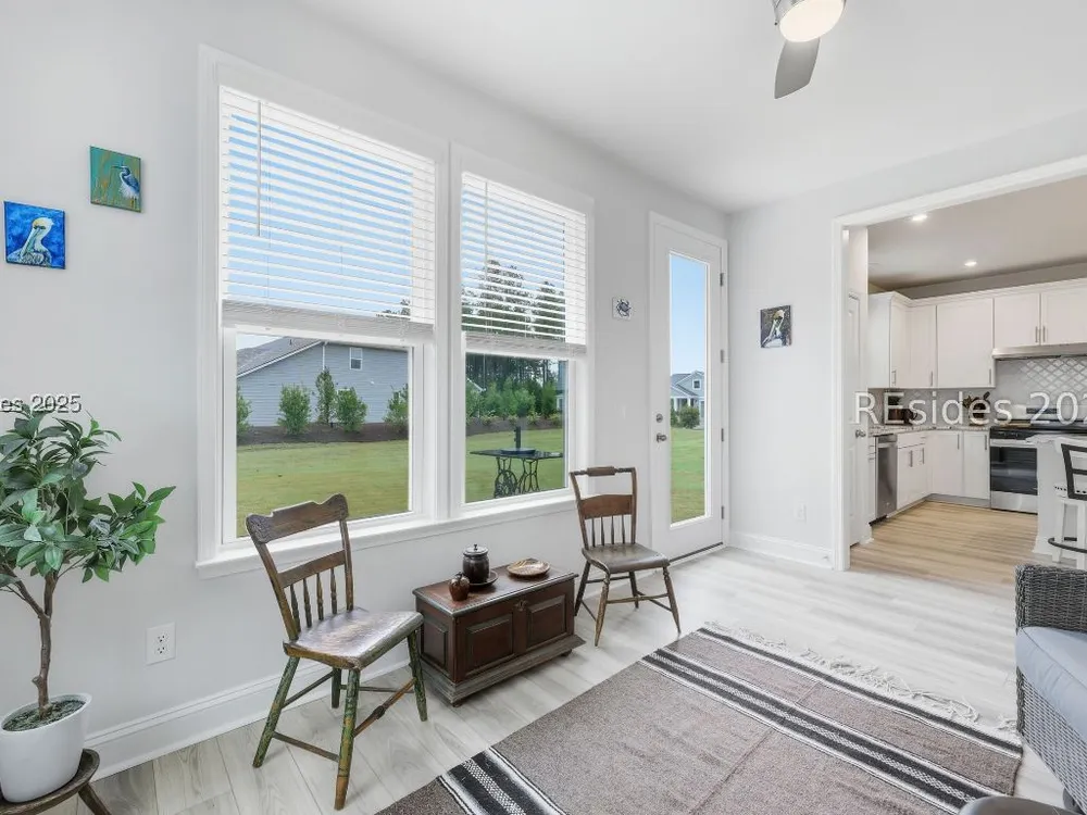 Why wait for new construction? This 1 year young, 2 bed/2 bath Compass model has everything you want - with numerous upgrades and fresh design features you'll love. It sports an open floor plan, with 2 bedroom and 2 baths, plus an office and fully finished Carolina Room (bringing total square footage to over 1500), so you'll have plenty of room to spread out and entertain. Special features include an upgraded kitchen with granite counters and gas range, upgraded trim package, primary bath with tiled shower, epoxy garage flooring, pull down attic stairs, spray foam insulation, gutters and impact windows throughout. All this on a great lot, conveniently located near the side entrance and a short walk to the brand new Amenity Center. Sun City is known for its resort-style living with fabulous facilities and numerous clubs and activities. Start living your dream lifestyle in this like-new home today.