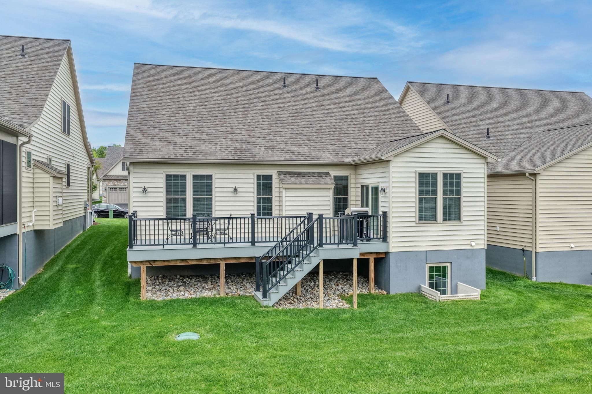 814 Summer Breeze Path is a beautifully maintained, four‑year‑young home located in the highly sought‑after Honeycroft community, built by renowned Cedar Knoll Builders. Lightly lived in and truly better than new, this home features numerous post‑construction upgrades including enhanced lighting, electrical additions, and window treatments included throughout. The main level offers a desirable open floor plan filled with natural light, highlighted by high‑quality luxury vinyl plank flooring and a warm gas fireplace. The bright white kitchen is both stylish and functional, featuring granite countertops, center island, pantry storage, and seamless flow into the living and dining areas. A sun room addition extends the living space and opens to an oversized composite deck with steps to grade—perfect for entertaining or relaxing outdoors. The first‑floor primary suite provides comfort and privacy, accented by a charming barn door leading to the primary bath. Also on the main level is a guest bedroom or study with an adjacent full bath, along with a convenient first‑floor laundry room complete with a work sink. Upstairs, a spacious bedroom offers a large adjacent sitting area and a dedicated full bath, ideal for guests or extended use. Additional features include an oversized walk‑in attic storage room, propane heat, ceiling fans (or wiring) in all rooms, and a thoughtfully upgraded lighting package. The home is complemented by a high‑ceiling basement with a smooth, enameled floor and a two‑car garage finished with a matching textured enameled surface—offering both practicality and a clean, finished appearance. This bright, sunny, and meticulously cared‑for home combines modern comfort with quality construction in a premier community setting.