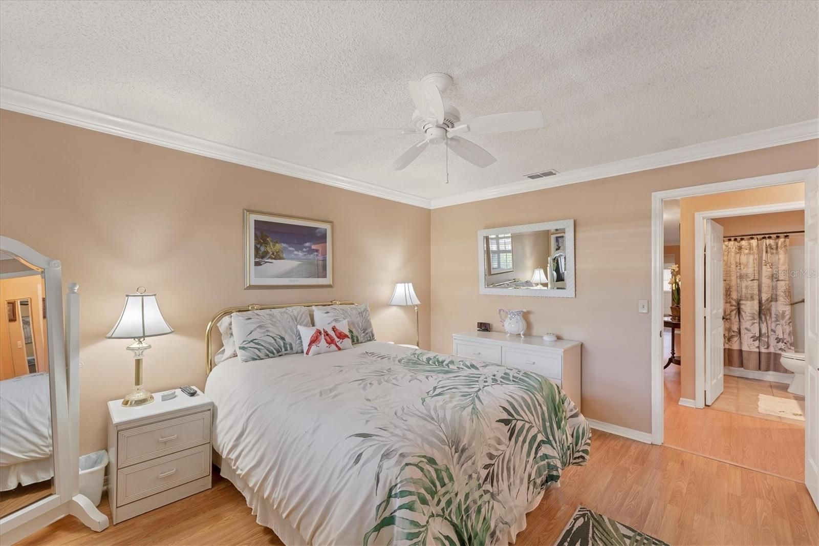 - Ceiling Fan(s), Crown Molding, Eat-in Kitchen, Living/Dining Room, Open Floorplan, Solid-Wood Cabinets, Stone Counters, Window Treatments