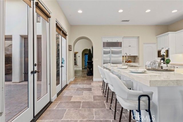 Stunning Lakefront Estate on the Greg Norman Course! Back on the market after a kitchen remodel, this home now showcases a completely reimagined kitchen, family room, and dining space clad in Taj Mahal quartzite natural stone, complete with dramatic waterfall countertops, custom cabinetry, updated lighting, and refined finishes throughout. Every detail was elevated to create a timeless luxury living experience. This Plan IV home offers approximately 4,200 sq ft of refined living space, featuring 5 bedrooms and 5.5 baths, including an attached casita and an enclosed upstairs bedroom with a sky deck. Designed with casual elegance and ideal for entertaining, the open-concept great room seamlessly connects to a chef’s kitchen complete with granite countertops, custom range hood, and full backsplash. Step outside to a backyard oasis with a sparkling Pebble Tec saltwater pool and spa, cascading waterfall, built-in BBQ island, and generous patio space—perfect for outdoor gatherings. A rare opportunity to own a premium golf course and lakefront property! Information provided is deemed reliable but is not guaranteed and should be independently verified. Buyer and Buyers agent are responsible for verifying all aspects of the property, including but not limited to square footage, lot size, boundaries, permits, usage, and condition to their own satisfaction. Seller is a licensed California Real Estate Agent. Call for showing. Sold Fully Furnished