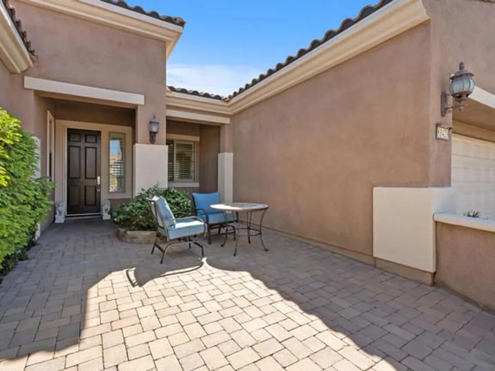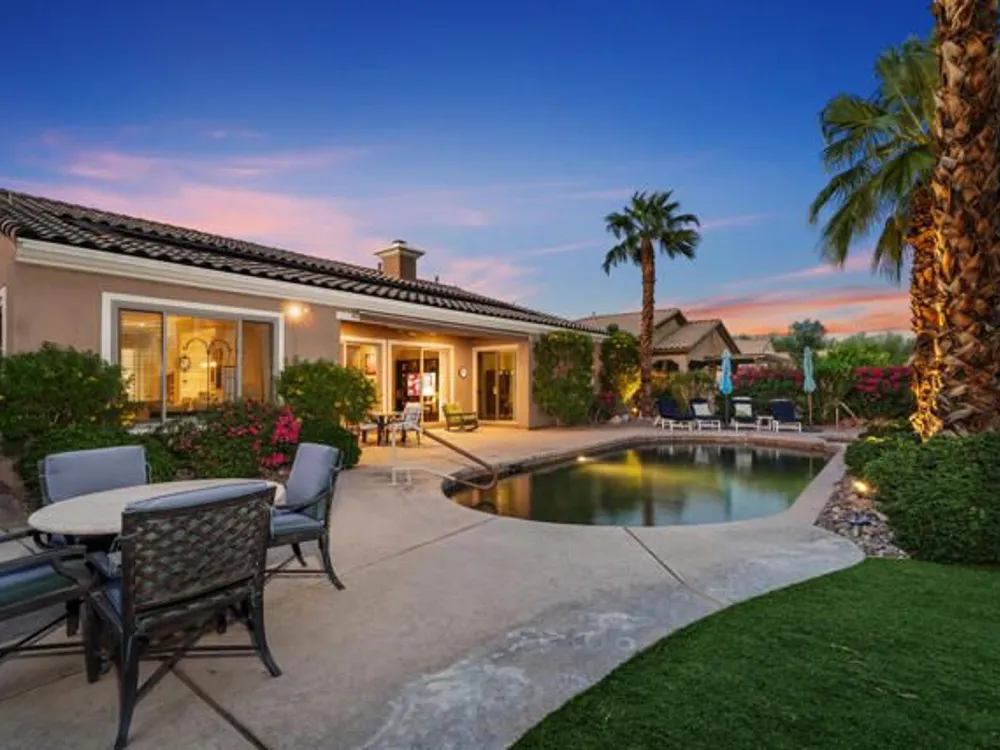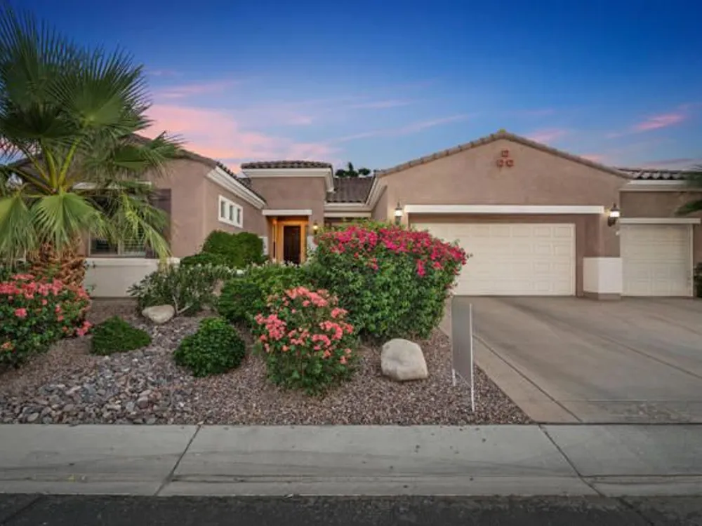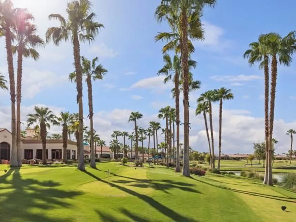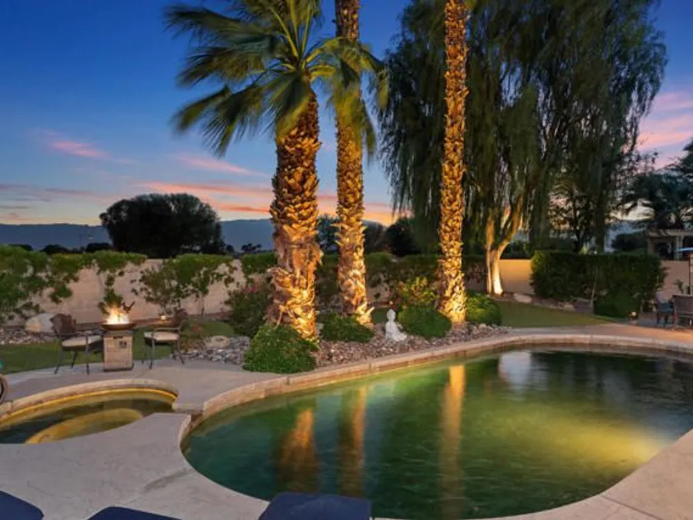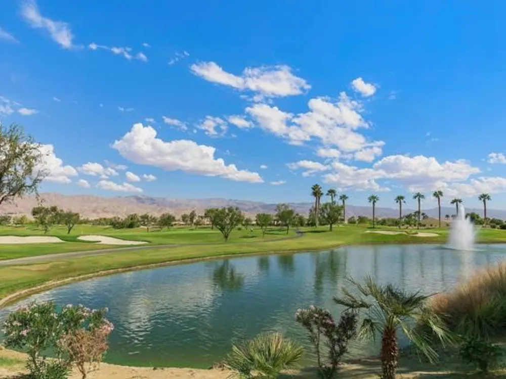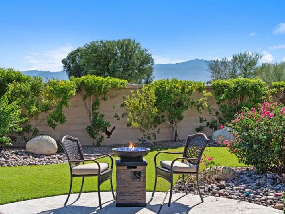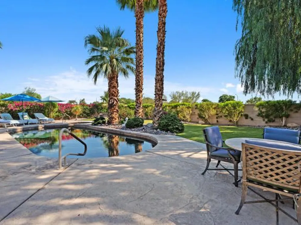 Wait till you see the spectacular panoramic view of the Santa Rosa Mountain range from your estate sized pool home that offers luxury living year-round. This home has been recently refreshed and is ready to move-in! The property is being offered by the original owners, who have added numerous upgrades and amenities. Enter through a paver front courtyard to a living/dining room featuring large glass sliding doors that offer clear mountain views. The Dorado model home features large rooms, two bedroom suites, and an office or den situated between them. The primary suite features a remodeled walk-in shower, and closet with triple rod storage and built-in laundry hampers. The kitchen has been recently updated with white cabinets, a Fisher-Paykel two-drawer dishwasher, Cambria stone countertops and backsplash, and is open to the living area and sunroom/kitchen dining space. There is a half bath for guests and a large utility room that includes plenty of storage for all the essentials and supplies from Costco shopping!This floor plan is one of the few in the community with a full three-car garage. This one includes epoxy floors, NEW mini-split AC, tankless water heater, and built in cabinets and overhead storage.The truly premium south facing lot of over 10,000/sf provides you room to stretch out and enjoy the desert weather. The Black Pearl pebble tech pool is equipped with a 4 hp 'Badujet' SWIMJET, which is a swimmer's exercise dream, with a bubbling spa to loosen those muscles after your swim (all Pentair pool equipment). The low maintenance turf landscaping only enhances the view and the time to relax in your own desert oasis. Inside, there is a fireplace for use during cooler winter evenings. The upgrades list goes on with TILE FLOORS throughout except the guest suite, CROWN MOLDING, energy efficiency with the PULTE energy-saving package that includes extra insulation and dedicated solar cells. NEW Anderson windows installed on south and west sides of house for extra efficiency. The garage has an ELECTRIC CAR CHARGER. Sun City Shadow Hills is a premier 55+ community, and this home is just a short walk to the Santa Rosa clubhouse & fitness center for gym, pickle ball, tennis, bocce ball and a Nationally ranked Executive par 3 golf course. Make an appointment now to see it when it's ready!