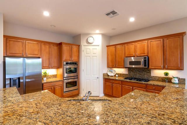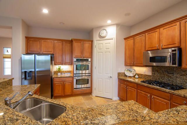 Lovely Avalino Model with Santa Rosa Mountain Peek View! Highly Sought after Del Webb Sun City Shadow Hills for Active Adult Living at it's Best! Enjoy Resort Style amenities, Clubs, Vibrant Social Life including Performing Arts, Concerts, Movies in the Park, & So Much More. Two Clubhouses, Two Fitness Centers, Pools, Spas, 8 Pickleball courts, Plus Tennis! Two Golf Courses, Putting Greens & Driving Range, miles of Walking Trails! Move in Ready... New Interior Paint in Soft soothing Neutral color tones! You'll appreciate this Open & Inviting floor plan which is Great for Entertaining & Relaxation. Enjoy a Spacious Cook's Kitchen with Plenty of Storage, Counter space! Large Walk in Pantry! Granite Breakfast Bar extends your dining and serving space. Casual Dining area is conveniently located off Kitchen & Great room with Slider Door to access Private South facing Leisure yard, Covered Patio, lushly landscaped South facing yard. 2 car attached garage, potential space in front yard area to add a casita or courtyard with HOA approval, of course! Set up your Private Tour, This Home, has been seldomly used by owner and Never used as a rental.