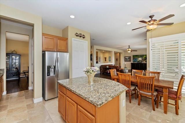 La Paz model with beautiful south-facing golf course and distant mountain views. Partially furnished. Detached casita with private courtyard will accommodate a space for guests and family! The large primary suite in a separate wing of the home has patio access and faces the golf course. The primary bath has dual sinks, including a vanity, large soaking tub and separate shower. A walk-in closet is located at the end of the bathroom. Kitchen is fully equipped with stainless steel appliances, granite slab countertops, kitchen island, breakfast area, butler's pantry, and walk-in pantry. New dishwasher and microwave. There is a separate formal dining room, perfect for entertaining. Shutters and flooring were added recently. The den can be used as an office or converted to an additional bedroom. Sun City Shadow Hills is one of the premiere communities for active senior living in the desert. Amenities include 2 Clubhouses, a restaurant, community pools, tennis and pickle ball courts, one championship golf course and one challenging executive golf course. Come see this wonderful golf course home in one of the best locations within the community. Call for a private showing today!