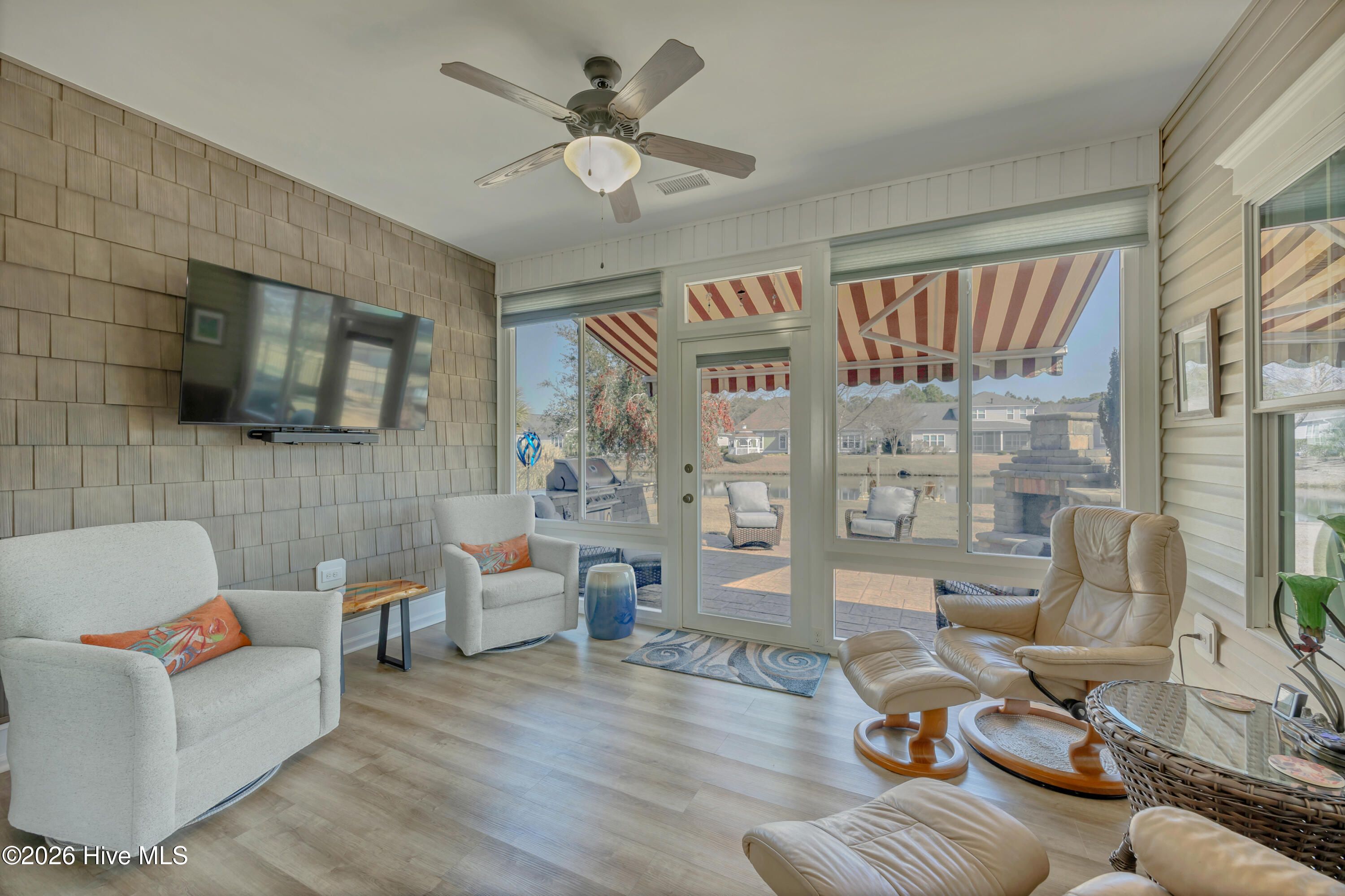 Welcome home to Compass Pointe. 8144 Garden Pointe offers 3 bedrooms and 2 full baths in this sought after gated community with resort style amenities you won't find anywhere else. This property combines thoughtful design with modern comforts. Inside, you'll find an open layout with a spacious living room and cozy fireplace and a fully updated kitchen featuring granite countertops and a gas range. Don't miss the hidden office! Enjoy outdoor living with a heated & cooled all season room and a rear patio overlooking the pond. Launch your kayaks from your private deck. Compass Pointe residents enjoy unmatched amenities, including a lazy river, indoor pool, outdoor pool, as well as golf, fitness facilities, and pickleball courts. Golf club memberships are required for the golf course. This home offers not only comfort and style but also the peace of mind and luxury lifestyle that comes with living in a premier gated community.
