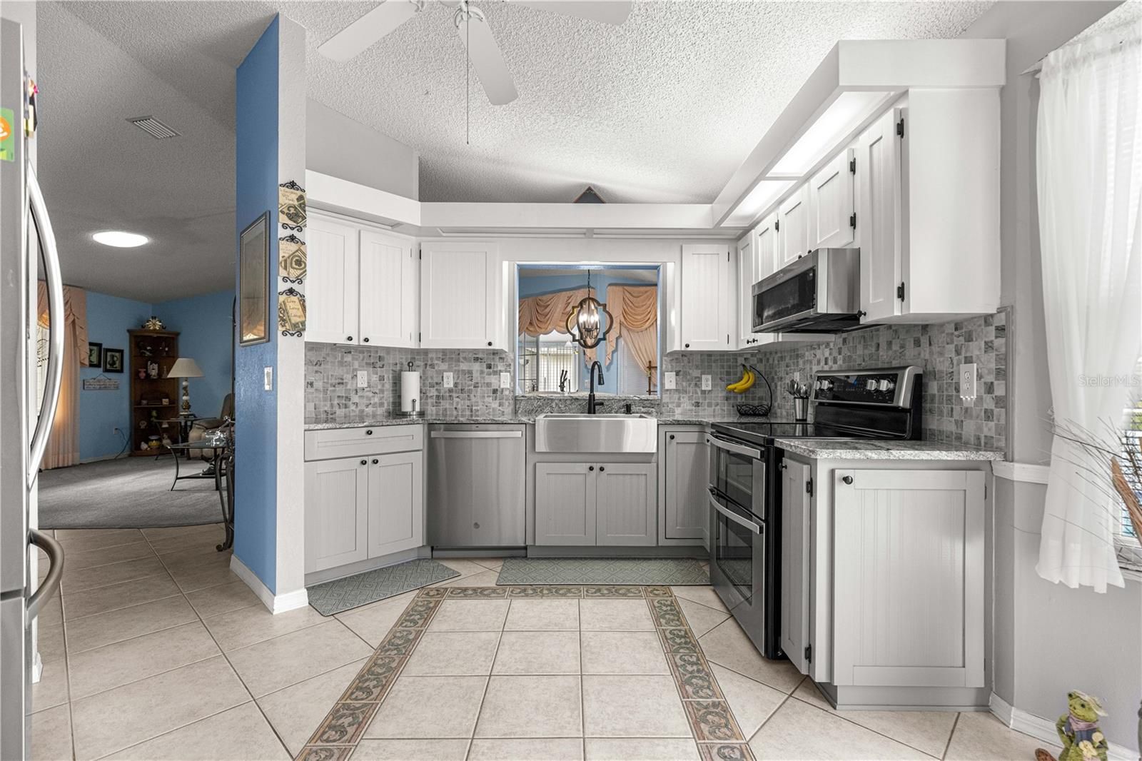 - Cathedral Ceiling(s), Ceiling Fan(s), Living/Dining Room, Open Floorplan, Split Bedrooms, Stone Counters, Thermostat, Walk-In Closet(s), Window Treatments