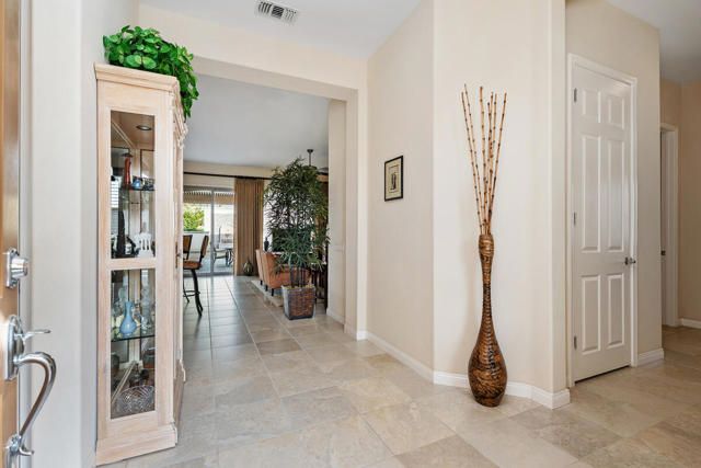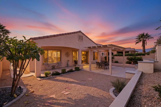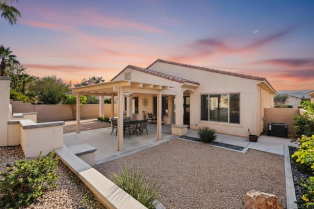 Serene and private best describe this beautifully maintained residence, ideally positioned on a quiet street within Sun City Shadow Hills. This pristine Avalino model has been meticulously cared for by its original owner and offers 1,763 square feet of thoughtfully designed living space. The home features two bedrooms, two bathrooms, and a versatile den or office--well suited for a primary residence or a seasonal retreat.The kitchen is equipped with stainless steel appliances, a walk-in pantry, and an expansive serving bar, making it both functional and inviting for entertaining. Situated on a generous north-facing lot, the backyard is designed for enjoyment and privacy, complete with a grand Alumawood pergola, soothing fountain, and ample space for outdoor gatherings. Low-maintenance landscaping and high perimeter walls create a tranquil setting that feels entirely your own. Sun City Shadow Hills is a popular 55+ active adult community celebrated for its friendly vibe and outstanding resort-style facilities. Residents have access to two spacious clubhouses with modern fitness centers, both indoor and outdoor pools, relaxing spas, and a diverse schedule of classes and events. The community features two meticulously maintained championship golf courses, as well as courts for tennis and pickleball. There are numerous social clubs that cater to many interests--including arts and crafts, travel, and dining. Recreational options also include bocce, billiards, and over 50 different social clubs. This home presents a unique chance to experience comfortable desert living and is definitely worth seeing in person.
