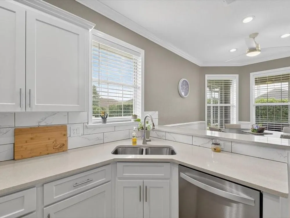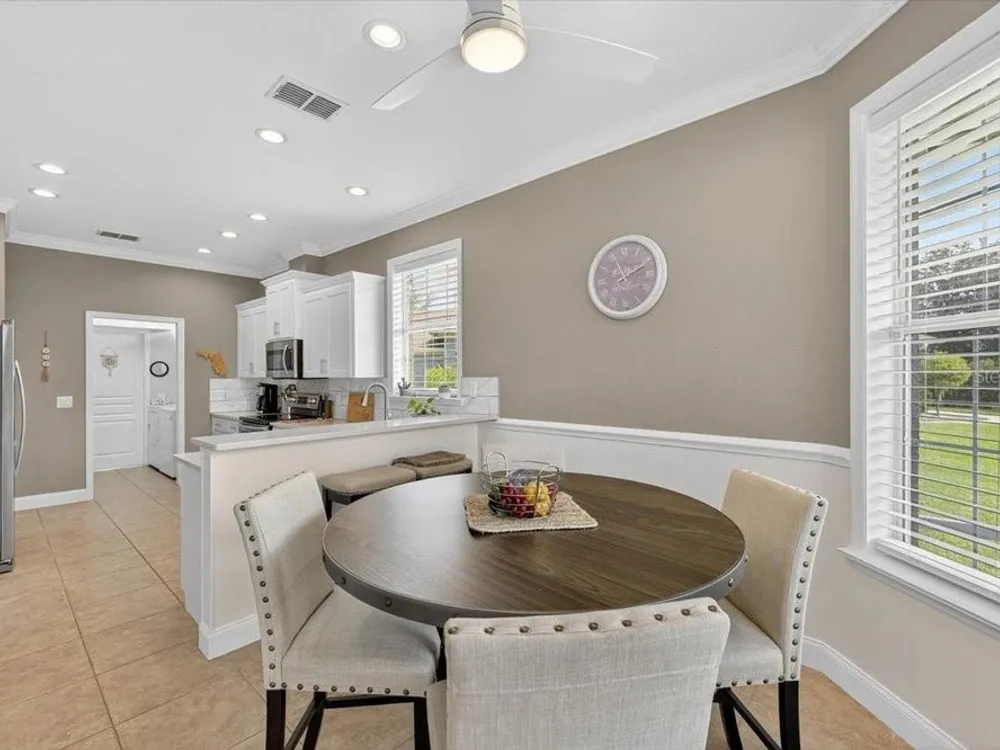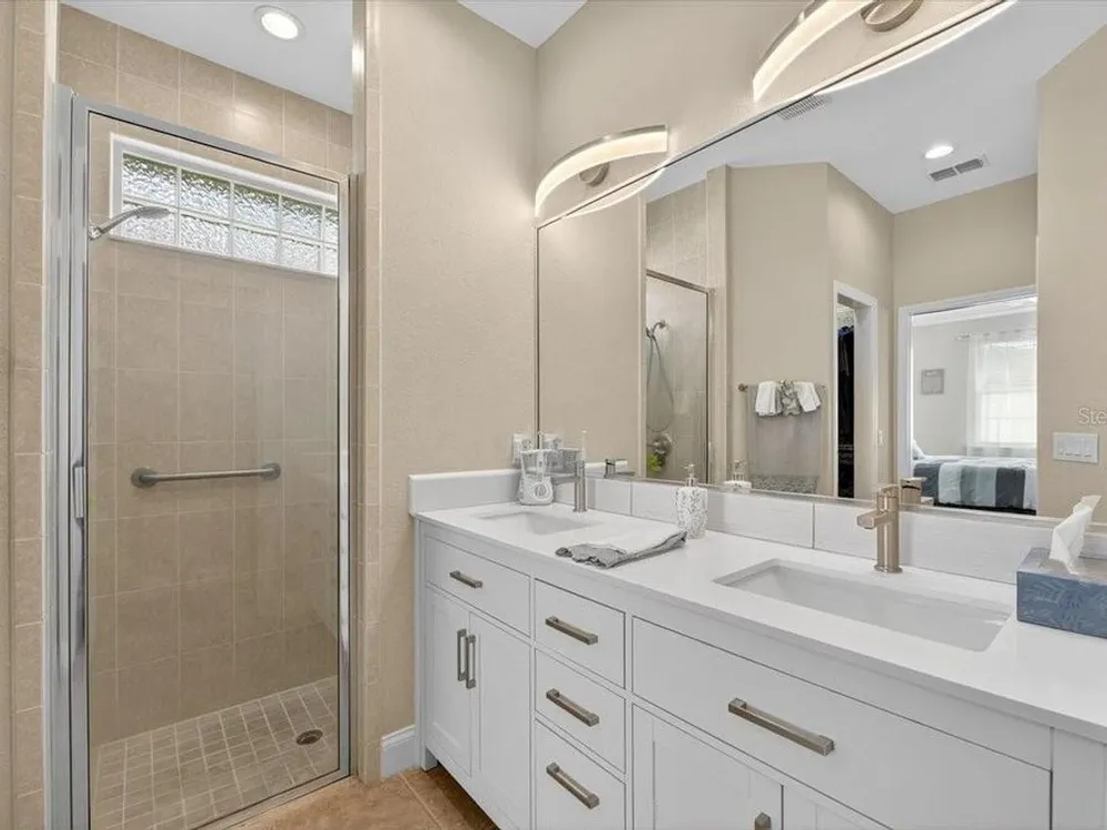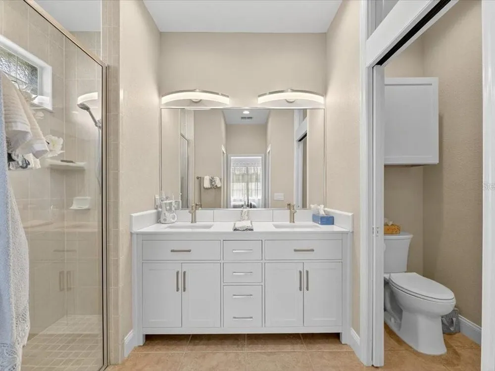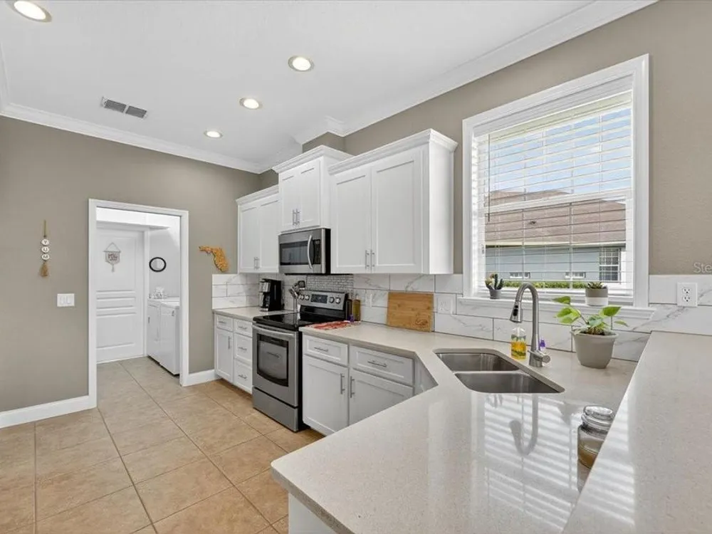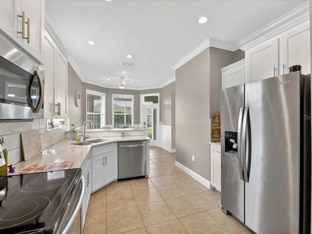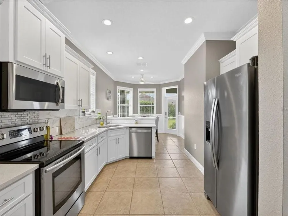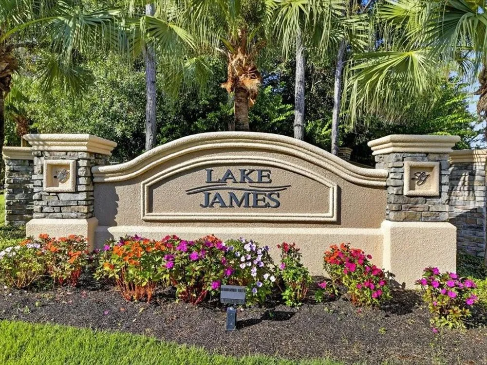 Welcome to this beautifully updated 2BR/2BA home in the desirable 55+ gated community of Lake James. Sitting on a large lot, every inch of this home has been thoughtfully refreshed for comfort and peace of mind. Recent updates include a new roof, new A/C, new hot water heater, and garage door opener (2024), plus new LED lighting, fans, blinds, switches, and hardware (2021). The kitchen was renovated in 2021 with refaced cabinets, quartz countertops, new sink and backsplash, and updated appliances including dishwasher and refrigerator. Both bathrooms feature new vanities and toilets (2021). Plush new carpet adds warmth to the living and bedroom spaces. The master suite includes double walk-in closets, an ensuite with a walk-in shower, double vanity and a separate water closet. The convenient laundry room provides storage cabinets, a pantry and a utility sink. Enjoy outdoor living with a re-screened lanai and new front screen enclosure (2023). Lake James offers a tranquil lake, walking trails, a community pool, and clubhouse — all close to shopping, dining, and medical care. Move-in ready and lovingly maintained, this home offers worry-free living in one of the area’s most welcoming active adult communities!