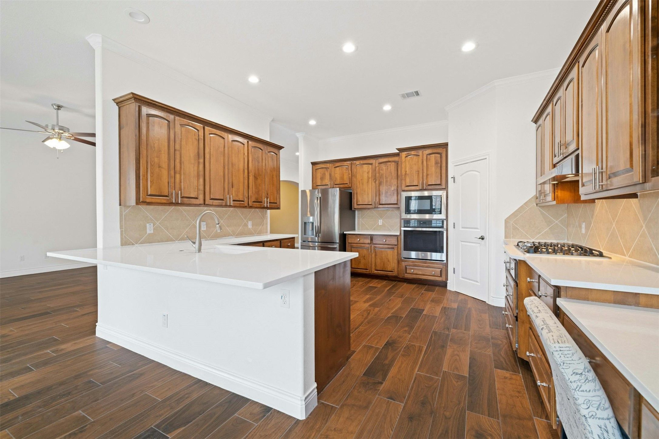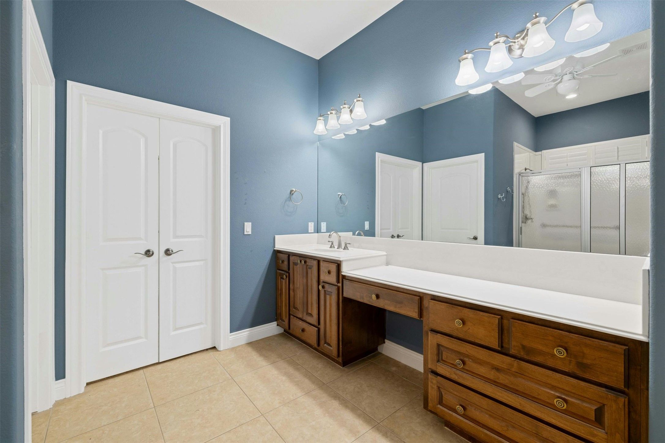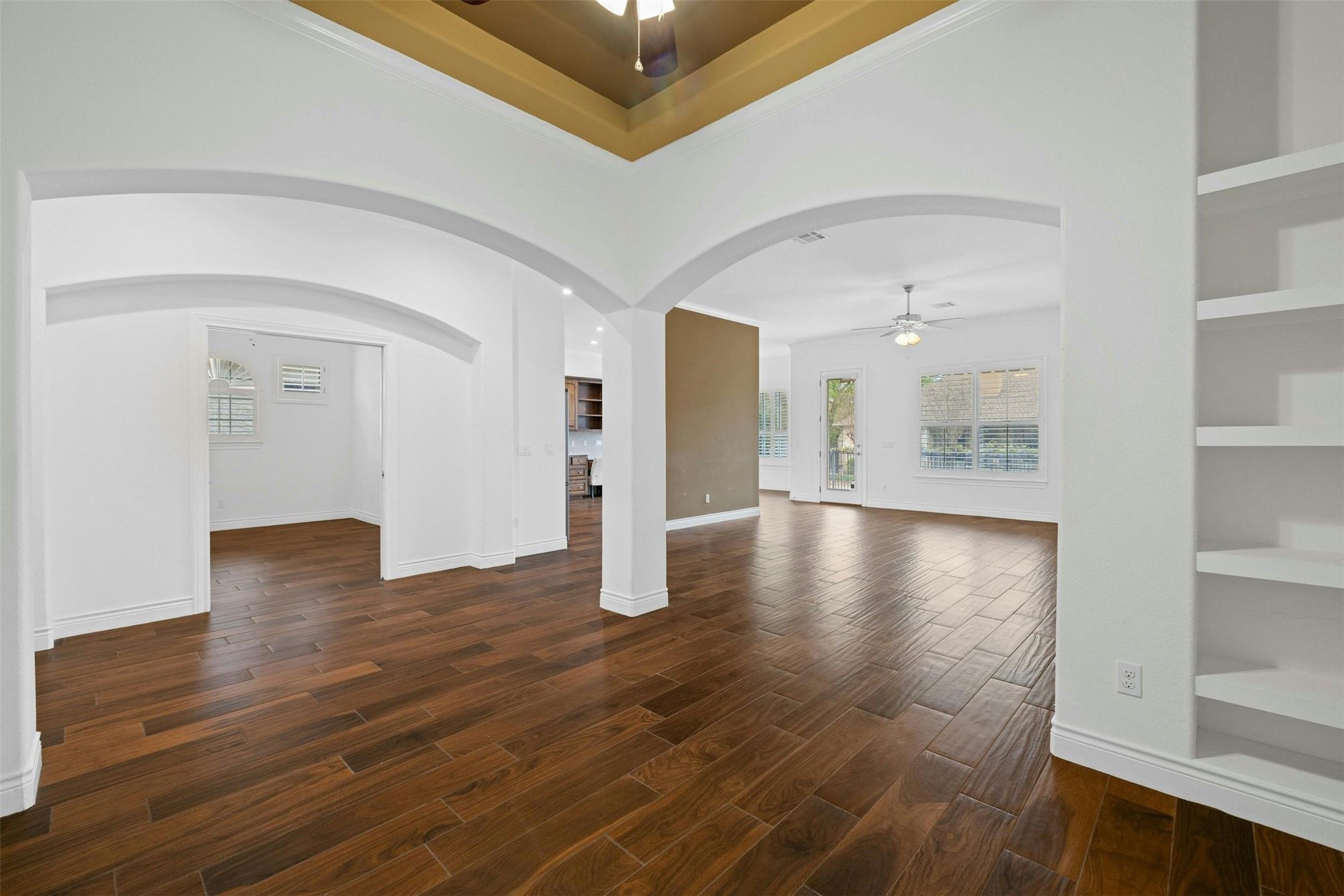 - Breakfast Bar, Tray Ceiling(s), Ceiling Fan(s), Crown Molding, Double Vanity, Entrance Foyer, Eat-in Kitchen, High Ceilings, Main Level Primary, Pantry, Recessed Lighting, Storage, Smart Thermostat, Walk-In Closet(s)