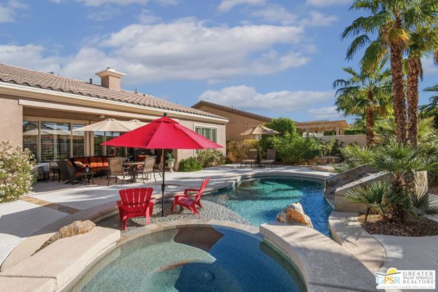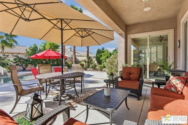 Desert resort living at its finest! This impeccably maintained, move-in ready home offers the perfect combination of comfort, style, and privacy. Featuring 2 bedrooms and 2.5 bathrooms, this Dorado model residence is ideal as a full-time home or a luxurious seasonal retreat. Step outside to your own private backyard oasis, complete with a resort-style pool and spa, a cozy fire pit, and inviting spaces designed for both relaxation and entertaining. The front courtyard is truly special offering gorgeous golf course views and stunning sunset vistas, making it the perfect place to enjoy morning coffee or unwind in the evening with a glass of wine. Inside, the home is light, bright, and beautifully cared for, with a spacious layout and a warm, inviting living room with a fireplace perfect for cooler desert nights.For those who appreciate golf course living, this home delivers the best of both worlds enjoy scenic views from the front courtyard while maintaining privacy in your backyard retreat. A rare opportunity to own a turnkey desert escape, schedule your private showing today!