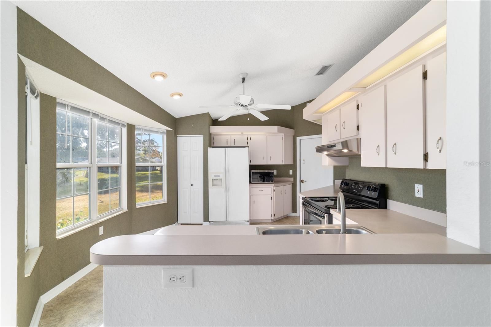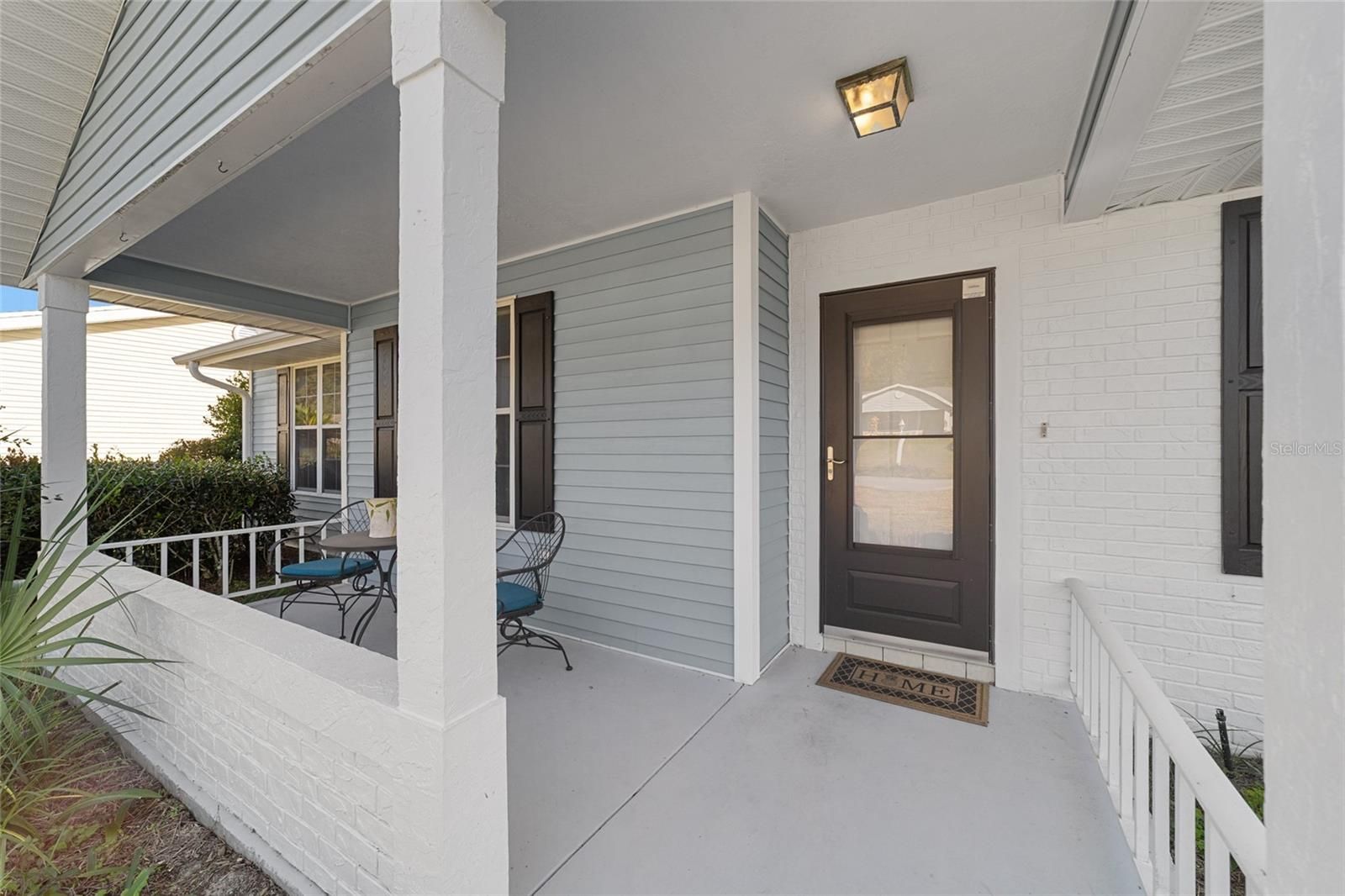 Comfortable home with NEW ROOF 2023, NEW AC 2023 and NEW Water Heater. Cozy covered front porch and enclosed back porch. Living room with high ceilings adds a feeling of a bigger home. Large dining area off of kitchen. Bright and cheery kitchen with a nice big bay window. French doors lead to a King size Master bedroom with a walk in closet and on suite bathroom with step in shower. Queen size guest bedroom and guest bath. A clean 1.5 garage for your car and golf cart. Located in one of the nicest neighborhoods in Oak Run Country Club. Community offers 6 pools, 5 hot tubs, 2 fitness centers, Restaurant, Golf Course, Dog Park, tennis, pickleball, volleyball, horseshoe, bocce and shuffleboard courts. There are plenty of clubs to join, BINGO once a week, Dances, community events, and more. Right outside the gate is WalMart, shopping, medical facilities, and restaurants. VISIT HOMES DOTCOM FOR A 3D TOUR!
