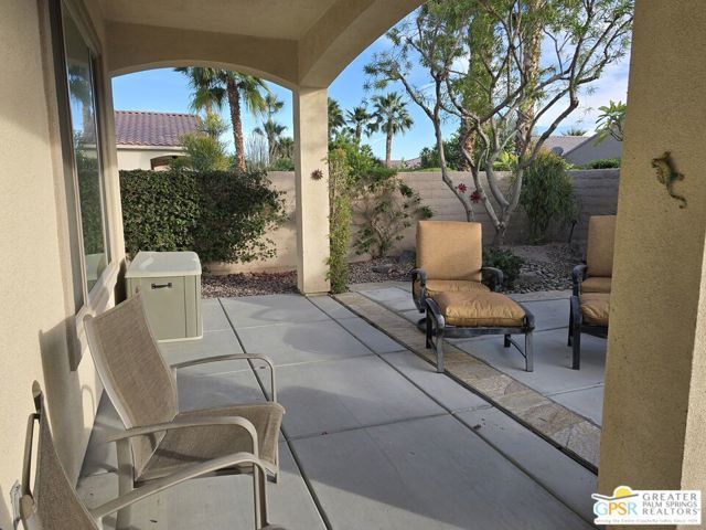 This Serrente model offers 2 bedrooms, 2 bathrooms, a den, and an open living space. The kitchen features granite countertops, abundant cabinetry, island with granite countertop, additional storage in island and stainless steel appliances. The dry bar offers built-in cabinets that offer more storage. Tile floors throughout. The primary suite features dual vanities, a walk-in shower, and a spacious walk-in closet. Custom Plantation Shutters throughout. The Den comes complete with a Murphy Bed. The rear professionally landscaped rear yard is an inviting space with a full width overhang, hardscape decking, stacked stone water feature, beautiful treetop views and interesting botanical specimens. Sun City Shadow Hills has 2 of the best Clubhouses in the desert.with 2 golf courses, 2 fitness centers, indoor/out door pools, Tennis, Pickle Ball, Bocce courts and numerous social clubs and events.