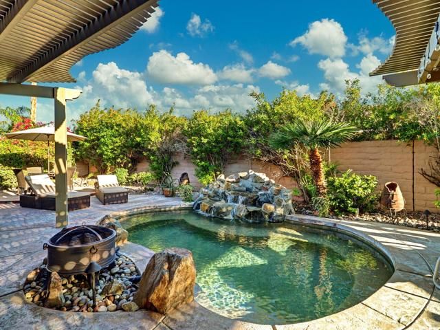 Welcome to 81597 Camino El Triunfo, a stunning El Dorado model in the desirable 55+ community of Sun City Shadow Hills. This beautifully maintained 2-bedroom, 2-bath plus den home offers an ideal blend of sophistication and desert comfort. The open-concept design features high ceilings, tile flooring, and large windows that fill the space with natural light. The gourmet kitchen includes granite countertops, stainless-steel appliances, a center island, and abundant cabinetry--perfect for entertaining. The spacious primary suite offers a luxurious bath with dual vanities, soaking tub, and walk-in closet. A versatile den provides a great space for an office or guest room. Step outside to a private backyard oasis with an extended covered patio, lush landscaping, BBQ island and tranquil sitting areas next to an inviting spool with waterfall -- ideal for relaxing or hosting friends. Enjoy resort-style living with two golf courses, fitness centers, clubhouses, pickleball, tennis, pools, and over 60 social clubs in one of the desert's premier active-adult communities. The upgrades to this property are too much to list. Please see the document folder for additional upgrade information. Call today at 760-574-2299 for showings. Use the link below for Sun City Shadow Hills development information. https://www.scshca.com