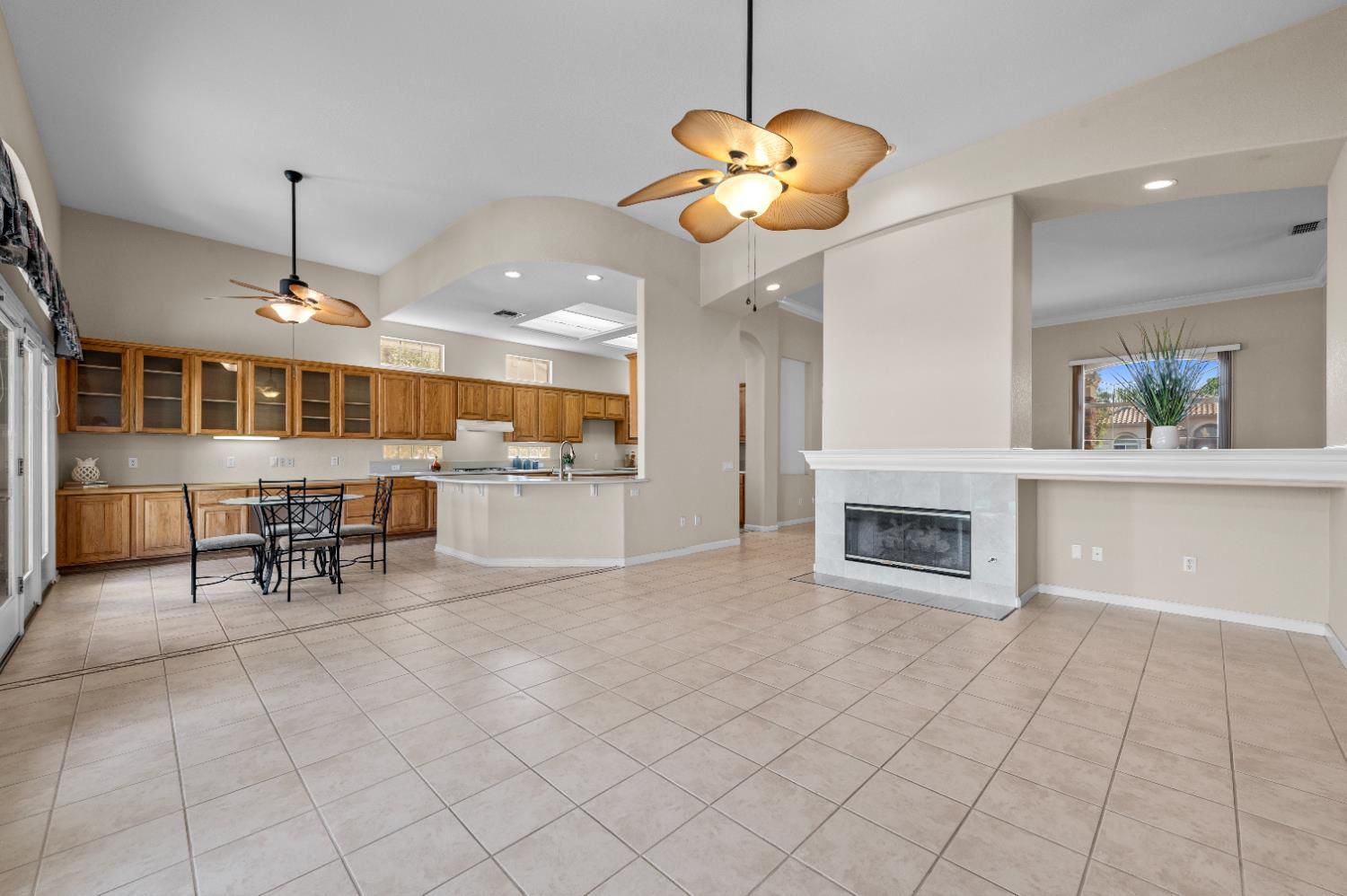 Beautiful Timberlodge model located on a quiet, peaceful cul-de-sac in the desirable Sun City Roseville 55+ Community. This home offers a serene setting with minimal traffic, perfect for relaxed living. This well-designed home features a 3-car garage, 3 bedrooms, and 2.5 bathrooms. The large kitchen is perfect for entertaining, complete with abundant cabinetry, a center island, pantry, and both a formal dining area and a cozy breakfast nook. Enjoy separate living and family rooms with soaring ceilings and a warm gas fireplace, creating an inviting atmosphere for gatherings. The expansive primary suite includes a sitting area and private outdoor access. The luxurious primary bath offers a jetted tub, separate shower, and a walk-in closet. Additional highlights include an indoor laundry room with sink and ample storage. A thoughtful layout throughout. Come enjoy the two golf courses, pools, a fitness center, a restaurant, Pickle Ball, Bocce and so much more!