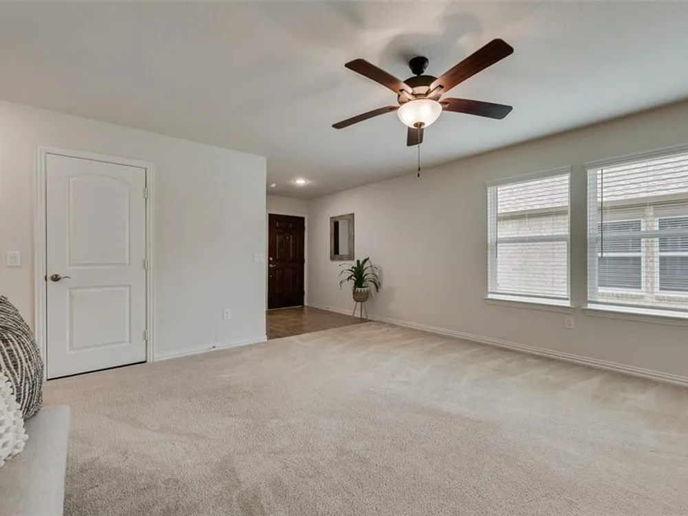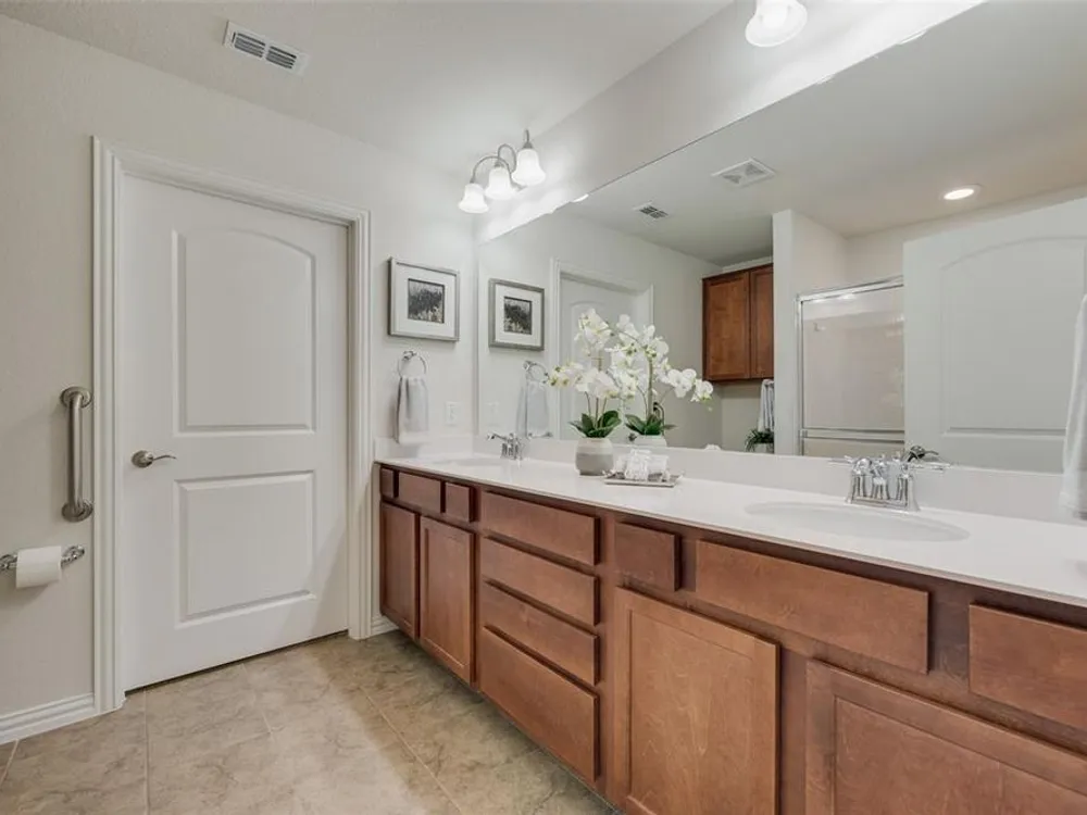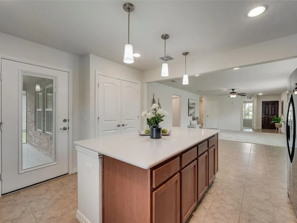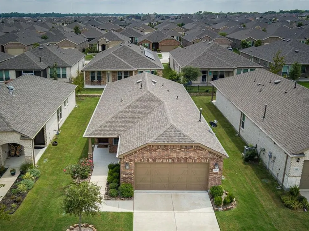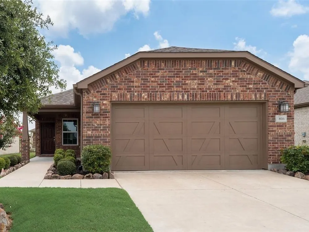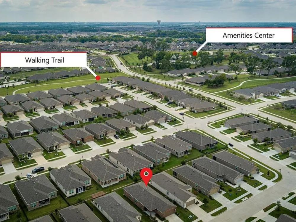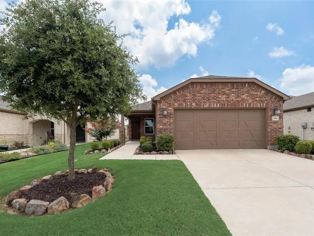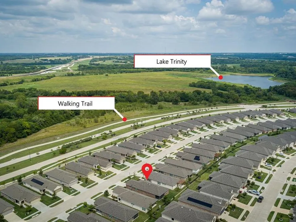 Qualifying Assumable VA Loan at 3.25 percent interest rate & 223,906 loan amount as of 8-1-2025. You will love this Del Webb 55+ adult community in Trinity Falls. This lovely single story offers a neutral decor, open popular floor plan, affordable price level & covered screened in patio. The kitchen features a huge island with seating space, abundant storage, inner cabinet pullout drawers & trash storage area, extensive quartz countertops, & pantry. The office near the front entry can also serve as a bedroom as there is a closet. The primary bedroom is tucked away towards the rear of the home for privacy. The home has energy efficient features - Lennox 16 SEER rated HVAC system, R-38 insulation in AC areas, Low E double paned vinyl windows, radiant barrier roof sheathing, Honeywell programmable thermostat. Wonderful first impression with well-groomed landscaping & covered porch. Enjoy the HOA amenities of Fitness Center, Pools, Outdoor Grill, Social Club, Dog Park, Pickleball Courts, Walking & Biking trails & ponds.