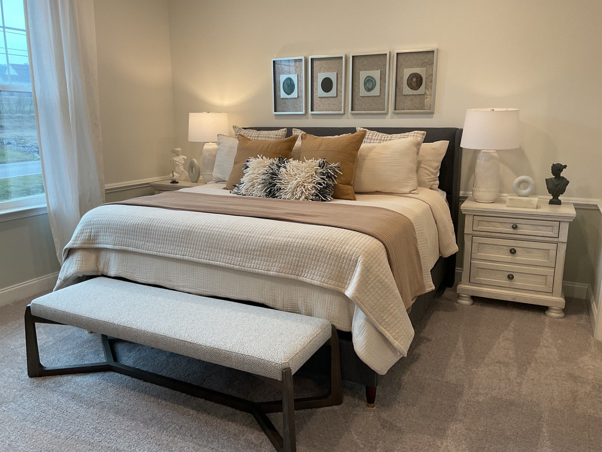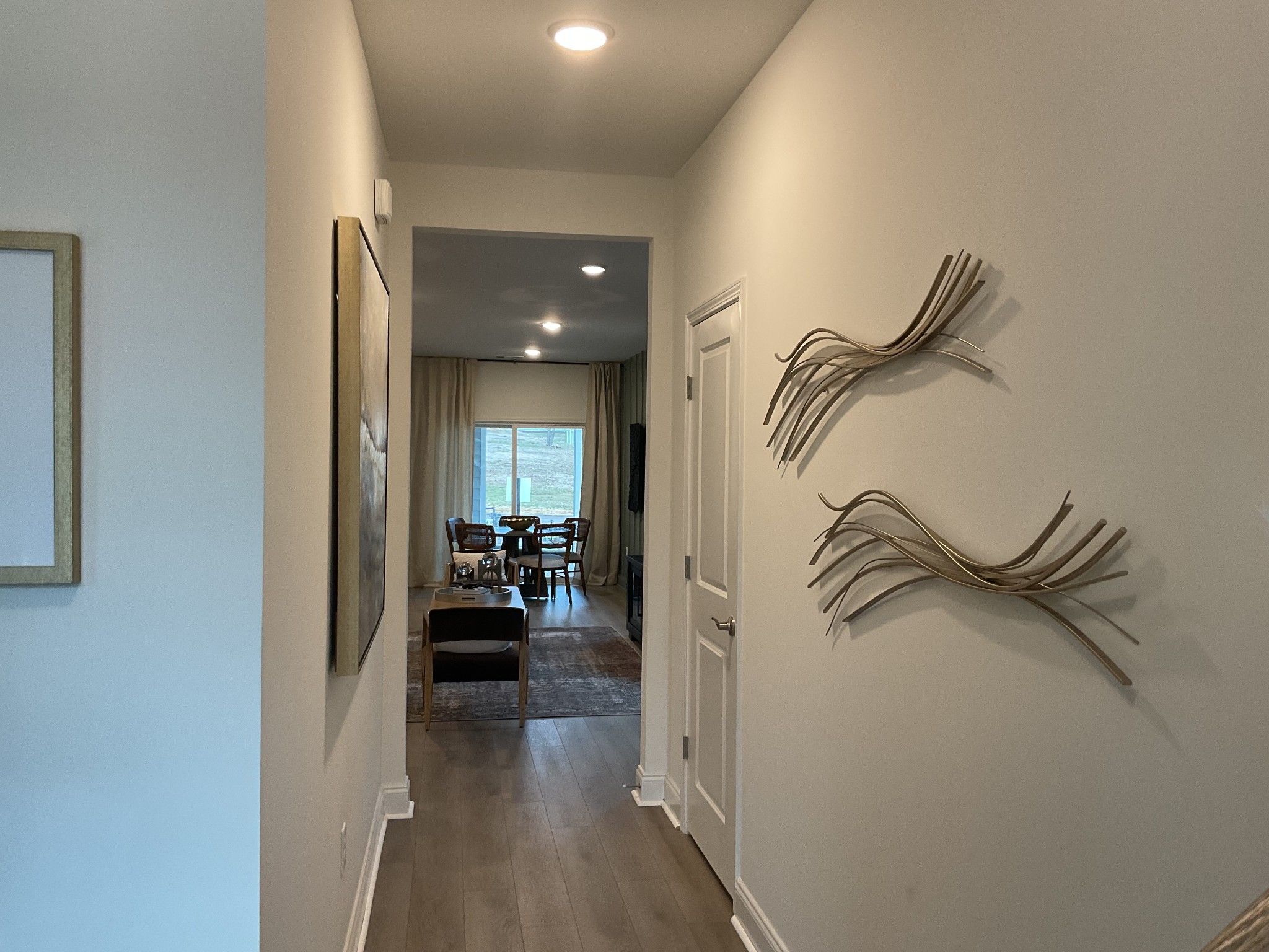 Homesite #57 - Welcome to the model home, the highly sought after Hanover!! FINAL opportunity to own a two-story townhome unit in the highly desirable Stewart's Glen, 55+ community. This exceptional townhome stands out with premium finishes of out Milan collection. A chic palette of light grey dominates the space with dashes of smooth white quartz. It has a modern feel yet is perfectly home. Designed for comfort and convenience, the two-story layout features an open-concept living area, a first-floor primary suite with private bathroom, and a secondary bedroom and bathroom perfect for guests. Upstairs, a spacious loft and oversized bedroom and full bath are versatile to enjoy as a guest room, home office, art studio, or whatever suites your lifestyle. With ample storage and a two-car garage, there's plenty of room for the things you love. Upgrades include the gourmet kitchen with a gas cook-top and double ovens, stainless steel refrigerator with French doors, passage door from primary bath to laundry room, oak tread stairs and accent walls. Enjoy the community amenity area where you can enjoy pickleball, relax on the swings, go for a walk, or picnic with neighbors and friends at the pavilion.