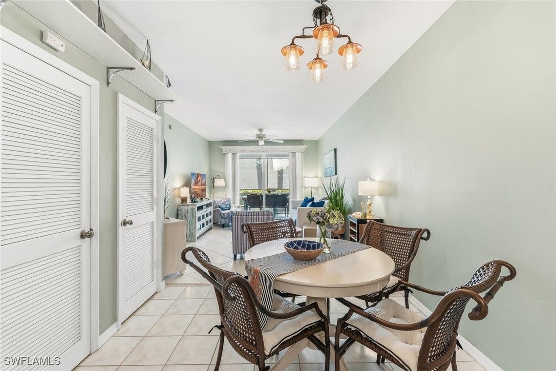 Designed for relaxed coastal living, this 2-bedroom, 2-bath condominium offers a comfortable blend of privacy, convenience, and Southwest Florida charm. With a southwestern-facing orientation, the home is perfectly positioned to enjoy glowing sunset skies and abundant natural light throughout the day. Situated within a secure, gated community, the residence provides an easy, low-maintenance lifestyle whether used as a seasonal escape or a year-round home. Tile flooring throughout keeps the space cool and practical, while the thoughtfully designed split-bedroom layout allows guests or family members their own private retreat. The primary bedroom includes a spacious walk-in closet, and the home opens to a screened lanai—an ideal spot for morning coffee or evening relaxation with views overlooking the tennis courts. A dedicated laundry area on the lanai adds everyday convenience without encroaching on interior living areas. Completing the package is assigned covered parking located just outside the unit. With beaches, shopping, and dining nearby, this condo offers an inviting opportunity to enjoy the best of the Florida lifestyle in a peaceful, well-maintained setting.