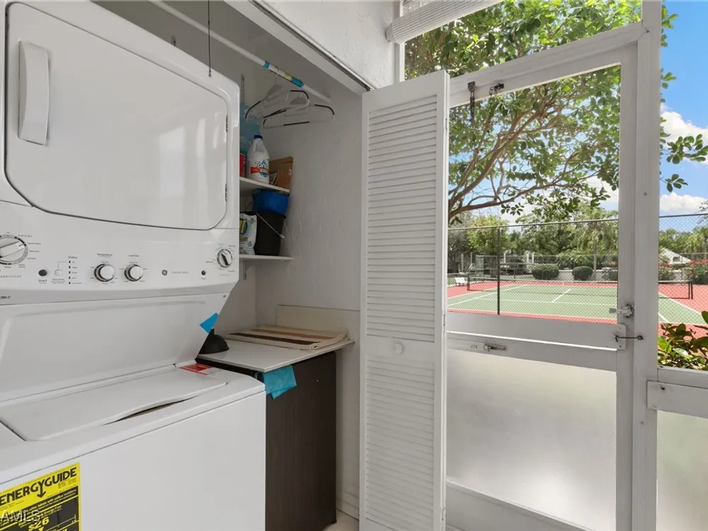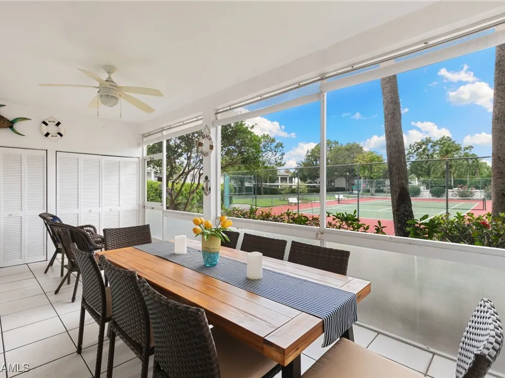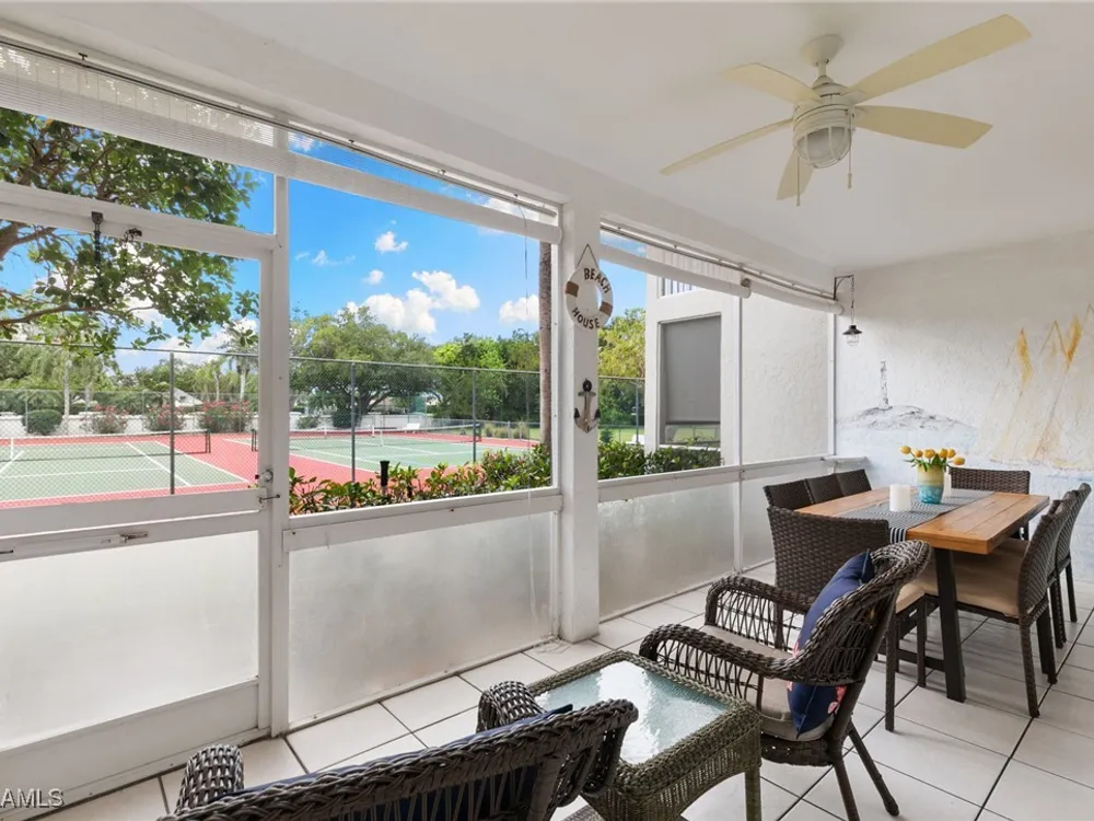 Step into effortless Florida living with this inviting 2-bedroom, 2-bath condo perfectly positioned for those golden Gulf Coast sunsets, thanks to its desirable southwestern exposure. Located in a gated community designed for peace of mind and easy living, this residence offers everything you need for a warm-weather retreat or full-time home. Inside, sleek tile floors flow throughout, offering durability and low-maintenance charm. The spacious primary suite features a generous walk-in closet, while the split bedroom layout ensures privacy for guests or visiting family. Enjoy the breeze from your screened lanai, where morning coffee comes with views of the tennis courts and space for relaxation. A private laundry area tucked into the lanai adds convenience without sacrificing indoor living space. You’ll also appreciate the assigned carport parking, just steps from your front door. Whether you're unwinding after a match on the court or heading to nearby shops, dining, and beaches, this condo delivers the Florida lifestyle you've been dreaming of.