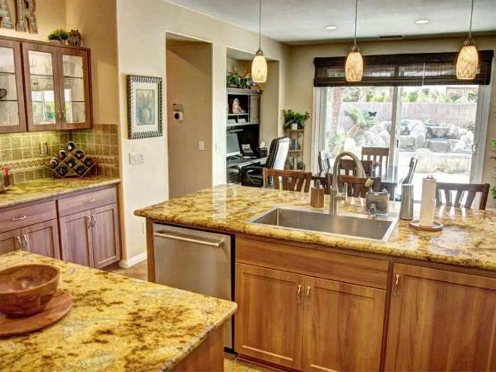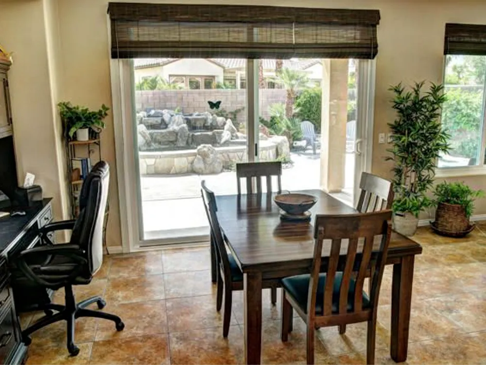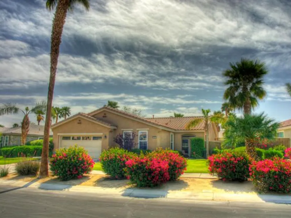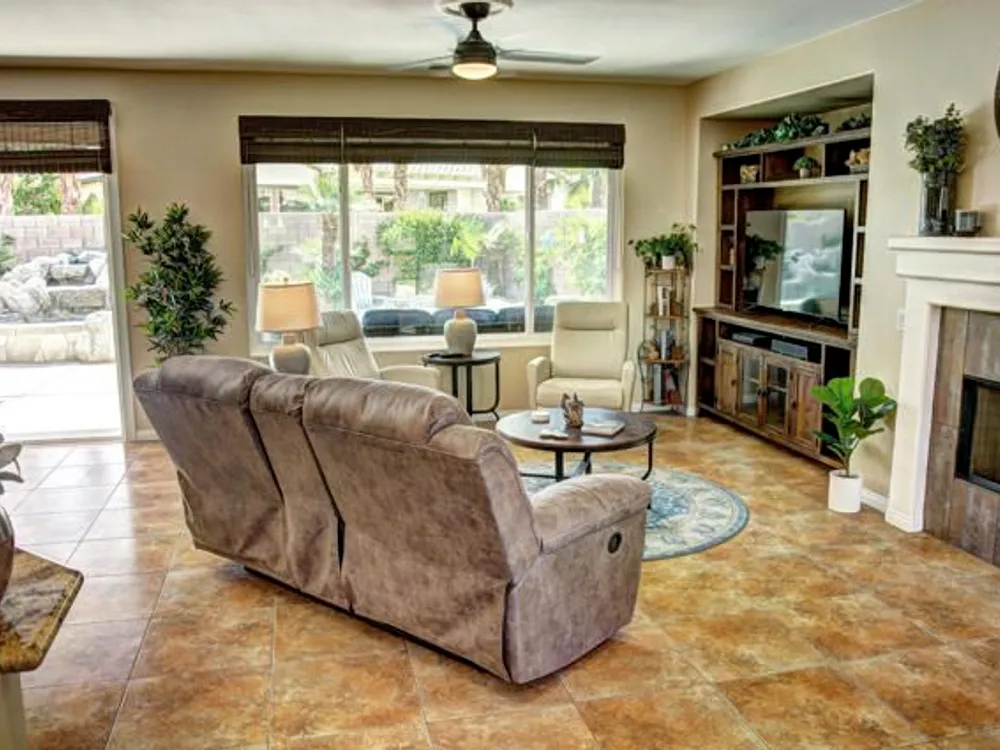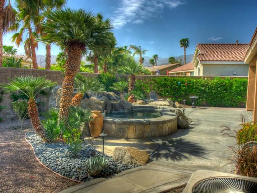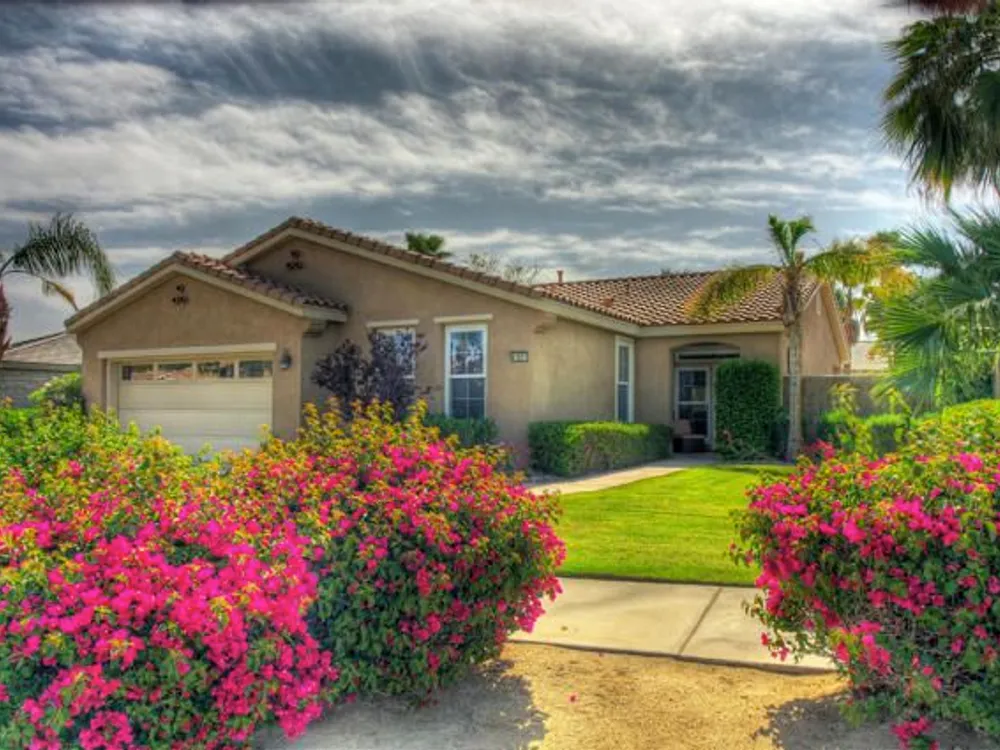 Offering the Oasis Model open floor plan within a beautiful 55+ community in Trilogy La Quinta situated at the base of the beautiful Santa Rosa mountains. This pristine home features 1551 sq ft, 2 Bdrm, 2 BA, great room with cozy fireplace and a TV media niche. The home has been totally renovated (over $63,000) within the last year with all new windows and doors, new modern cabinetry in kitchen and both bathrooms. New door handles and thresholds, new shades in hallway and guest room. Master bath has beautiful new tile shower and new counter tops and sinks. Master closet was upgraded as well. Cute Chef's kitchen comes with Kitchen Aid appliances, glass and lights in four of the kitchen cabinets,granite bull nose counters, new kitchen sink and lighting. Extended Race-deck garage flooring and Smart door garage opener, ring door-bell. Relaxing covered back patio that is beautifully landscaped with large waterfall spa. Must view this cute gem of a house and make it your own.