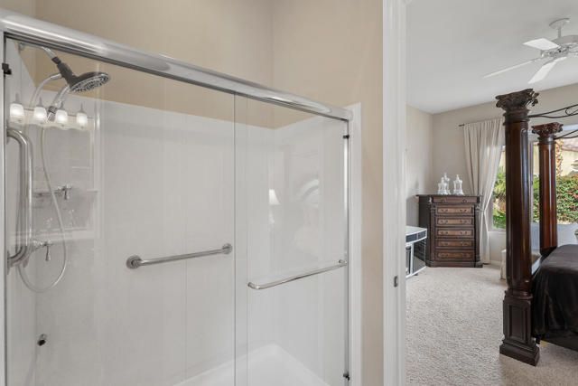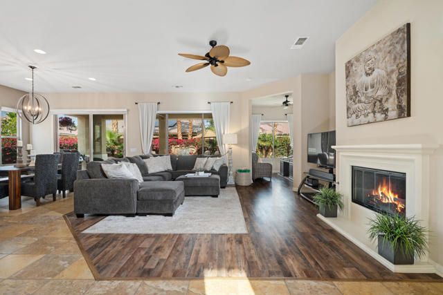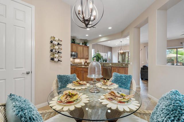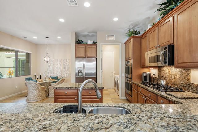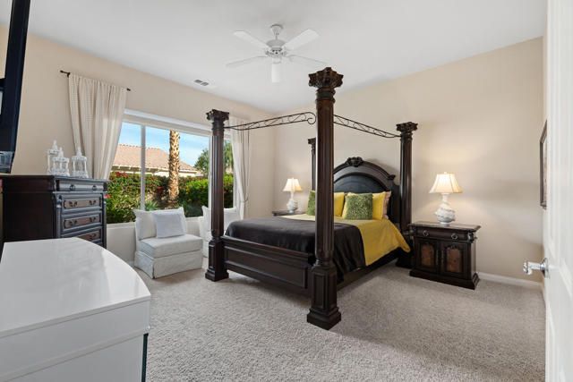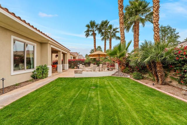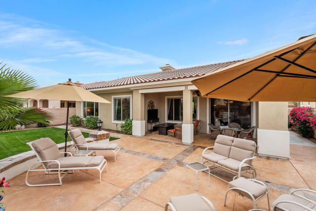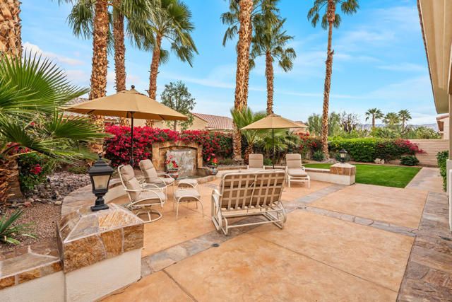 Enter your own private oasis through the iron gate into a refined desert retreat designed for both comfort and entertaining. This Sorrano model with a detached casita offers a thoughtful balance of indoor and outdoor living. The inviting courtyard, complete with optional firepit, is ideal for morning coffee or intimate gatherings, while the resort-style backyard features a cascading waterfall, dedicated dining and entertaining areas, and a generous lawn suited for leisure and games.The main residence includes three bedrooms, three bathrooms, and a bright den or office. The kitchen is well-appointed with stainless steel appliances, slab granite countertops, a central island, and a spacious breakfast area, providing flexible dining options indoors and out.The primary suite is privately situated and features a deep soaking tub, walk-in shower, and serene views of the backyard. A guest bedroom and bath are positioned at the opposite end of the hall, offering comfort and separation. Additional visitors will appreciate the casita, which includes its own bedroom, bathroom with walk-in shower, and private entrance.The home is offered unfurnished, with the option to purchase turnkey if preferred.Located within Sun City Shadow Hills, a sought-after 55+ community, residents enjoy access to two clubhouses, three pools including an indoor pool, two fitness centers, championship golf courses, and an impressive selection of recreational amenities such as pickleball, tennis, bocce, billiards, and more than 50 social clubs. A rare opportunity to enjoy gracious desert living--this home is well worth a personal visit.