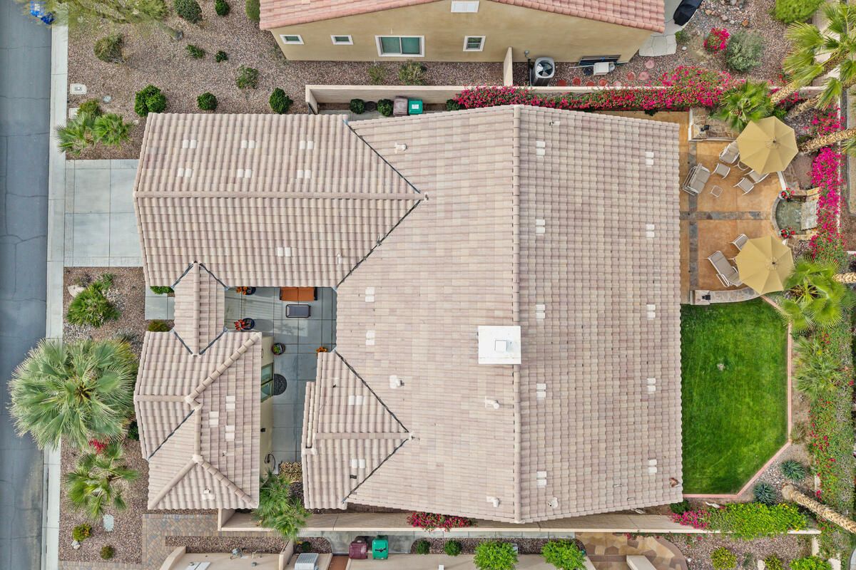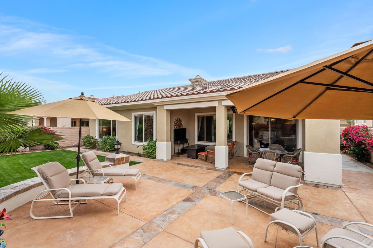 Enter your own private oasis through the iron gate into a refined desert retreat designed for both comfort and entertaining. This Sorrano model with a detached casita offers a thoughtful balance of indoor and outdoor living. The inviting courtyard, complete with a firepit, is ideal for morning coffee or intimate gatherings, while the resort-style backyard features a cascading waterfall, dedicated dining and entertaining areas, and a generous lawn suited for leisure and games. The main residence includes three bedrooms, three bathrooms, and a bright den or office. The kitchen is well-appointed with stainless steel appliances, slab granite countertops, a central island, and a spacious breakfast area, providing flexible dining options indoors and out. The primary suite is privately situated and features a deep soaking tub, walk-in shower, and serene views of the backyard. A guest bedroom and bath are positioned at the opposite end of the hall, offering comfort and separation. Additional visitors will appreciate the casita, which includes its own bedroom, bathroom with walk-in shower, and private entrance. The home is offered unfurnished, with the option to purchase turnkey if preferred. Located within Sun City Shadow Hills, a sought-after 55+ community, residents enjoy access to two clubhouses, three pools including an indoor pool, two fitness centers, championship golf courses, and an impressive selection of recreational amenities such as pickleball, tennis, bocce, billiards, and more than 50 social clubs. A rare opportunity to enjoy gracious desert living—this home is well worth a personal visit.