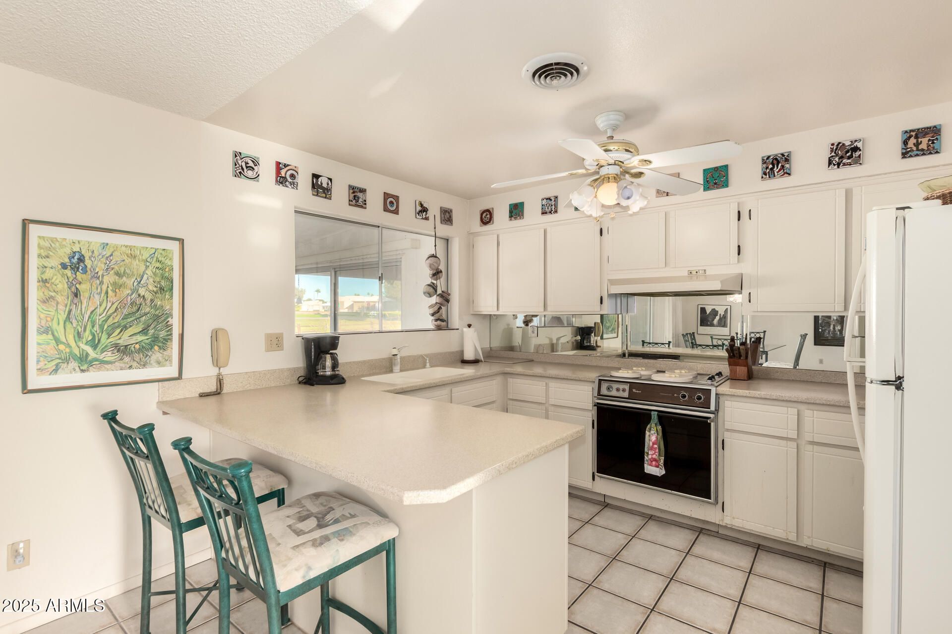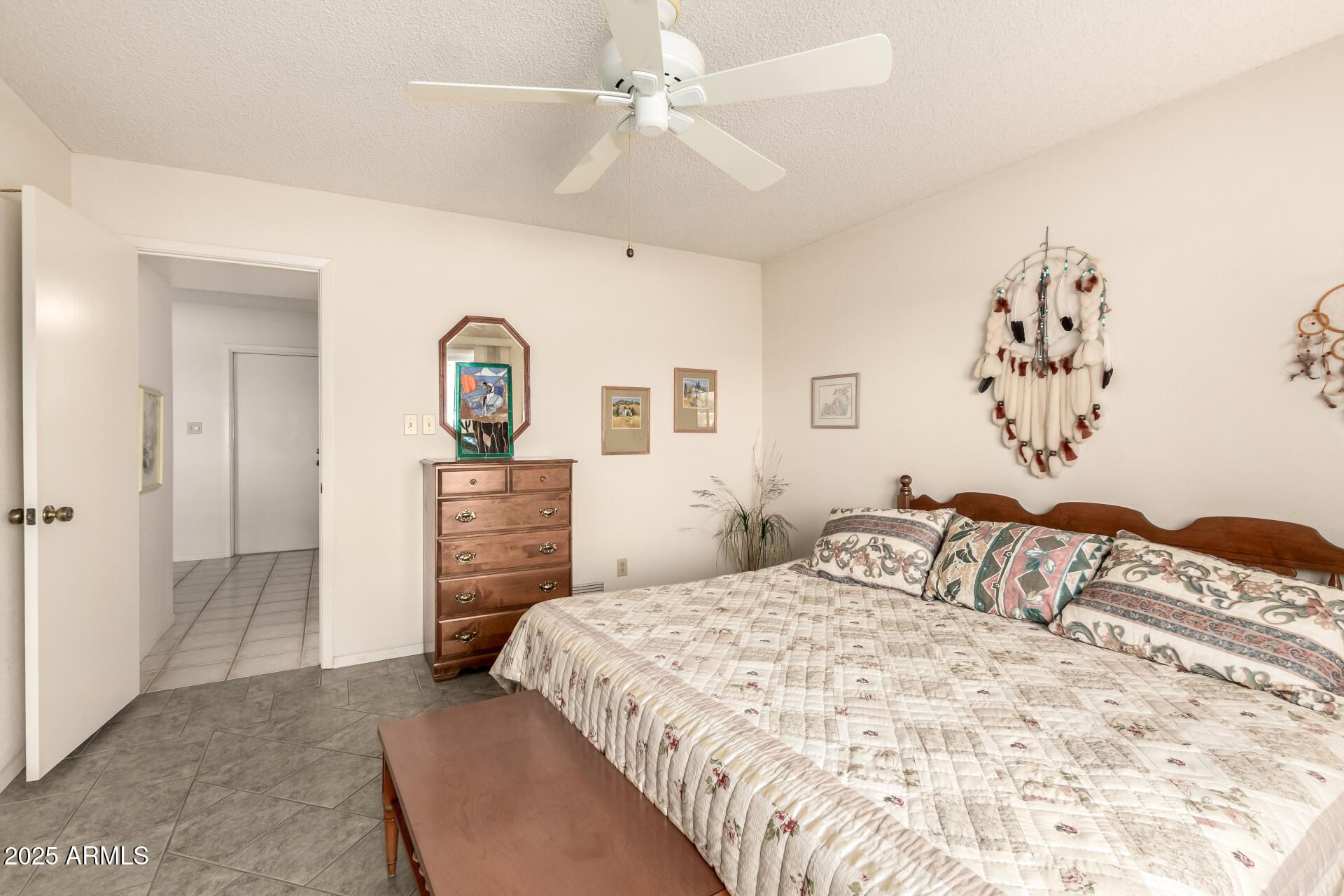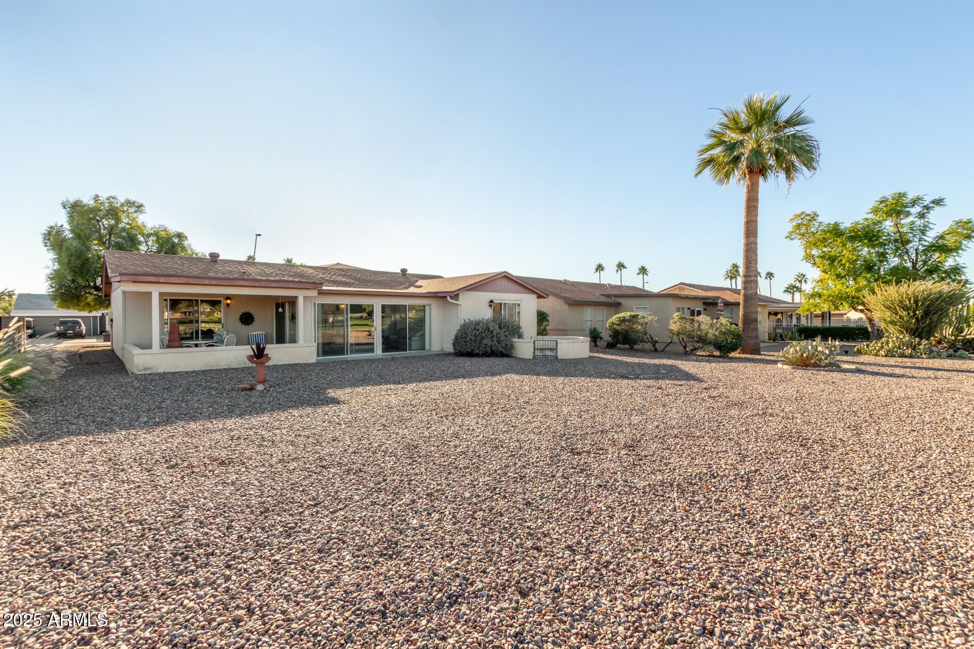 This gorgeous single-story home awaits you in the desirable 55+ community of Fountain of the Sun backing to the golf course! Discover the bright and inviting interior, showcasing tile flooring, abundant natural light, and a neutral palette, all set in a comfortable layout perfect for easy living. Whip up your signature dishes in the pristine kitchen, equipped with ample cabinetry, an inviting peninsula with a breakfast bar, and built-in essentials. The serene master hosts dual closets, and walk-in shower, and sliding doors overlooking the patio. Entertain guests in the lovely AZ room. Out back, you'll have a cozy covered patio ideal for morning coffee while admiring beautiful golf course views! Don't forget to visit the community's pool, golf, spa, lake, and other amenities for fun!