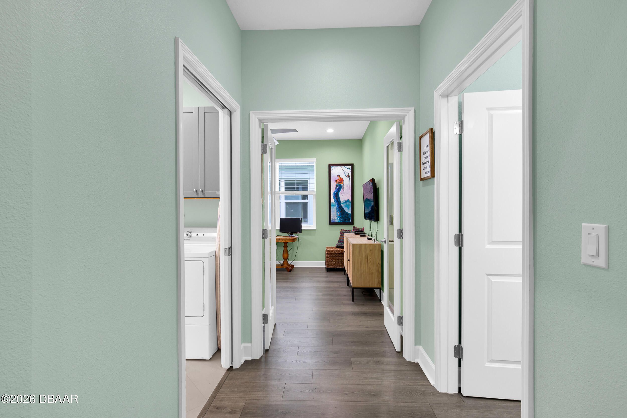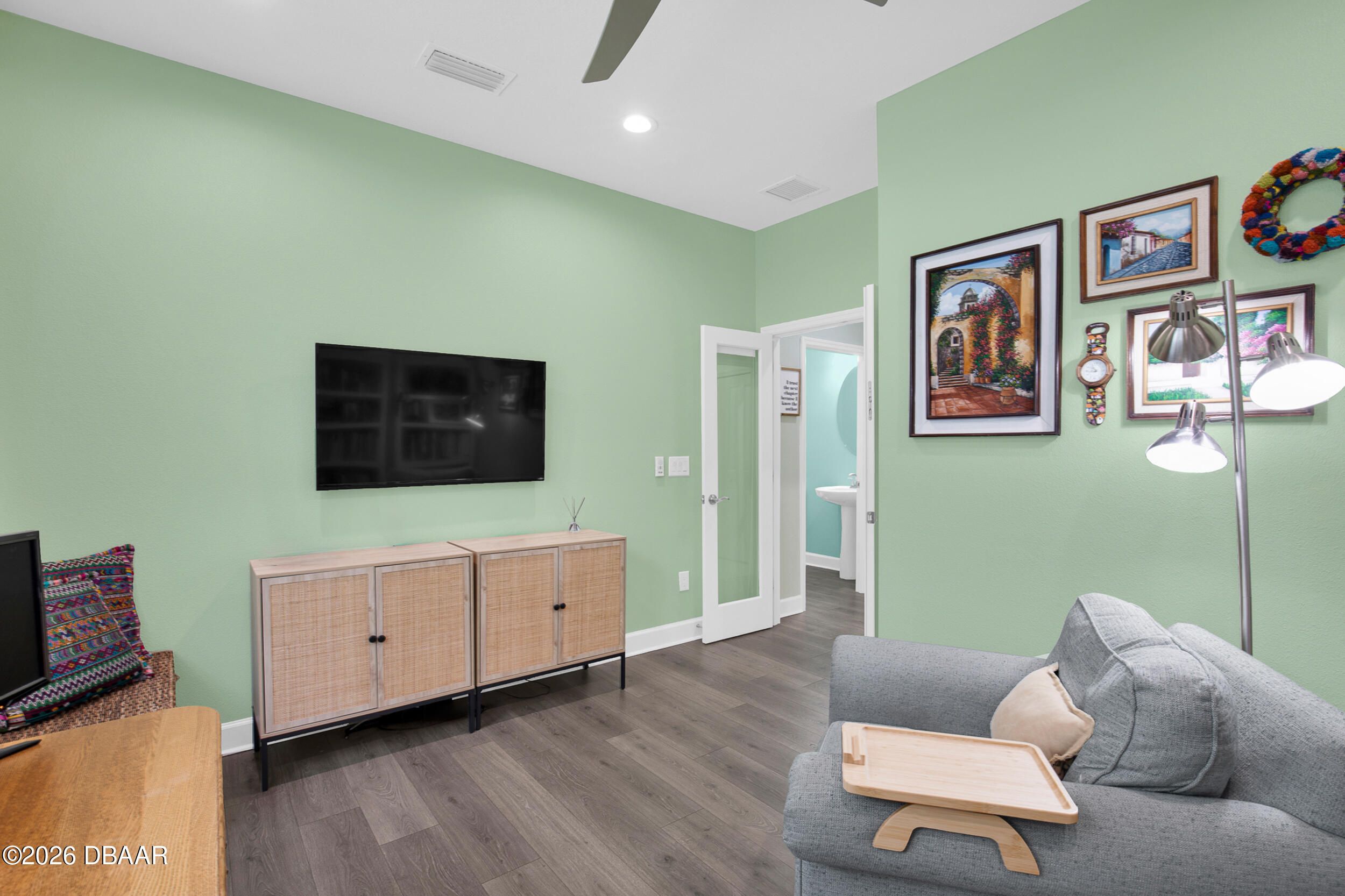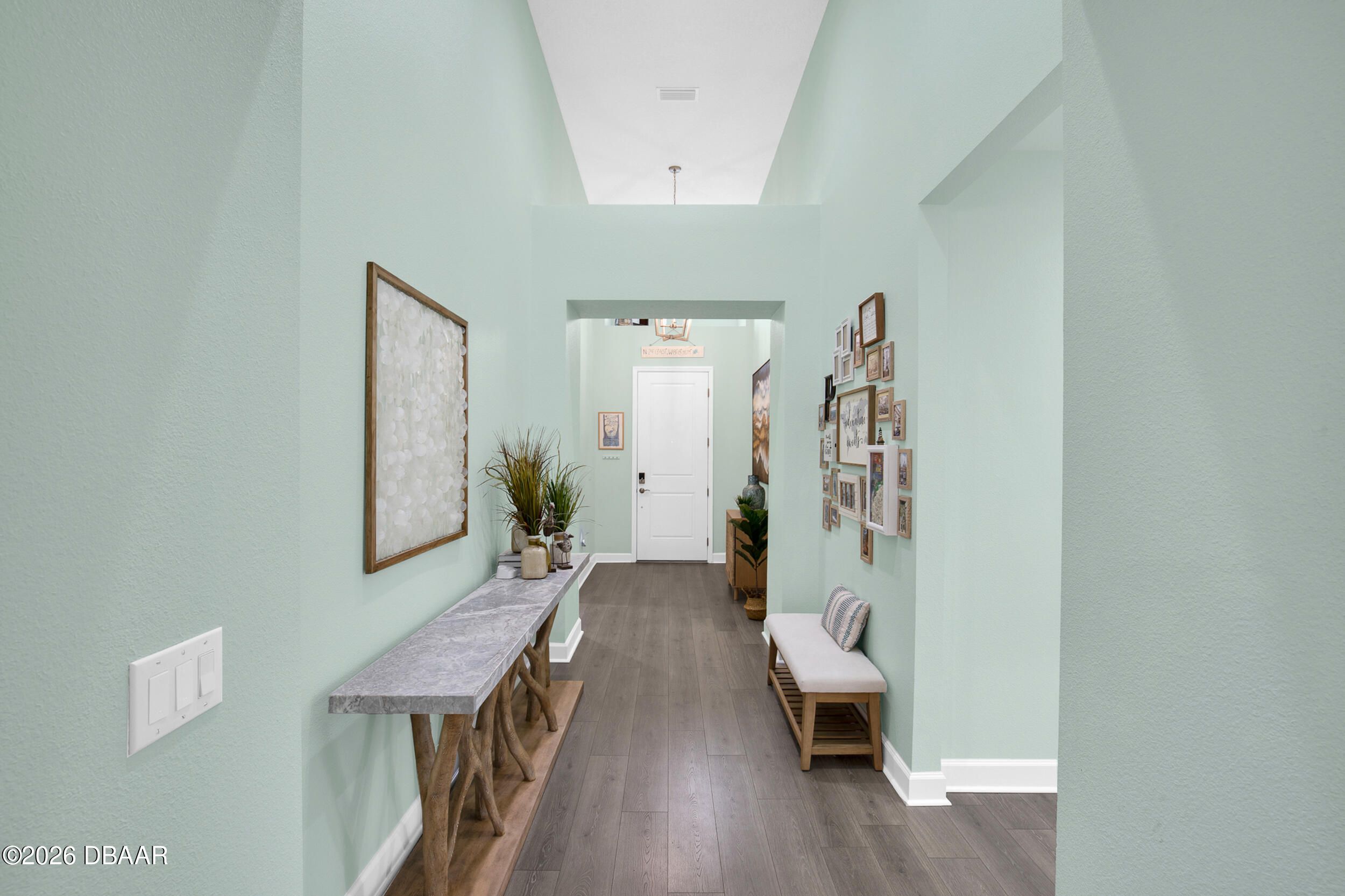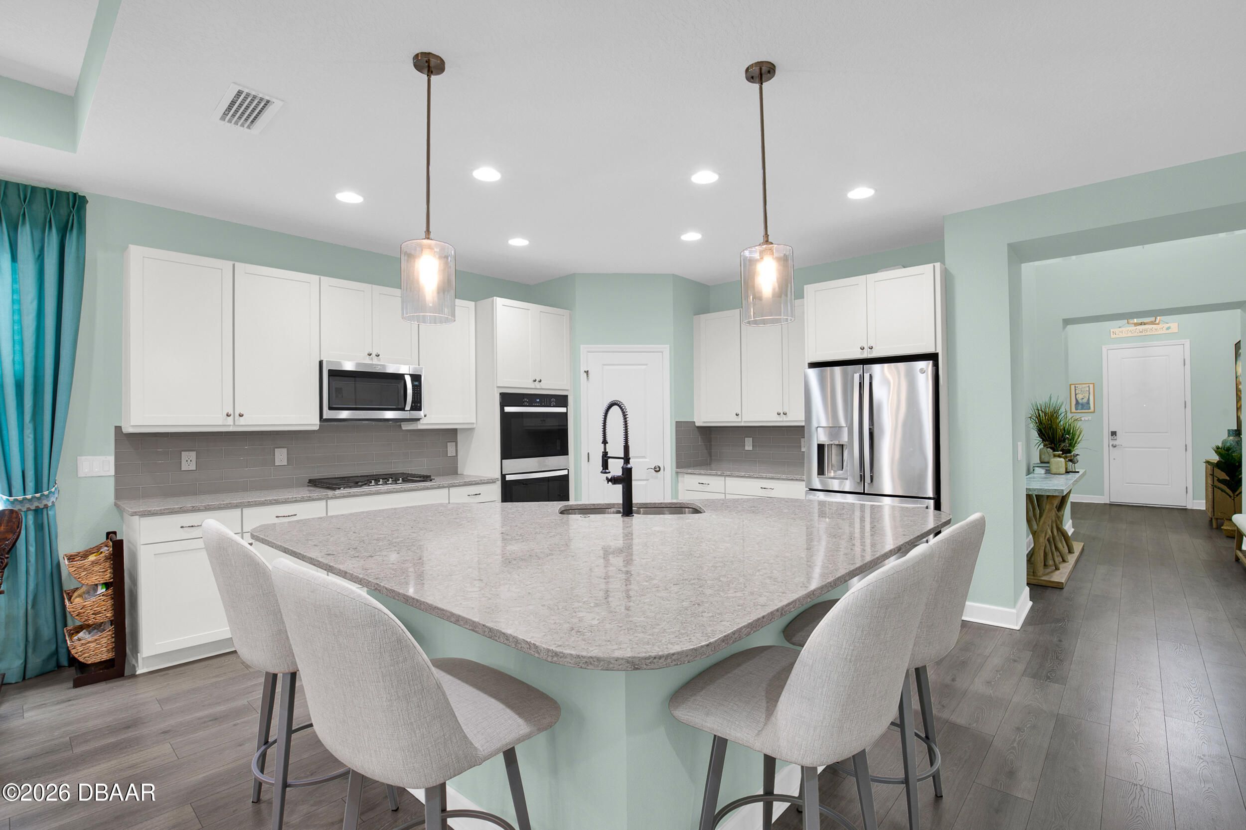 Beautiful Cabana Bay model on a premium preserve lot now available. You have to see this stunning Cabana Bay model from the Beach Collection. Nestled on a serene preserve lot, it boasts sleek quartz countertops throughout. The kitchen dazzles with soft-close Colada 42'' cabinetry, pull-out shelves, custom pendant lighting over the island, and recessed lighting throughout. The home's beachy charm is amplified by beautiful laminate plank floors. In the kitchen, you'll find a full backsplash, double sinks, double ovens, a gas cooktop, and a double trash pull-out. The primary bedroom features a beautiful bay window. Primary bathroom features double vanities, a frameless shower door and a full tile shower. There are two additional guest bedrooms, plus a versatile den with a nice window.. The guest rooms share a full bathroom, and there's a convenient half-bath as well. Finally, the screened lanai offers tranquil preserve views--it's a true retreat. The laundry room offers a convenient utility sink. There is a whole-house water filtration and a loop for a softener, and the garage has extra insulation. **Excluded Items: EV charger does not convey, Wood Storage cabinet on wall in garage does not convey and freezer in garage does not convey with sale. Latitude Margaritaville Daytona Beach is a premier 55+ private, gated community designed for active, resort-style living. Enjoy three heated pools, including a spectacular resort-style main pool, an indoor lap pool, and an outdoor sports pool. Fall in love with the exclusive PRIVATE BEACH CLUB, featuring an oceanfront pool and breathtaking coastal views. Soak up the vibe with live music every afternoon at the Bar & Chill Restaurant, or grab a bite at the lively poolside Sandbar. Stay energized at the state-of-the-art Fins Up Fitness Center, catch a show at the Mango Theater, and enjoy amenities like a dog park, pickleball, and tennis courts. Come experience this truly FINtastic community--where every day feels like a vacation.