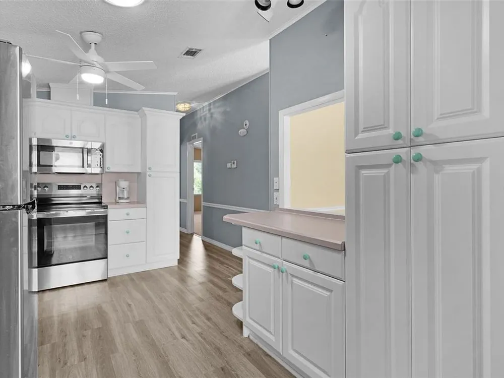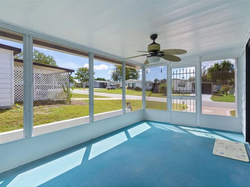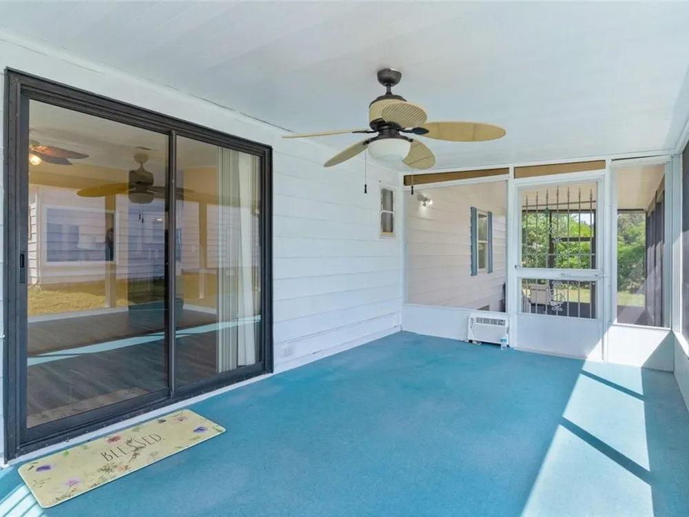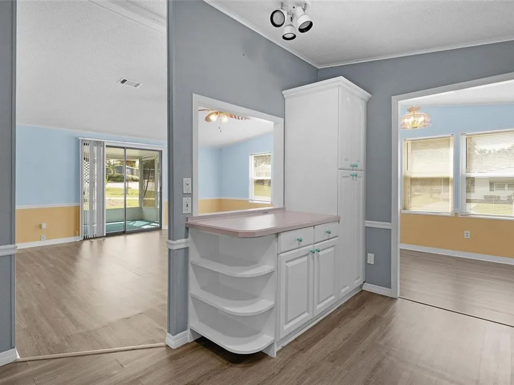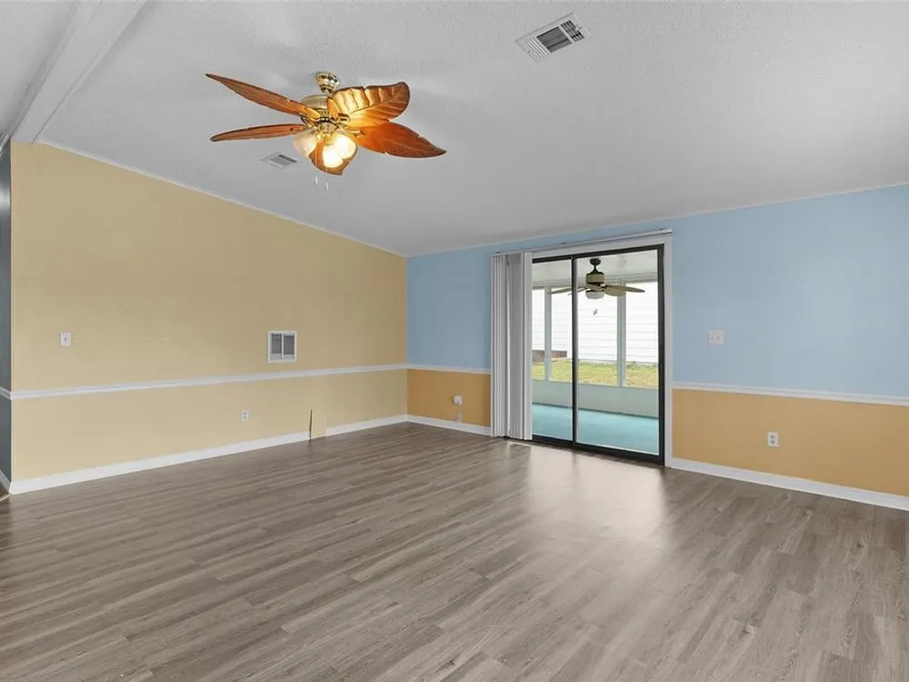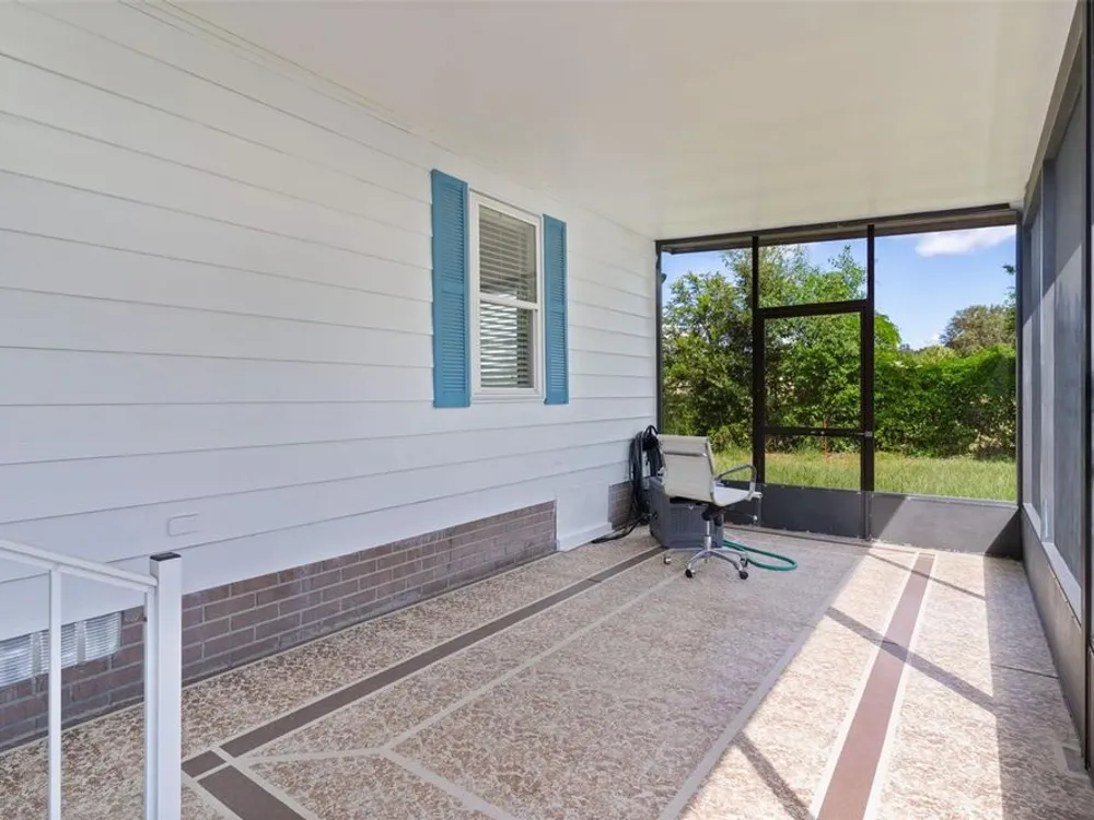 Welcome to Orange Blossom Gardens! This beautiful move in ready, 2 bedroom, 2 bathroom home, with No Bond and no rear neighbors, offers comfort, convenience and privacy. As you arrive, you’ll be greeted with dual driveways, garage and manicured lawn. The decorative painted driveways add a touch of character, while the inviting brick walkway guides you to a generous sized screened in lanai. As you step inside, from your screened lanai or front entrance from the garage, you walk into a bright and cheerful home. With high ceilings, luxury vinyl flooring and ceiling fans with decorative lighting this space creates comfort and ambiance throughout. The chair rail accents throughout add a touch of elegance. The dining area features a built-in buffet, perfected for added storage and serving space. The updated kitchen a true focal point, showcasing crisp white cabinets. stainless steel appliances, and plenty of storage. Both the primary bedroom and guest bedroom are nicely sized. The primary bedroom offers a walk in closet, private ensuite bathroom with lien closet and walk in shower. While living here you get to enjoy the best of indoor and outdoor living with two spacious screened lanai’s on the side and an open patio in the rear. This home includes a one-car garage, room for a car and golf cart, with a painted floor for a clean, finished look, along with a convent laundry area. Living in Orange Blossom Gardens mean enjoying one of the of the original Villages® communities, full of charm and history. This 55+ deed-restricted neighborhood offers a welcoming atmosphere with community recreation centers, swimming pools, and plenty of indoor or outdoor activities to keep you doing! Conveniently located near shopping, dinning, golf courses, and Spanish Springs Town Square, you’re just a golf cart ride away to enjoy The Villages® lifestyle. With a mix of affordable homes and friendly neighbors, Orange Blossom Gardens is the perfect place to live.