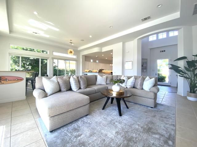 Take advantage of this rare opportunity to own a home in one of the most sought-after communities of Greg Norman! Perfectly positioned with sunny south-facing exposure, this property offers beautiful direct views of the 14th fairway and the Santa Rosa mountains! Step inside to a magnificent open floor plan designed for both comfort and entertaining. The home features 4 spacious bedrooms and 3 bathrooms, along with a large living room and dining area that flow seamlessly together. A stylish circular bar adds a unique focal point, perfect for hosting gatherings. spacious primary retreat with slider doors that lead out to the patio, large primary ensuite with dual vanity and the most serene area to enjoy a large soaking bathtub! large walk in shower & dual closets! The interior showcases trendy, chic furnishings and thoughtfully curated finishes that create a sophisticated yet welcoming atmosphere. The kitchen is equipped with s/s appliances, blending style and functionality for both everyday living and entertaining.Pride of ownership shines throughout, with numerous upgrades completed over the years, updated cabinetry paint, two new air conditioning units, a renovated pool with pool cooler and spa. The outdoor space is equally impressive, featuring a stack stone built-in BBQ and lush, mature fruit trees that create privacy for the side yard. newer water heater & patio misting system,Additional highlights include a 2-car garage with sleek epoxy flooring and a Tesla charging station, as well as a third detached golf cart garage--perfect for embracing the desert lifestyle and nearby golf amenities.This home truly has it all, location, design, upgrades, and exceptional indoor-outdoor living. Home is being offered furnished per inventory! Also ask about PGA West membership opportunity such as social, sports and golf!