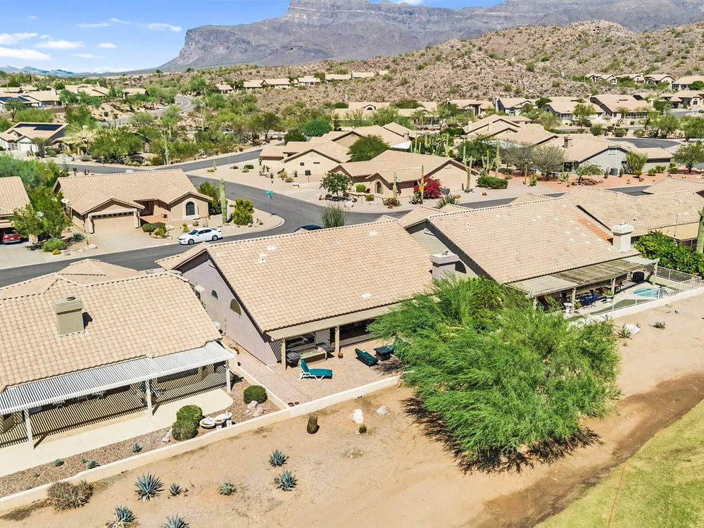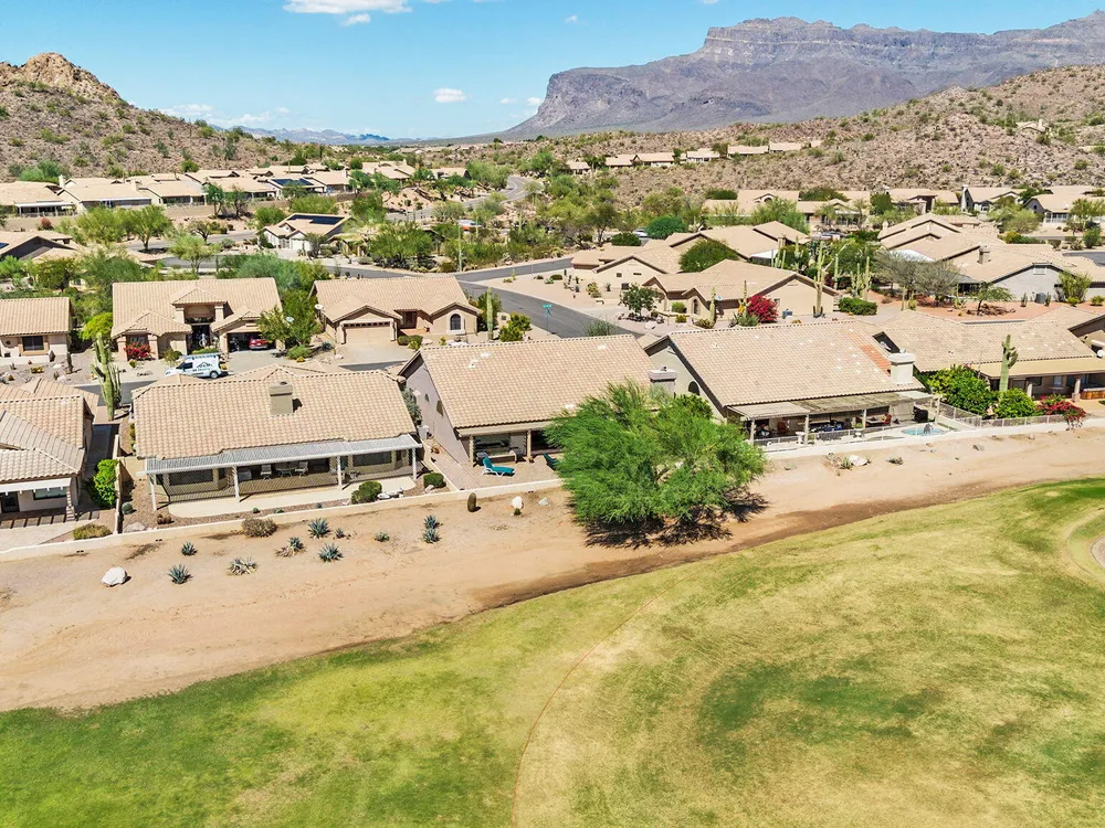 Welcome to your TURN KEY dream retreat in the heart of Gold Canyon's 55+ community of Mountainbrook! This beautifully updated home is perfectly positioned on the fairway, offering views of Dinosaur Mountain right from your backyard oasis. Step inside to find an elegantly remodeled kitchen featuring high-end cabinetry with convenient PULL OUT shelves, sleek countertops, and modern appliances — perfect for both everyday living and entertaining. The primary suite boasts updated bathroom with WALK IN SHOWER, custom pull-out storage, and your very own DRY SAUNA for a spa-like experience at home. Out back, unwind in your private HOT TUB while soaking in mountain and golf course views. Anderson windows, instant hot water, 2.5 car TANDEM GARAGE, the list goes on!