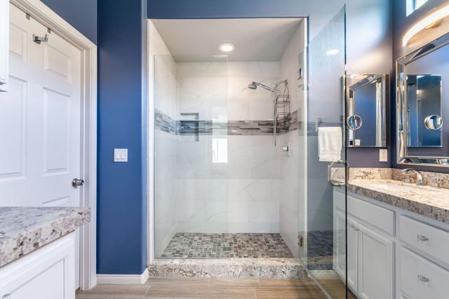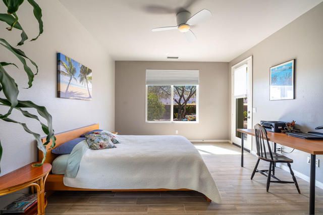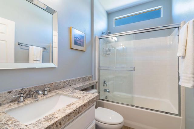 Fabulously updated 2d/2ba Maurea floor plan in the 55+ golf resort community of Trilogy La Quinta. Enjoy the south and west glorious views of the Santa Rosa mountains from almost every room in the house. The great room living space includes plank style flooring, crown molding, sliding door to the patio and large wall of windows. Granite countertops, white cabinetry and stainless appliances accent the kitchen. Living area is colorful with an entertainment niche enhanced with shiplap siding and recessed lighting. The generous size primary bedroom has a door to the patio, dual vanities in the bath, step in shower, wardrobe closet and a walk-in closet. Guest bedroom has a comfortable vibe, too. Best of all, there is a new AC and newer hot water heater, separate laundry room, epoxy garage floor with plenty of room for storage. Trilogy La Quinta HOA provides front yard landscape and maintenance, cable and internet, PLUS access to all of the clubhouse amenities. The newly renovated golf course is a player's dream and residents receive special pricing!!