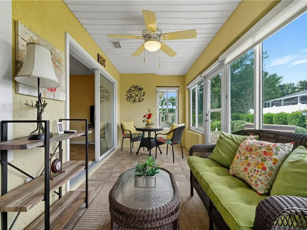 OFFERED FULLY FURNISHED! Welcome home to this beautifully cared-for gem in the highly sought-after Indigo East community of On Top of the World! From the moment you pull up, the curb appeal will win you over with fresh exterior paint (2023) and a welcoming vibe that sets the tone for what’s inside. Step through the door and you’ll instantly notice the easy-flow split floor plan with nearly 1,600 sq. ft. of light and bright living space — no carpet in sight!? The heart of the home is the open kitchen, complete with a stylish backsplash (2019) that perfectly complements the airy feel. A sunny Florida room offers the perfect spot to sip your morning coffee or unwind in the evenings while overlooking the lush backyard and butterfly garden — a true sunset retreat.? This move-in ready home checks all the boxes with big-ticket updates already taken care of: roof (2021), AC (2014), hot water heater (2024), and solar shades (2022). Other highlights include an irrigation system, washer & dryer, and a tiled Florida room that adds even more flexible living space.? With 3 bedrooms, 2 full baths, and a layout designed for comfort and privacy, this property is perfect for everyday living or entertaining family and friends. Please note, the neighborhood does have a CDD.? Indigo East offers that true “Florida lifestyle” you’ve been dreaming of — now all that’s missing is you!