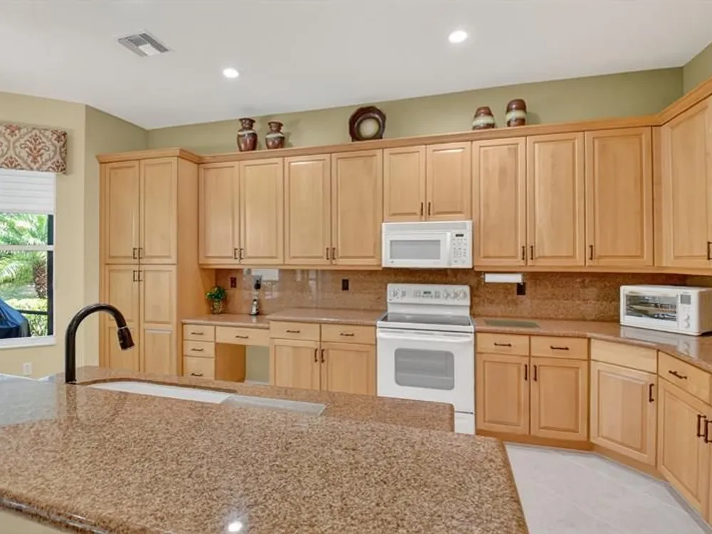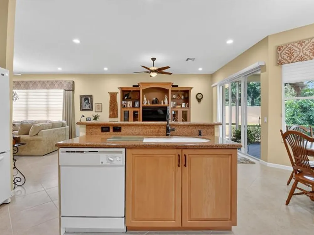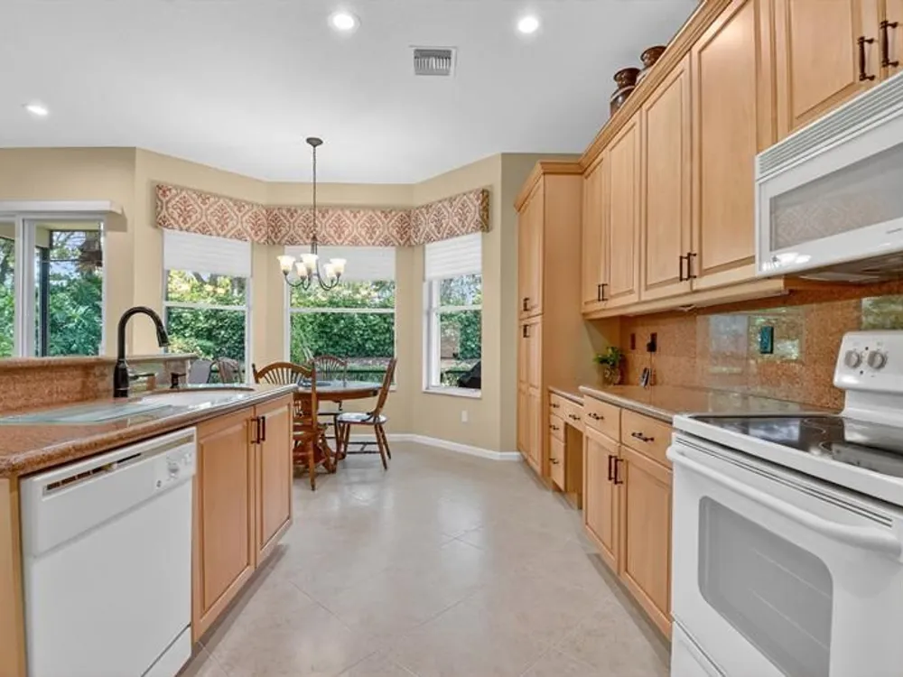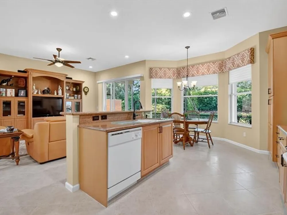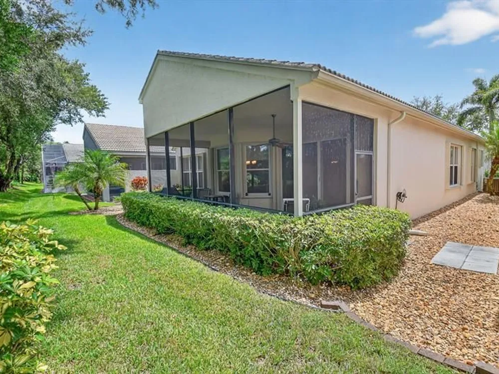 OPEN CONCEPT living with the wall down reflects today’s design trends. The kitchen features pristine wood cabinets*granite counters & backsplash*spacious island w/undermount sink*Neutral tile floors that look brand new & add to the fresh modern feel. This 3/2 home (1 BR used as a den) is impeccably maintained & includes accordion shutters*gutters & elegant etched glass details. Step out to your screened lanai & enjoy the peaceful landscaped private garden view. Truly move-in ready! Valencia Shores has everything you could want! State of the Art fitness*2 resort style pools*resistance pool*whirlpools*all sports-racquetball* bocce*pickleball*tennis*sauna & steam rms*hair/nail salon*CAFE & 40+ clubs for all interests! You have found it all*Luxury*comfort*security & fun at this 55+ community!