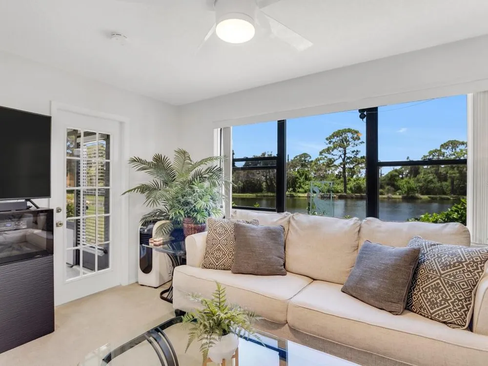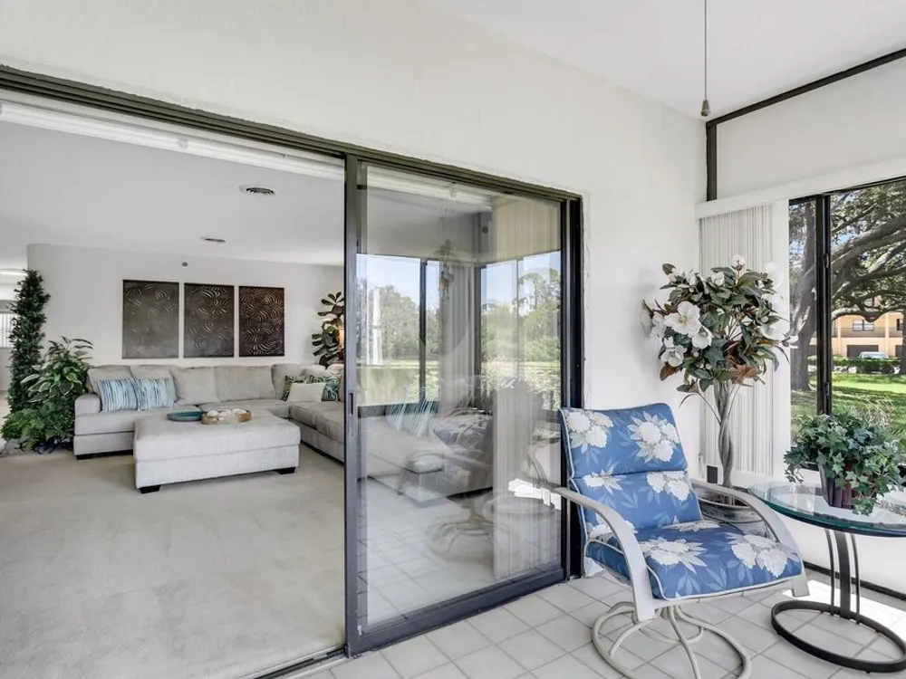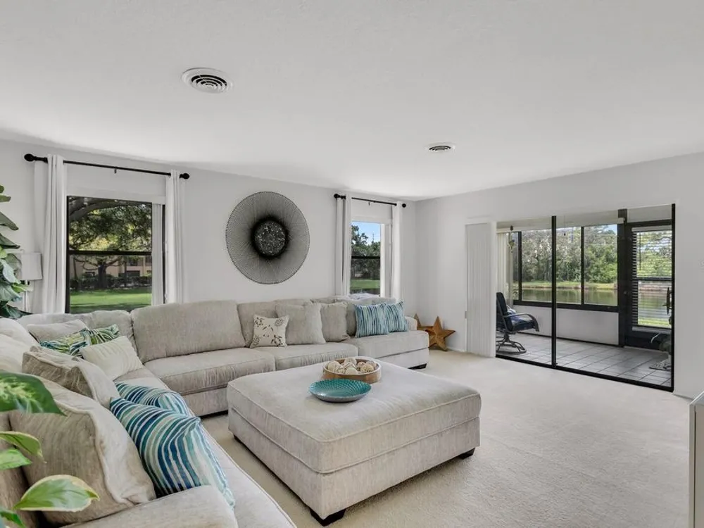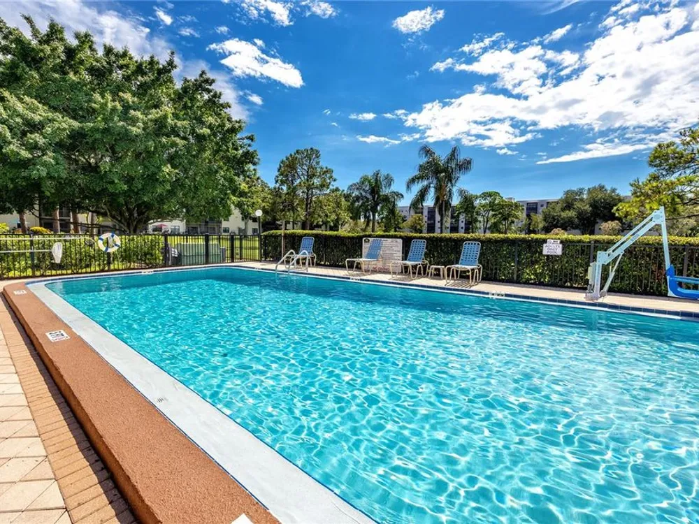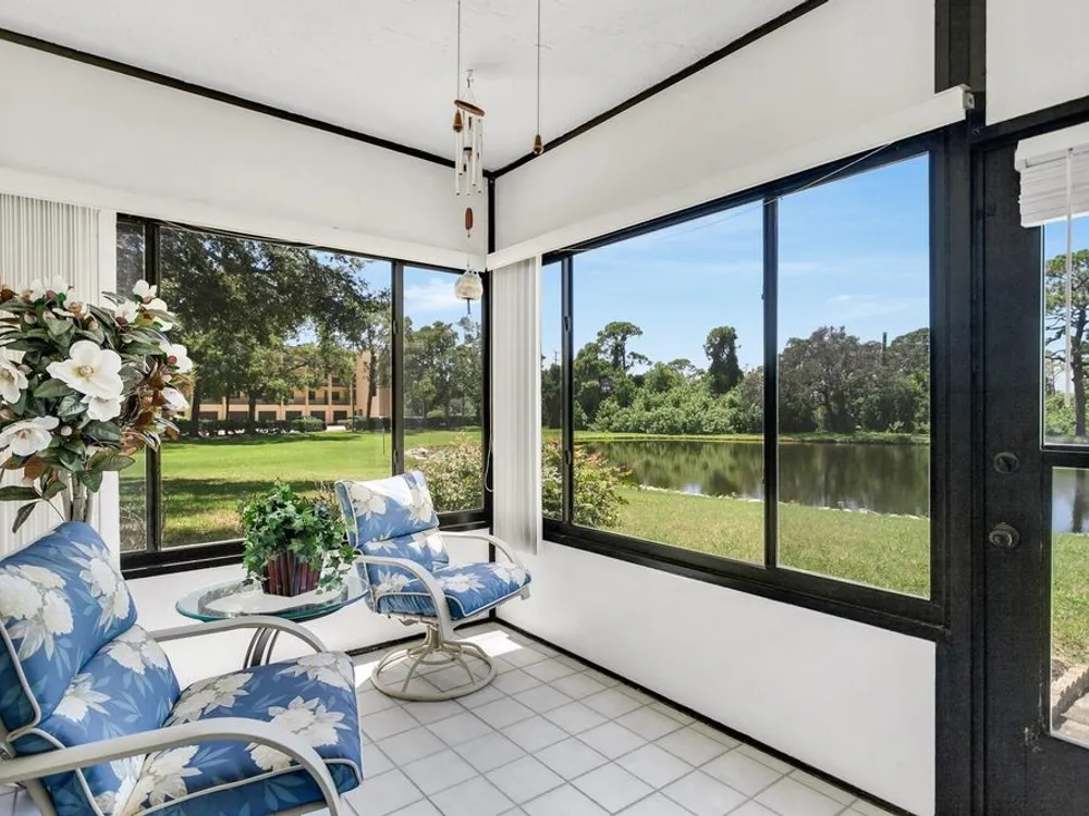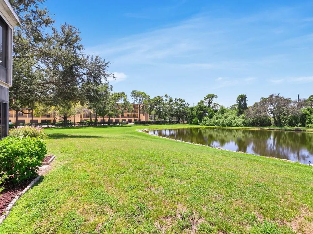 Don't Miss Out!! This is not your average condo – it’s a rare villa-style END UNIT with exceptional privacy, accessibility, and beauty. This FIRST FLOOR 2-bedroom, 2-bath WATERVIEW condo offers the comfort and feel of a villa, with plenty of room to accommodate guests. Owned by the same family since it was built and NEVER RENTED OUT, it has been meticulously cared for and filled with thoughtful details and an inviting layout. Enjoy the ease of DIRECT ACCESS FROM YOUR ASSIGNED CARPORT TO THE FRONT DOOR, the wheelchair assessable ramp allowing effortless entry with groceries and packages. A large foyer welcomes you into the home, leading to a formal dining room with mirrored wall and a spacious family room with tranquil pond views. The bright kitchen features white cabinets, a double sink, breakfast bar, closet pantry, and space for a petite table. Off the kitchen, a waterfront Florida room overlooks the serene pond and opens via a French door, to the BACK SCREENED PATIO—ideal as a four-season retreat. The primary suite boasts a WALK-IN CLOSET, private access to the FRONT PORCH, and en suite bath with a dressing area, shower stall and separate tub. The second bedroom offers a full-wall closet, and the hall bath includes a tub/shower combo. The laundry room with ample cabinetry and a laundry tub adds convenience. The front porch opens to the parking lot for easy entry and doubles as an extra storage space. This eliminates the need for stairs or an elevator, and a convenient wheelchair accessible ramp is also provided. Other perks include: NEW A/C in '25 as well as NEW interior paint, ceiling fans and lighting throughout. This home CAN BE SOLD FURNISHED, ready for you to move right in! Located in a 55+ community offering RESORT STYLE AMENITIES, including 6 pools (5 heated), tennis and pickleball courts, walking trails, fitness center, billiard room, and multiple community centers. High Speed Internet and Cable with streaming channels (HBO Max, Paramount, Peacock Premium, AMC+, Disney + HULU, Tennis Channel) are all included! This well maintained community is located minutes from the intercoastal and 15 minutes to Redington Beach, Madeira Beach, and Treasure Island.
