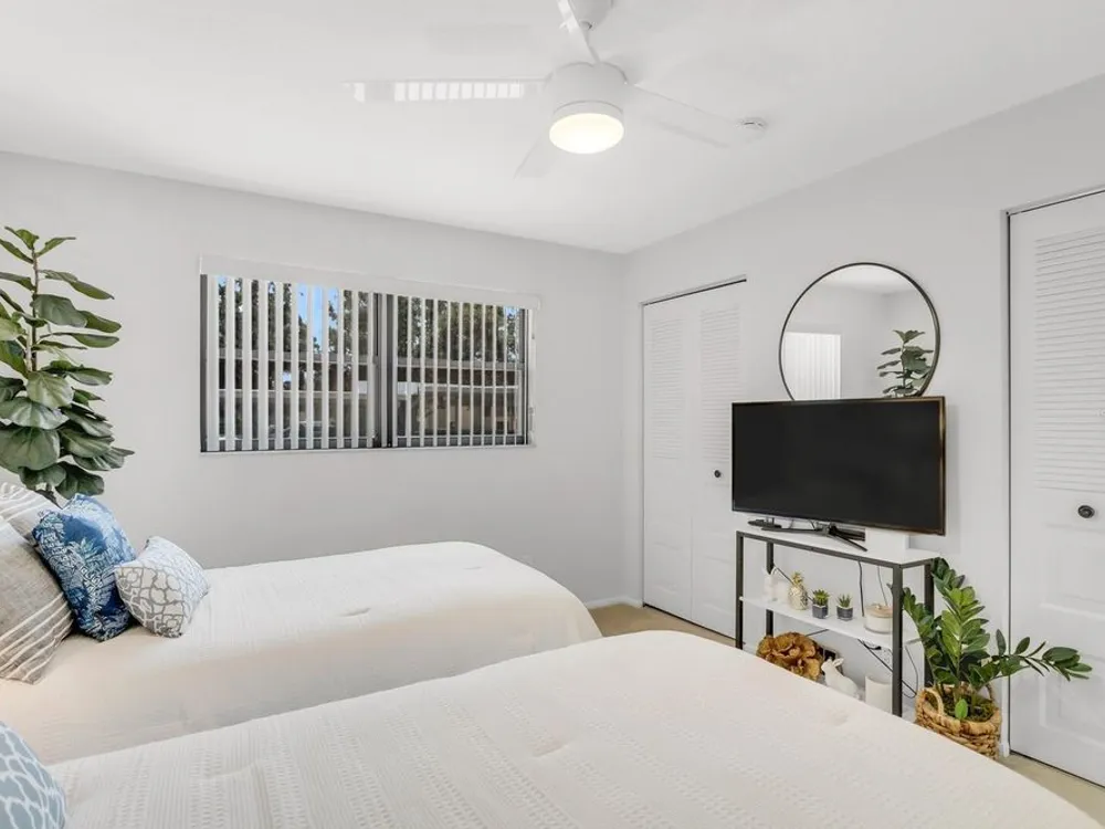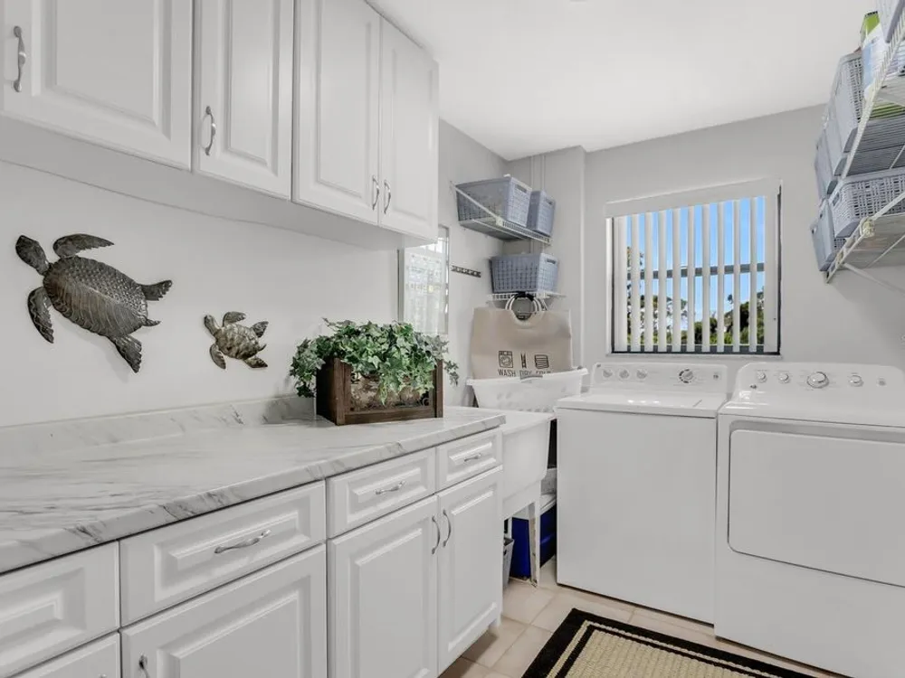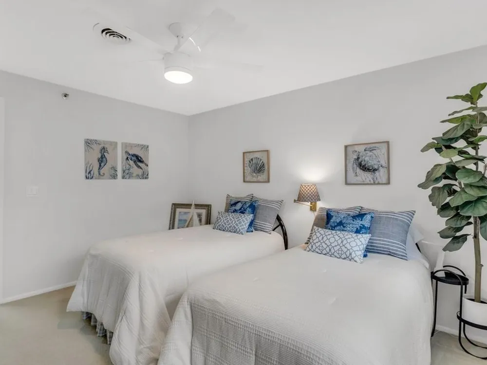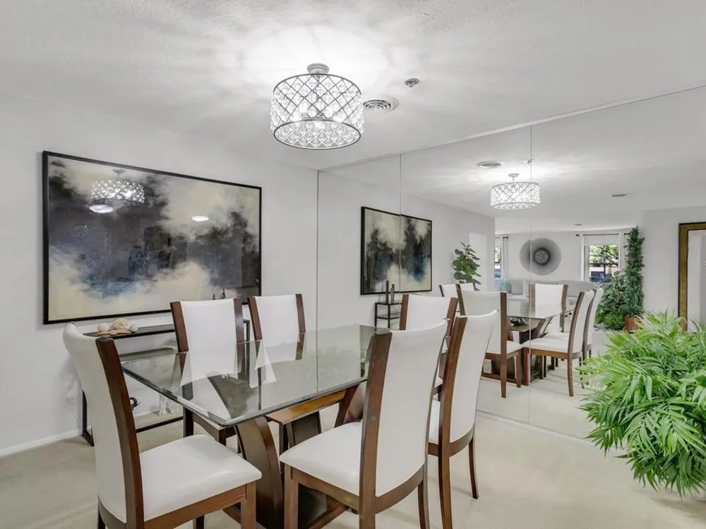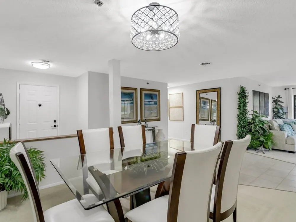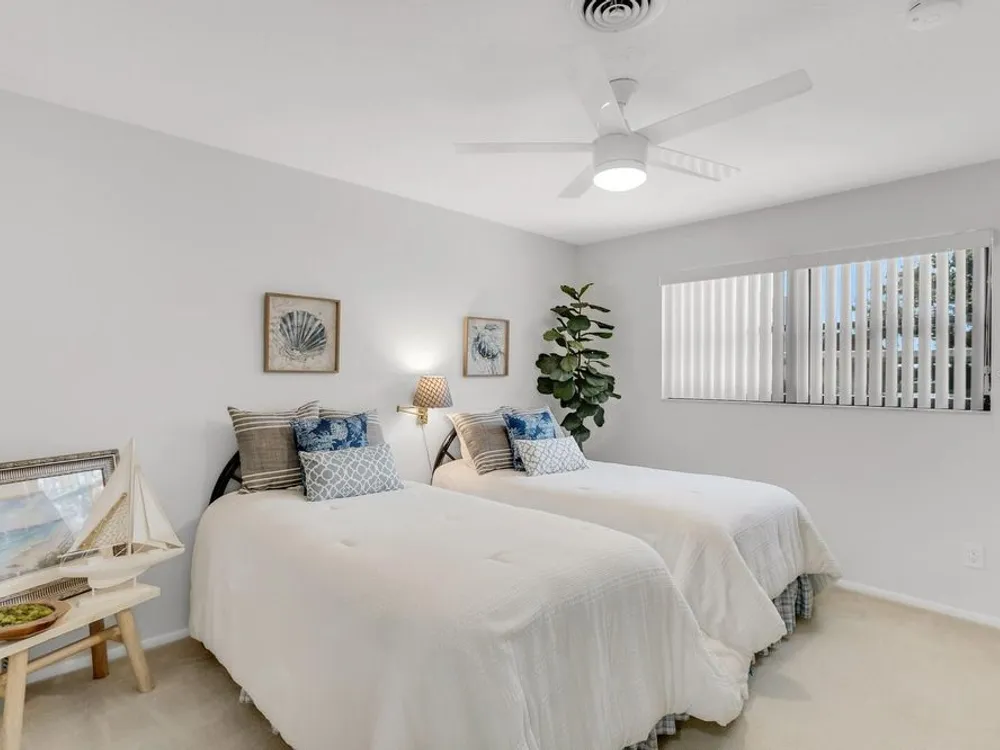 Don't Miss Out!! This is not your average condo – it’s a rare villa-style END UNIT with exceptional privacy, accessibility, and beauty. This FIRST FLOOR 2-bedroom, 2-bath WATERVIEW condo offers the comfort and feel of a villa, with plenty of room to accommodate guests. Owned by the same family since it was built and NEVER RENTED OUT, it has been meticulously cared for and filled with thoughtful details and an inviting layout. Enjoy the ease of DIRECT ACCESS FROM YOUR ASSIGNED CARPORT TO THE FRONT DOOR, the wheelchair assessable ramp allowing effortless entry with groceries and packages. A large foyer welcomes you into the home, leading to a formal dining room with mirrored wall and a spacious family room with tranquil pond views. The bright kitchen features white cabinets, a double sink, breakfast bar, closet pantry, and space for a petite table. Off the kitchen, a waterfront Florida room overlooks the serene pond and opens via a French door, to the BACK SCREENED PATIO—ideal as a four-season retreat. The primary suite boasts a WALK-IN CLOSET, private access to the FRONT PORCH, and en suite bath with a dressing area, shower stall and separate tub. The second bedroom offers a full-wall closet, and the hall bath includes a tub/shower combo. The laundry room with ample cabinetry and a laundry tub adds convenience. The front porch opens to the parking lot for easy entry and doubles as an extra storage space. This eliminates the need for stairs or an elevator, and a convenient wheelchair accessible ramp is also provided. Other perks include: NEW A/C in '25 as well as NEW interior paint, ceiling fans and lighting throughout. This home CAN BE SOLD FURNISHED, ready for you to move right in! Located in a 55+ community offering RESORT STYLE AMENITIES, including 6 pools (5 heated), tennis and pickleball courts, walking trails, fitness center, billiard room, and multiple community centers. High Speed Internet and Cable with streaming channels (HBO Max, Paramount, Peacock Premium, AMC+, Disney + HULU, Tennis Channel) are all included! This well maintained community is located minutes from the intercoastal and 15 minutes to Redington Beach, Madeira Beach, and Treasure Island.