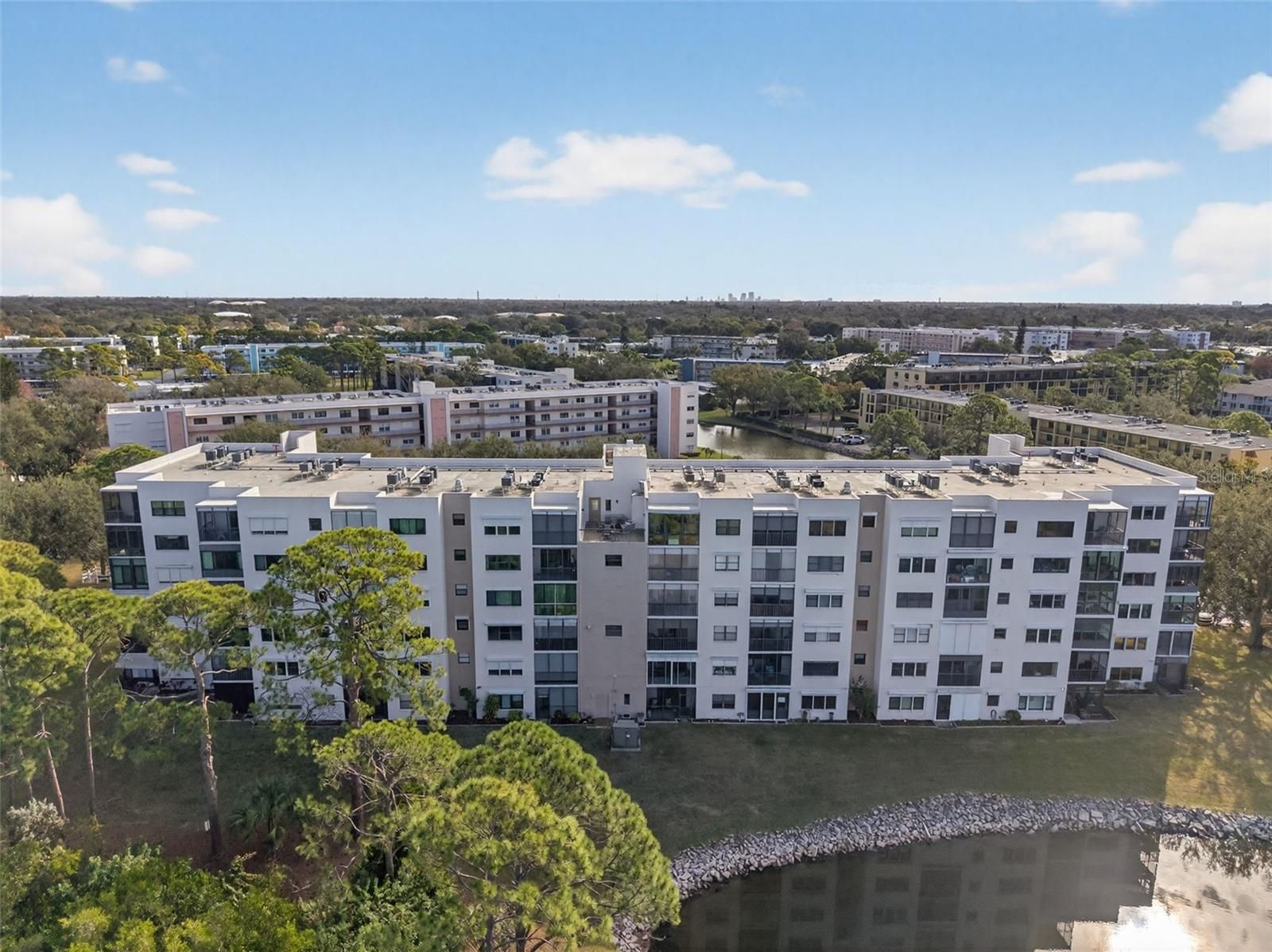 Welcome to the Syracuse Building at Terrace Gardens of Five Towns! This beautifully done and meticulously maintained condo has 1435 sq. ft. Conveniently close, but not too close to the elevator. This lovely condo has two large bedrooms, (split plan has great privacy for guests) plus two full baths. There is an entrance foyer with guest closet as you enter the living/dining area. The beautiful updated kitchen has granite counters and stainless steel appliances. Adjacent to the kitchen is the dining room area overlooking a serene lake & wooded area with plenty of wildlife to enjoy. Off the Primary Bedroom the wall to open up into the Sun Room where the seller has installed floor to ceiling windows for a great view right from your bedroom. There are electric hurricane shutters (front and back). There is a huge laundry room with built in storage is just off the kitchen. (Washer and dryer included.) The Syracuse Building offers an active social calendar, fire sprinklers, a workshop, bike storage and a "dining patio" on the 2nd floor. Five Towns offers 6 pools, 2 clubhouses, tennis courts, shuffle board, billiards, card rooms, bocce, horseshoes and more!! The Syracuse monthly maintenance fee covers natural gas (for cooking, central heat and hot water heater), plus water, sewer, trash, recreation facilities, cable TV, internet, Insurance and flood insurance on the building, exterior maintenance, security, exterior pest control and pool maintenance. Rental and pet restrictions apply .This is a friendly and active 55+ community. Great location is close to shopping, restaurants, banks, medical facilities, the Veterans Administration (Bay Pines) Hospital & facilities plus the Intracoastal waterway. Approximately 15 minutes to Madeira Beach.