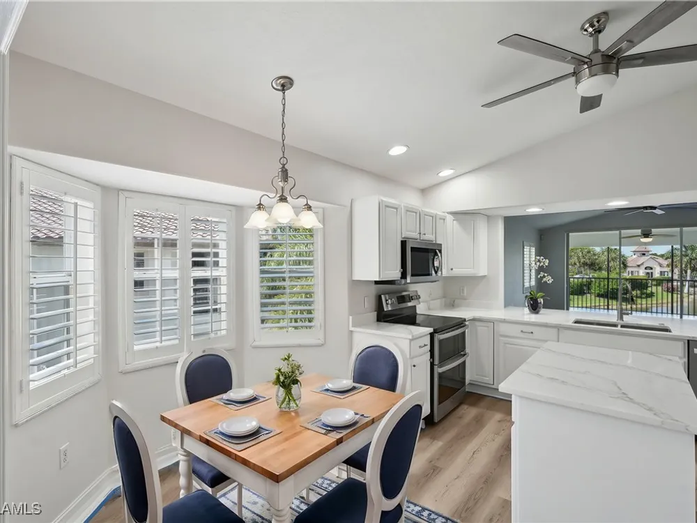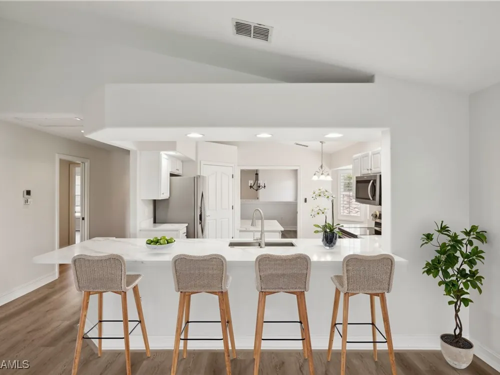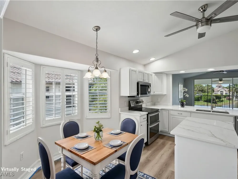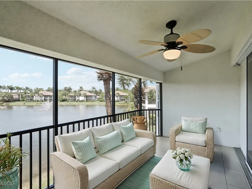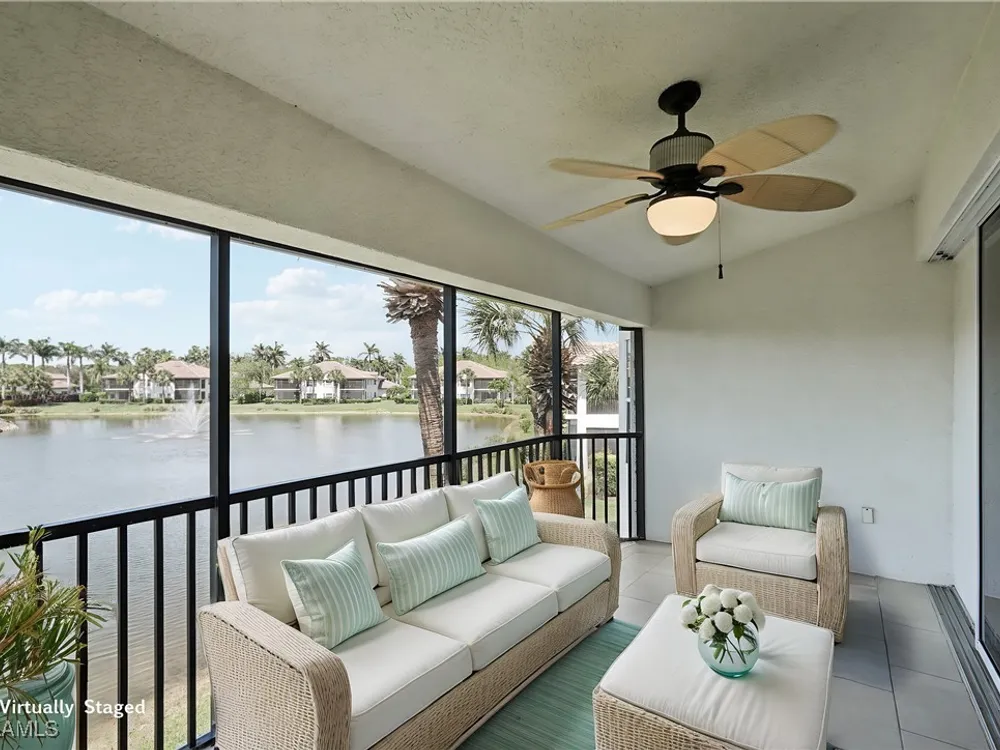 Discover luxury living in this elegant 3-bedroom, 3 bath condo located in the HIGHLY DESIRED Saratoga Community of Lely. This expansive water view and light-filled home features thoughtful updates, including new flooring and paint throughout, updated kitchen, fixtures and baths. The 3-bedroom home with abundant natural light also provides two separate en-suites and an in-unit elevator. The kitchen boasts bright cabinets, new quartz countertops, stainless steel appliances, and a convenient breakfast bar. The oversized great room provides access to the screened-in lania with direct water views. The spacious owner's suite offers a walk-in closet, and en-suite bath with dual vanities, a soaking tub, and a glass-enclosed shower. One guest bedroom provides its own en-suite bath with two additional bedrooms and a bath to accommodate all of your guests. This home blends timeless elegance with the ultimate in luxury and convenience. Your perfect lifestyle awaits! VIRTUALLY STAGED!!!