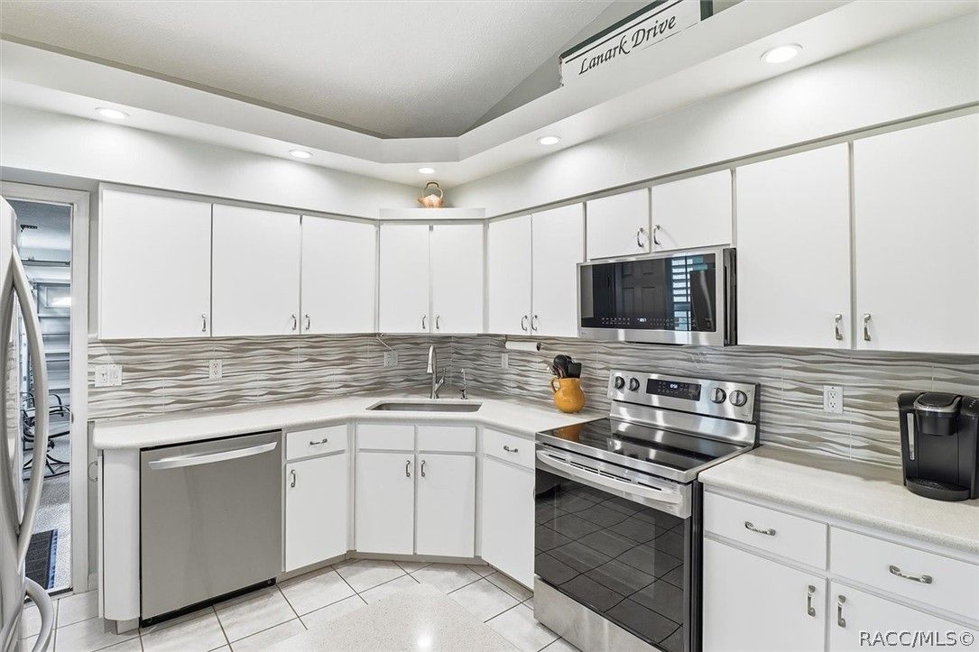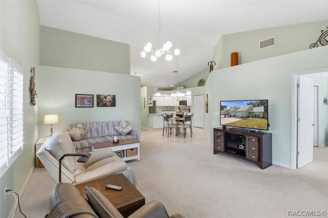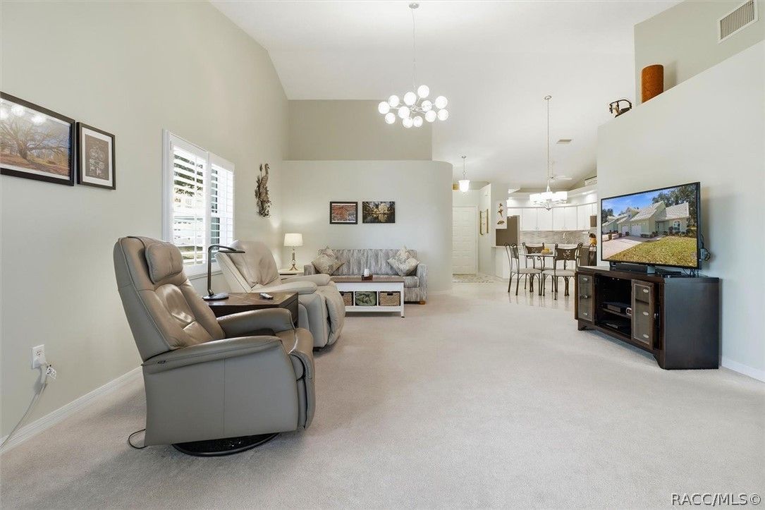 PRICE IMPROVEMENT!!! Welcome to effortless living in the heart of Windermere! This beautifully updated 2-bedroom 2-bath end unit villa offers modern upgrades and an unbeatable location within an all ages community. Step inside to discover fresh interior paint, stunning floor to ceiling windows in the lanai that provides abundance of natural light and timeless plantation shutters. The renovated kitchen features brand new LG appliances, new solid surface countertops and a stylish tile backsplash, creating a clean and contemporary space for everyday living and entertaining. All new windows throughout for energy efficiency. The open layout flows seamlessly from the dining to the living area, while the spacious primary suite provides ample closet space with 2 walk in closets and an en suite bath.The second bedroom offers flexibility for guests or a home office with direct access to hall bath. Enjoy year-round relaxation in the enclosed lanai, offering tinted glass for privacy and automatic blinds. Both the garage floor and the outdoor patio have been upgraded with "liquid floor" finishes for a durable polished look. The HOA provides exceptional value, covering cable, WiFi, building and grounds maintenance, and access to amenities including a clubhouse, heated pool, shuffleboard courts, community dock with lake access, and RV and boat storage. Perfectly situated near the 47 mile Withlacoochee State Trail, for biking and walking, and just a short stroll to charming downtown Inverness with its local restaurants and shops, this villa truly offers the best of low mantenance living and small-town charm. Move in ready and thoughtfully upgraded, this is Florida living at its finest!