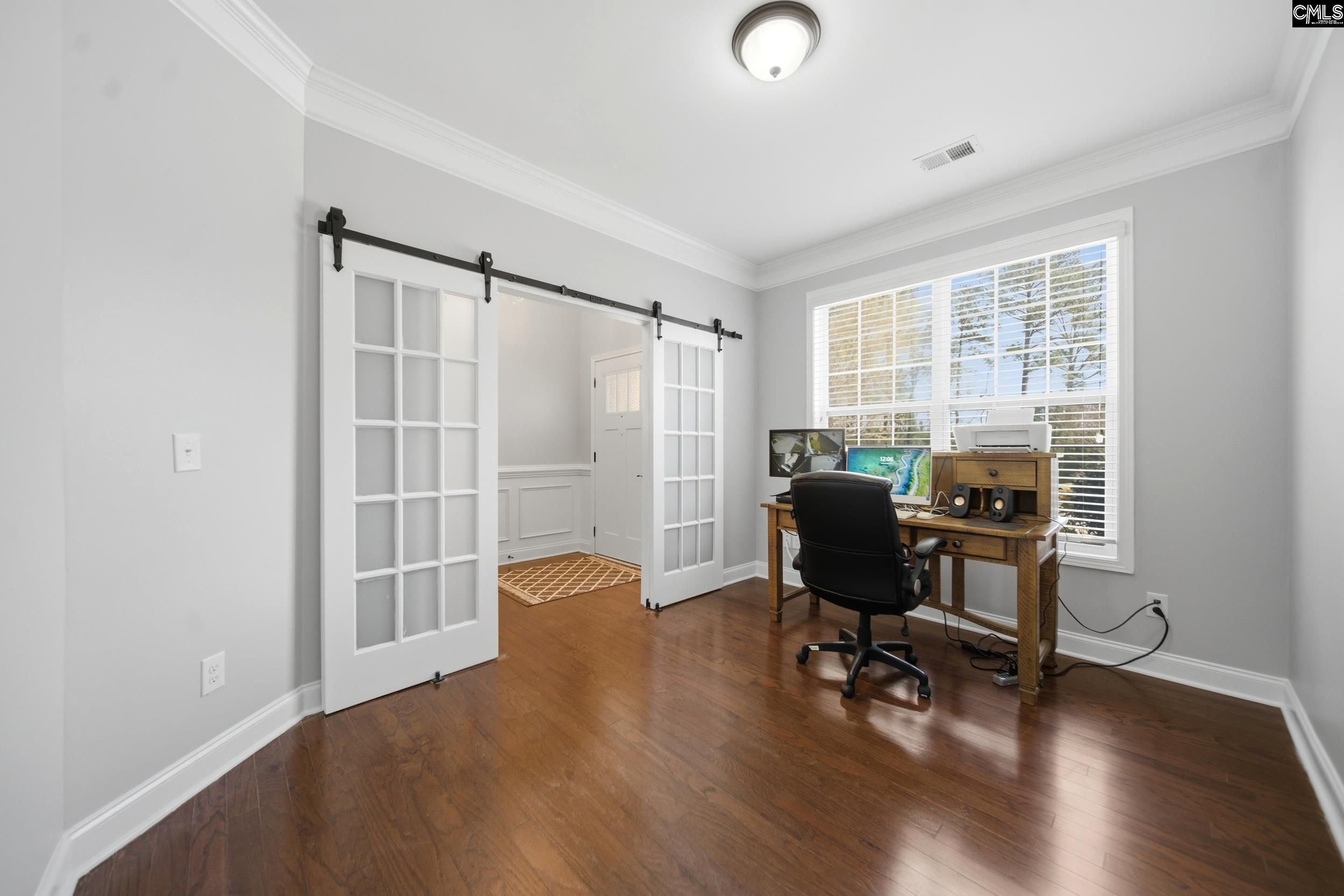 Beautifully designed one-level living in the highly sought-after gated Cobblestone Park community! This 4-bedroom, 3-bath home with a dedicated office offers an open and inviting floor plan. Enjoy 9’–10’ ceilings, detailed crown molding, and rich hardwood floors flowing through the main living areas, including the dining room, office with sliding French doors, living room, and kitchen. The large living room features a cozy gas log fireplace, perfect for relaxing or entertaining. The spacious primary suite features a tray ceiling, abundant natural light, and a well-appointed en-suite bath with dual granite vanities, tile flooring, an oversized tiled shower, garden tub, private water closet, and a large walk-in closet. The gourmet kitchen is built for both everyday living and entertaining, complete with granite countertops, stainless steel appliances, gas cooktop, double ovens, a large center island, and a bright eat-in area. Just off the main living space, the all-season room opens to a back patio with a retractable awning, perfect for enjoying the private, fenced backyard. A whole-home generator adds peace of mind and year-round reliability. Located on a quiet cul-de-sac, this home offers access to Cobblestone’s resort-style amenities, including a 27-hole golf course, pool, tennis courts, pickleball courts, clubhouse and more just minutes from I-77 in Blythewood. Disclaimer: CMLS has not reviewed and, therefore, does not endorse vendors who may appear in listings.